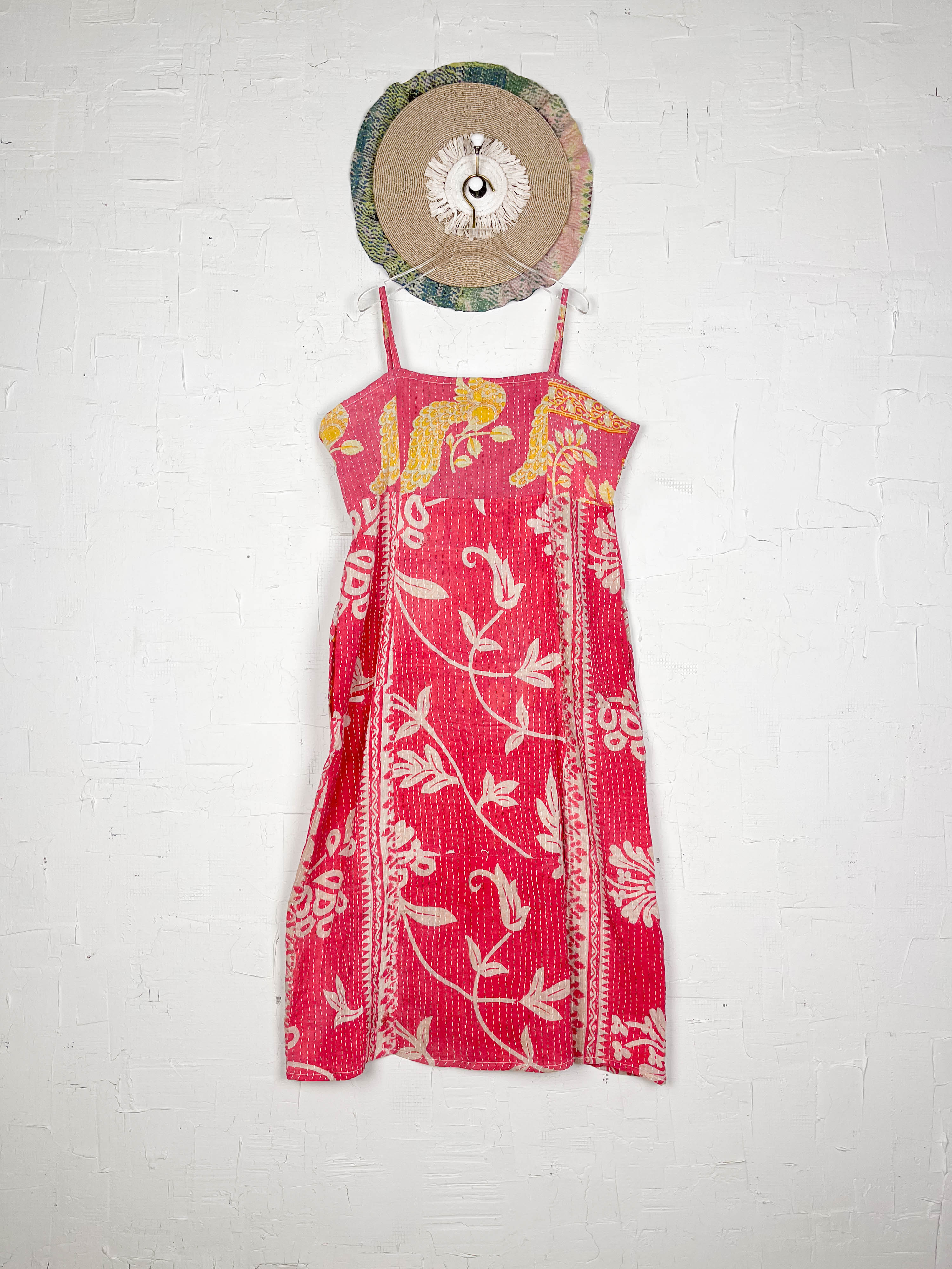 Designed to celebrate your silhouette, this midi-length Kantha dress drapes and flows with graceful movement. Crafted from carefully selected Kantha patchwork, each piece showcases a delightful variation in underlying prints and colours, making yours truly one-of-a-kind