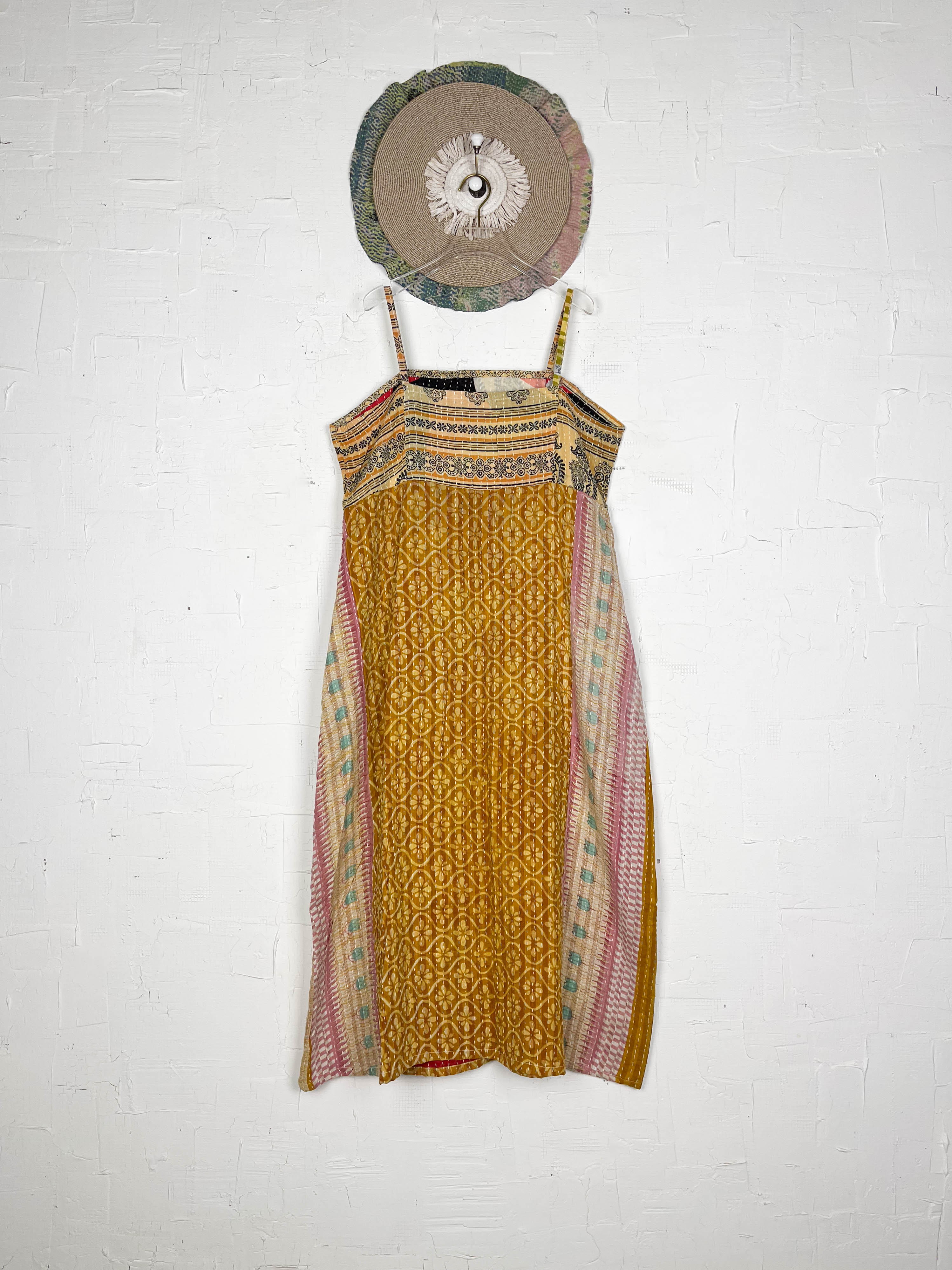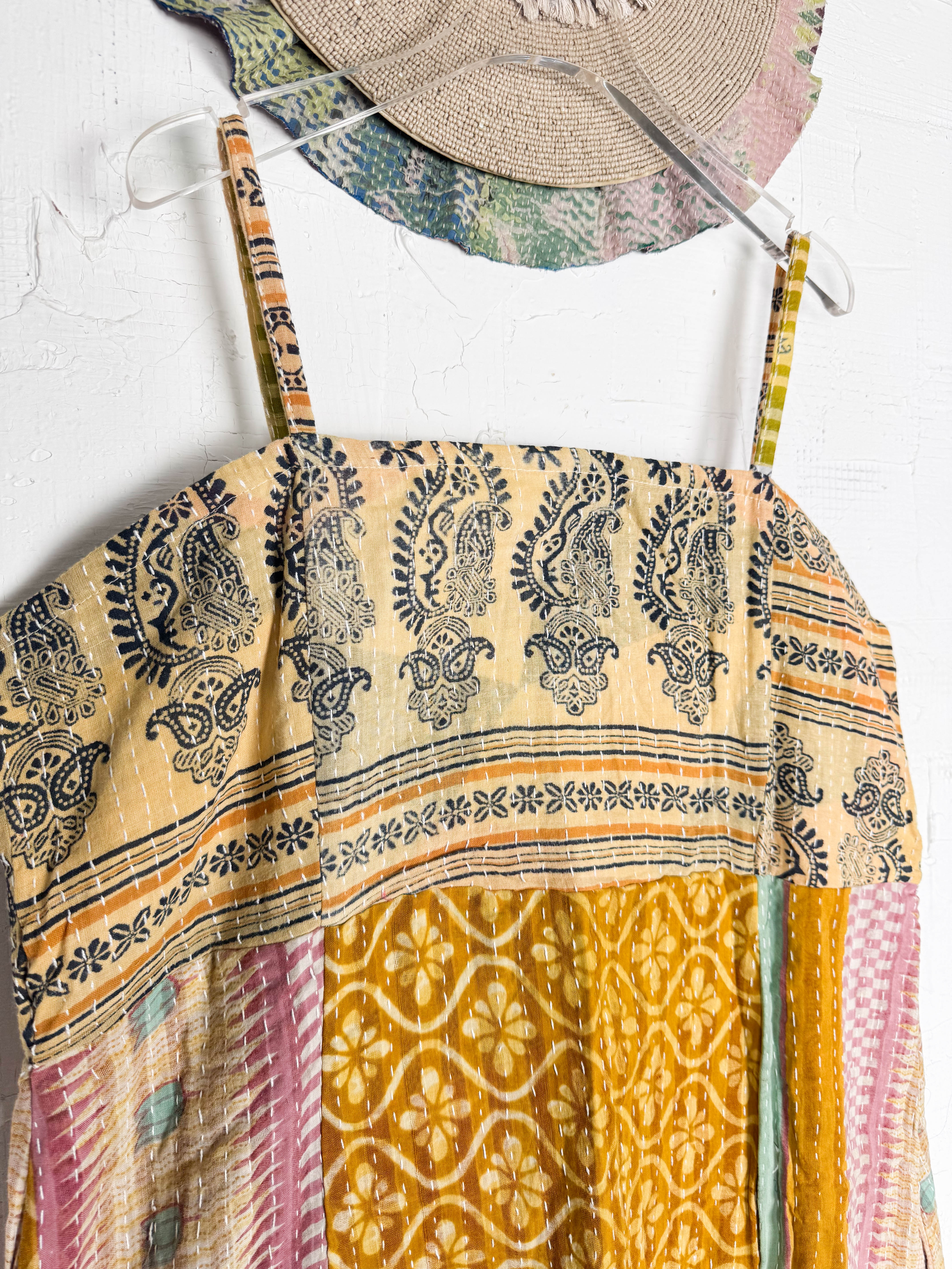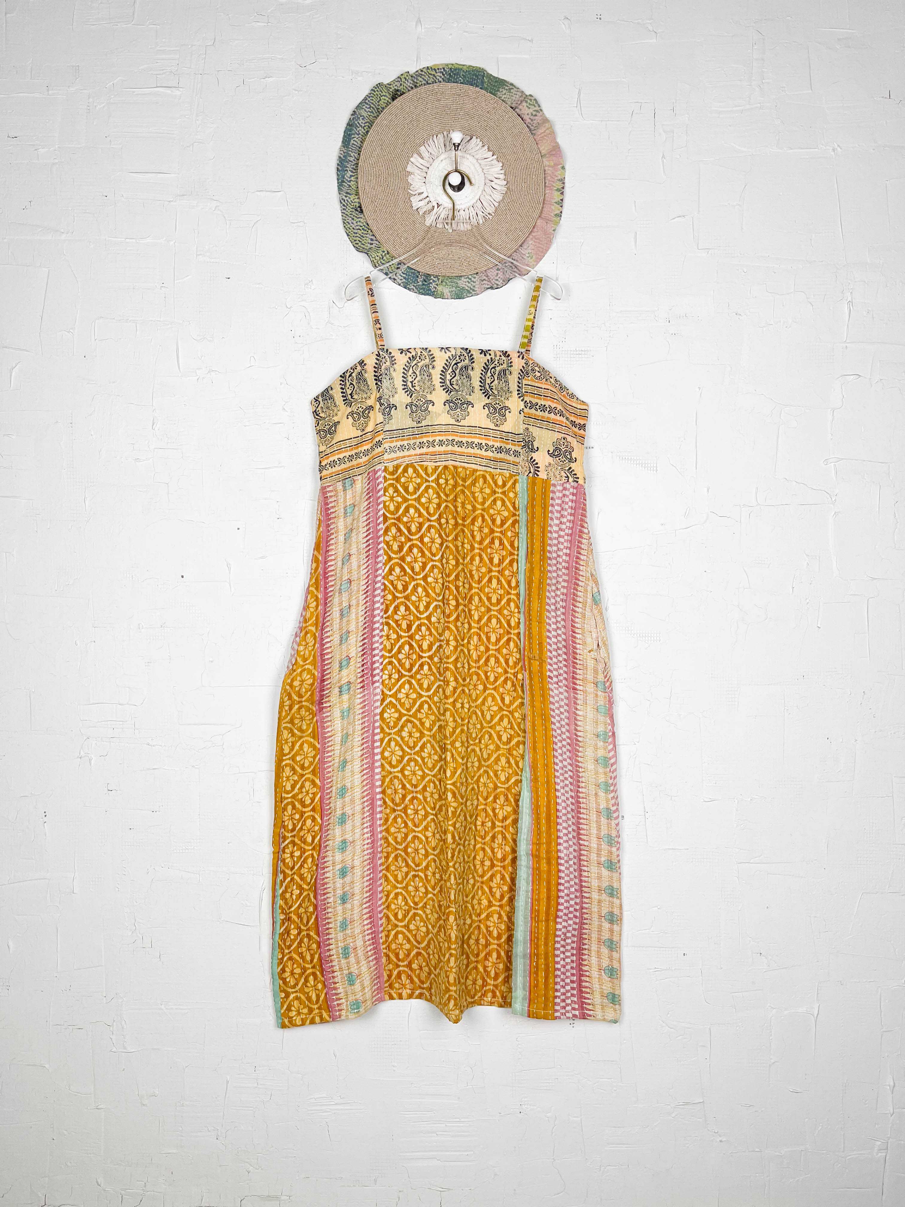 Designed to celebrate your silhouette, this midi-length Kantha dress drapes and flows with graceful movement. Crafted from carefully selected Kantha patchwork, each piece showcases a delightful variation in underlying prints and colours, making yours truly one-of-a-kind
