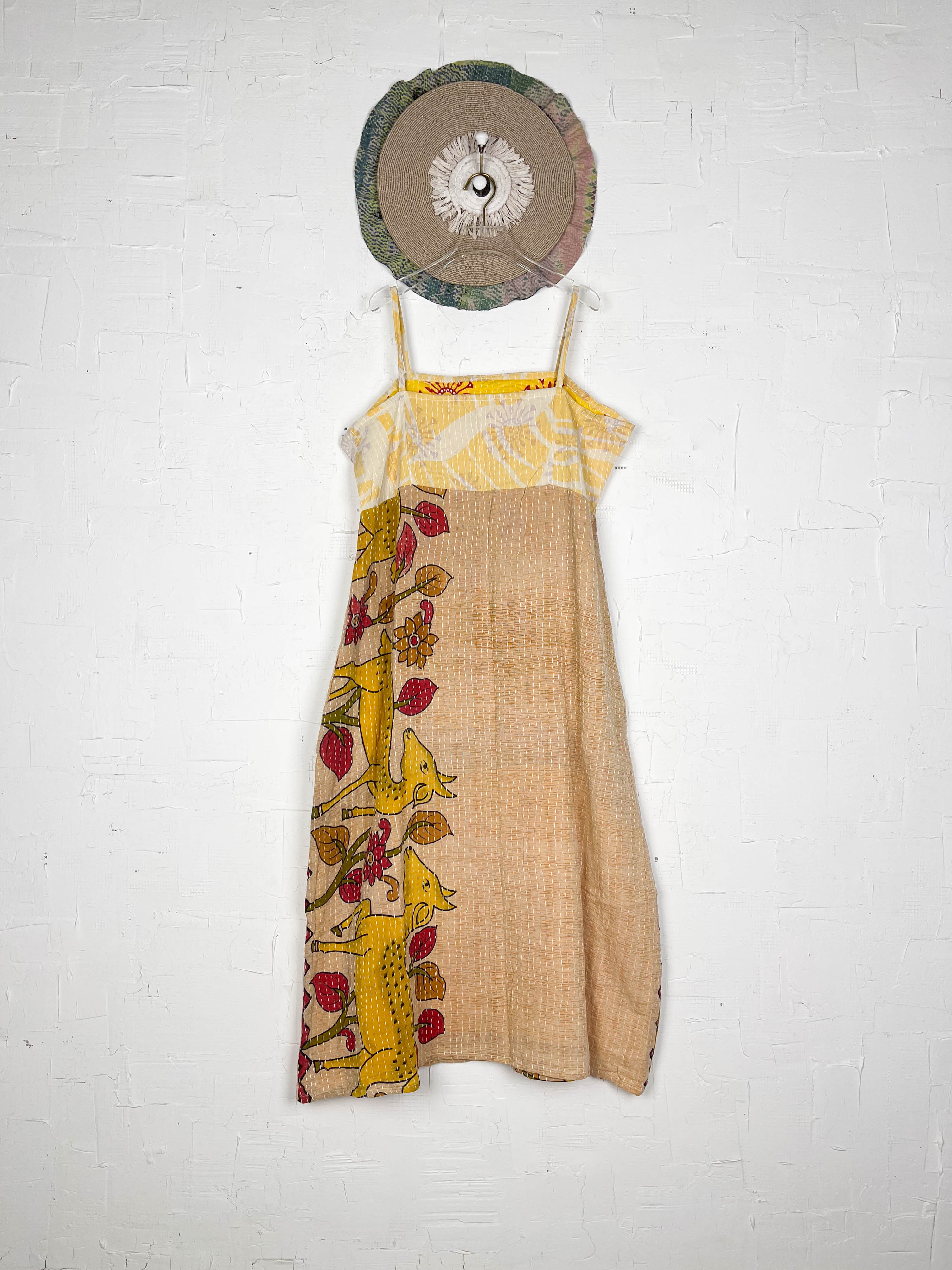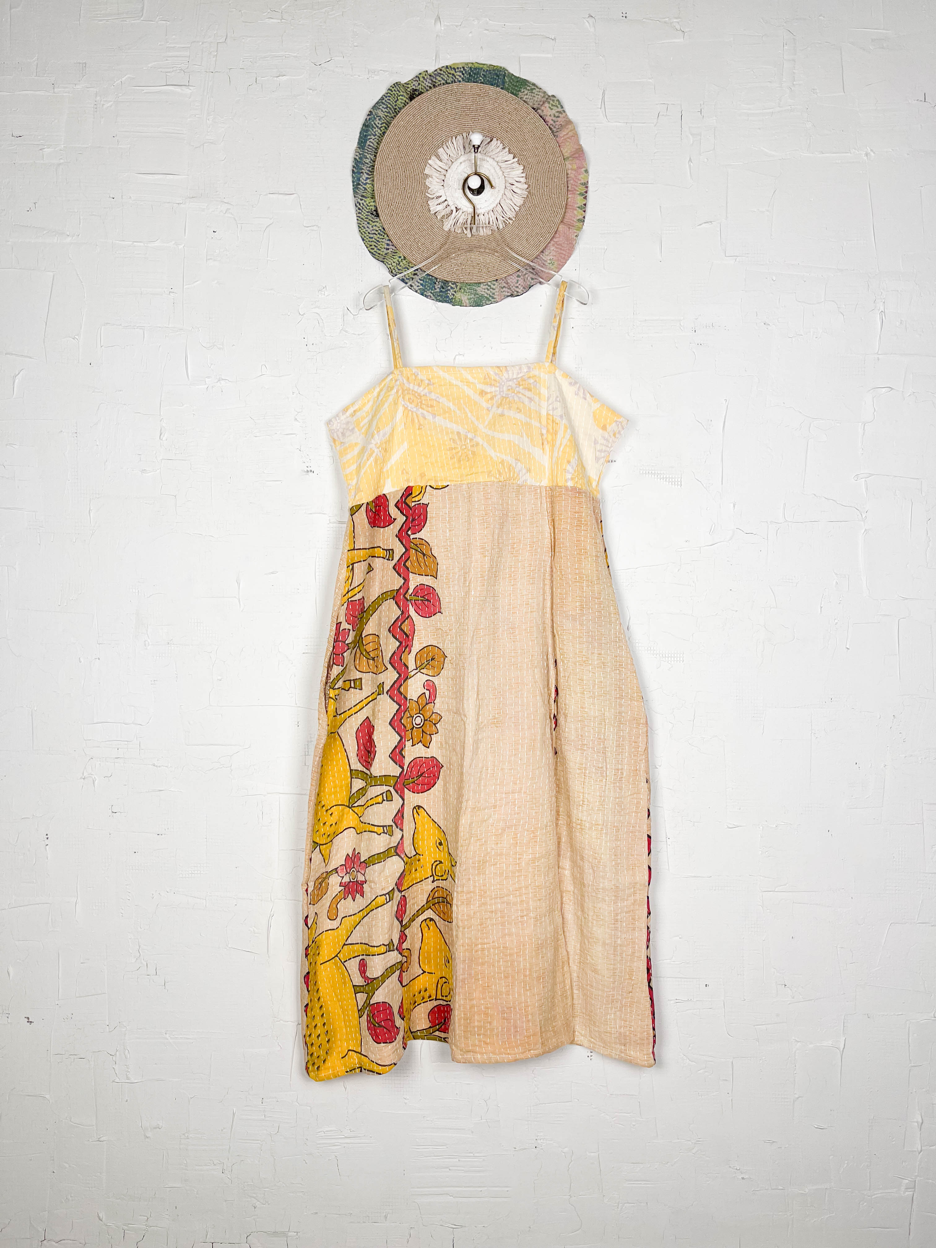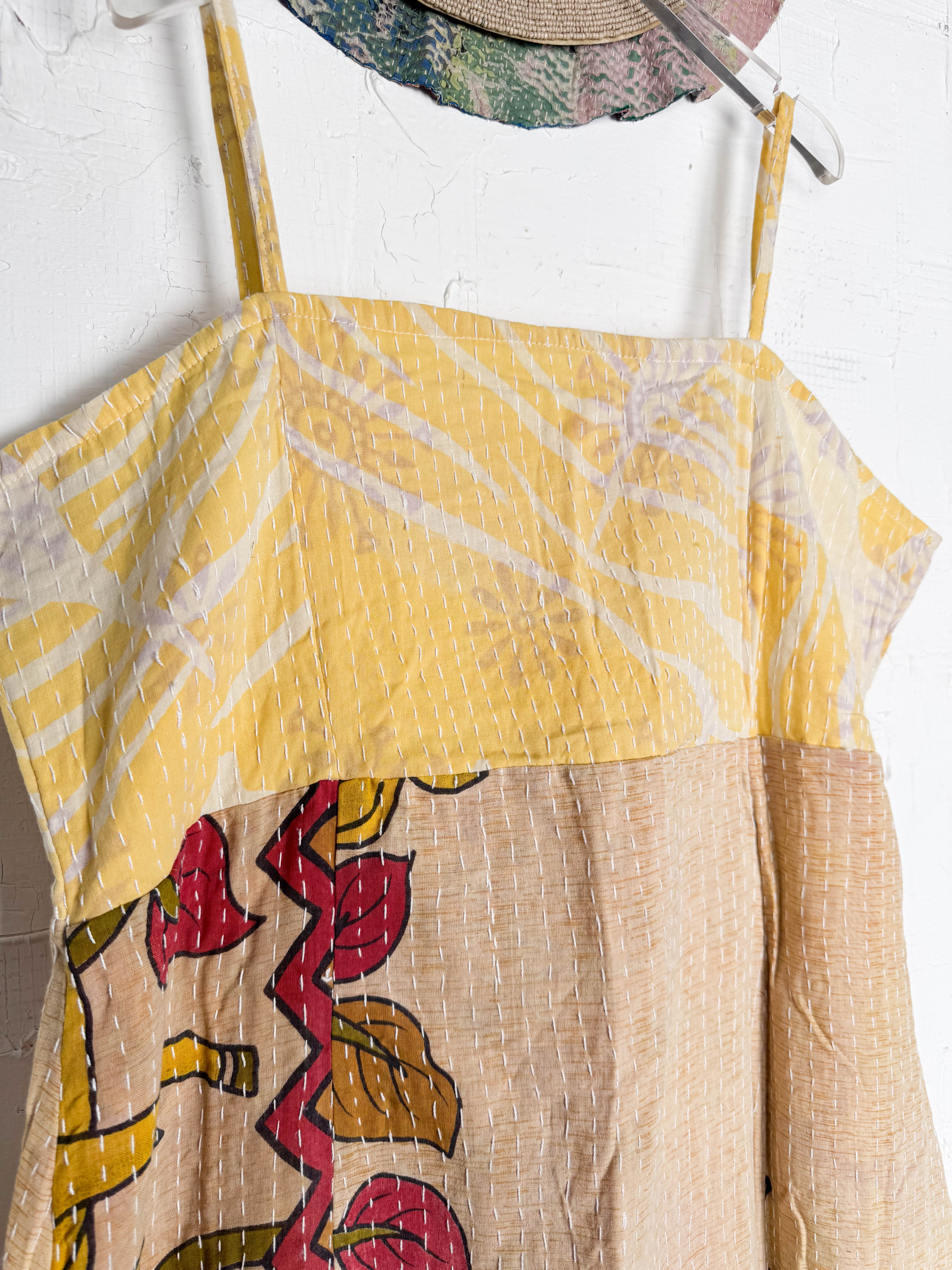 Designed to celebrate your silhouette, this midi-length Kantha dress drapes and flows with graceful movement. Crafted from carefully selected Kantha patchwork, each piece showcases a delightful variation in underlying prints and colours, making yours truly one-of-a-kind