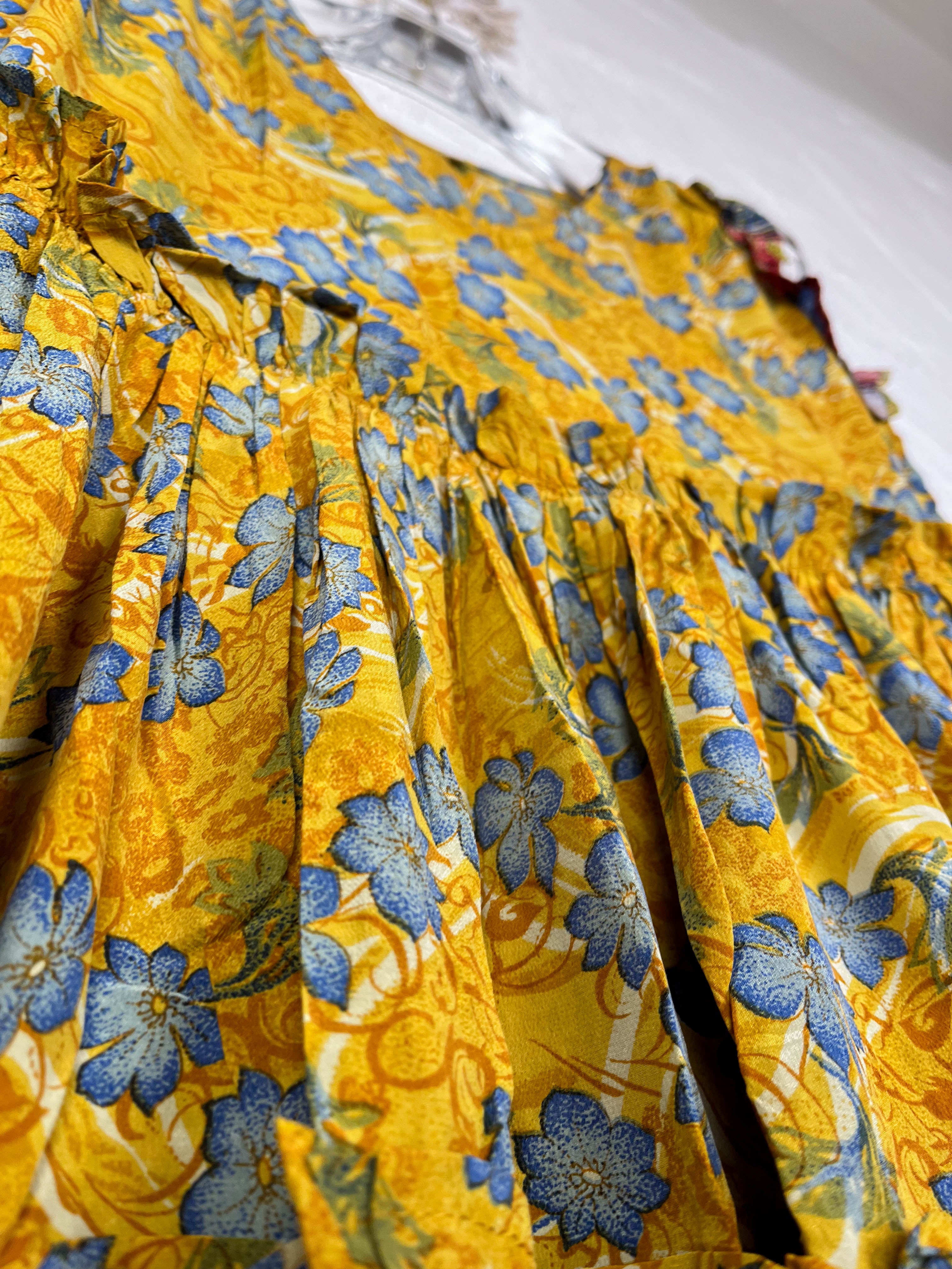 Silk Ruffle Dress Yellow Floral