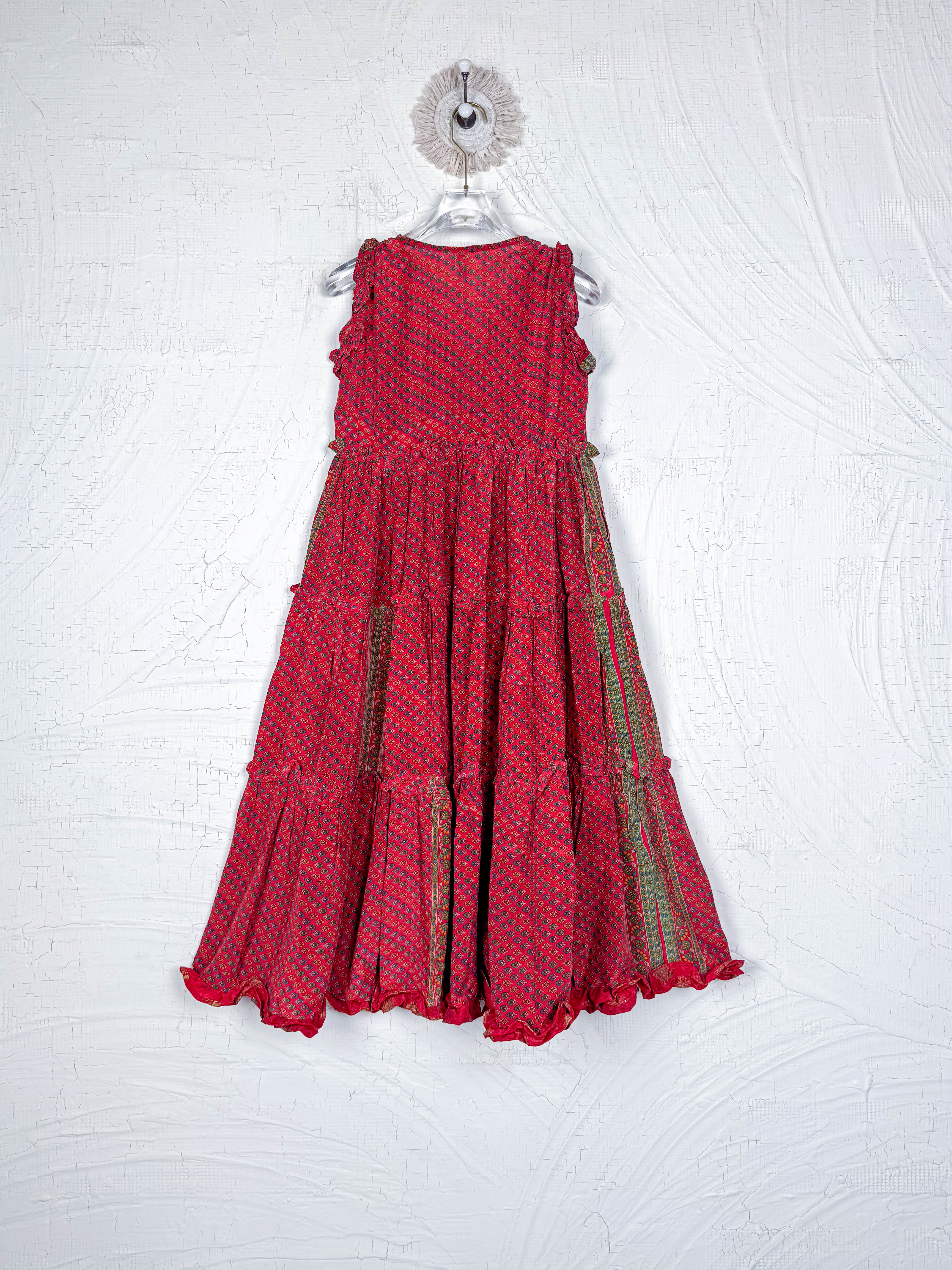 Handcrafted from Vintage Crepe Silk, every stitch and the flowy ruffle tells a story of craftsmanship, emotions and heritage!