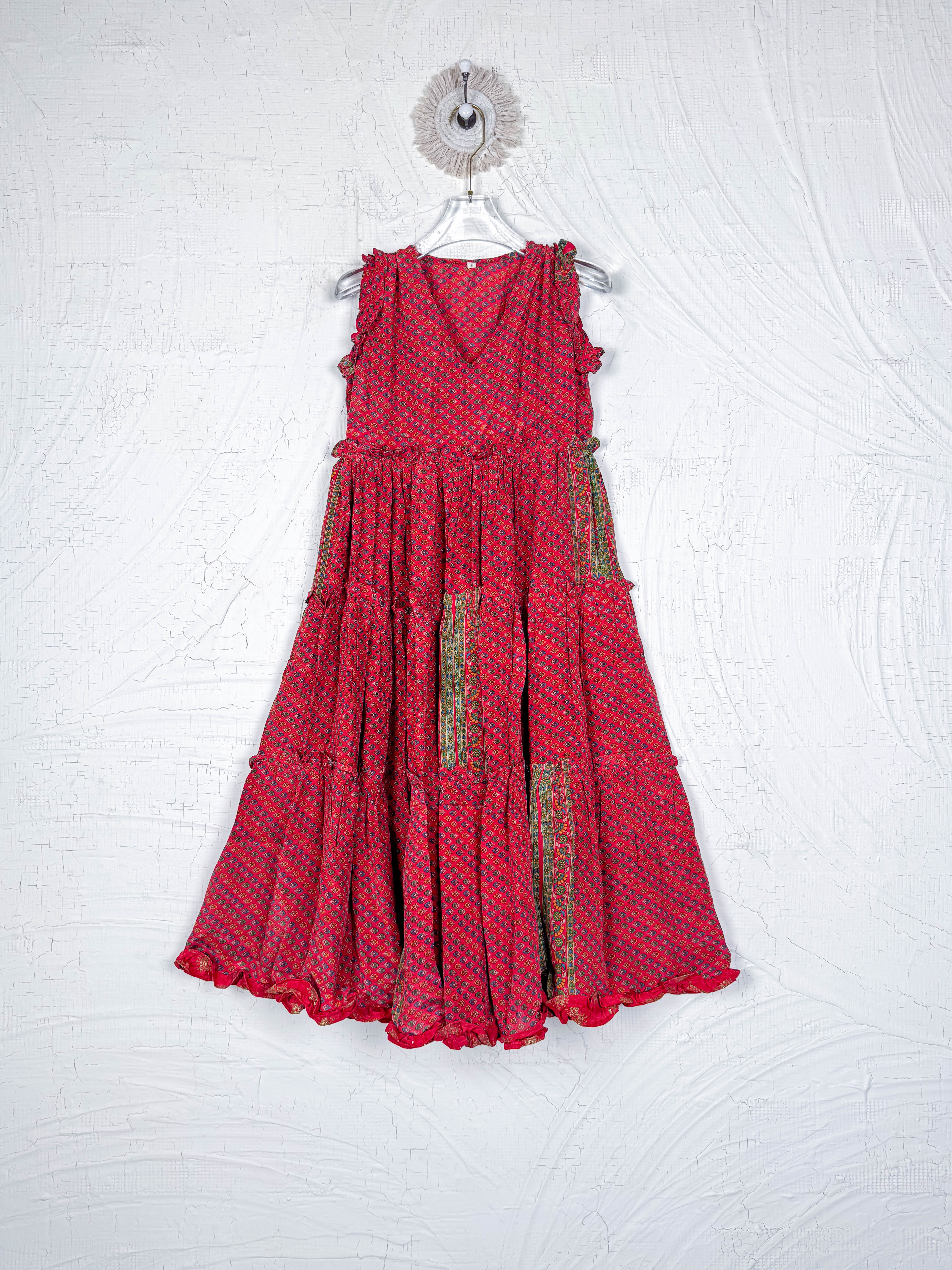 Silk Ruffle Dress Red