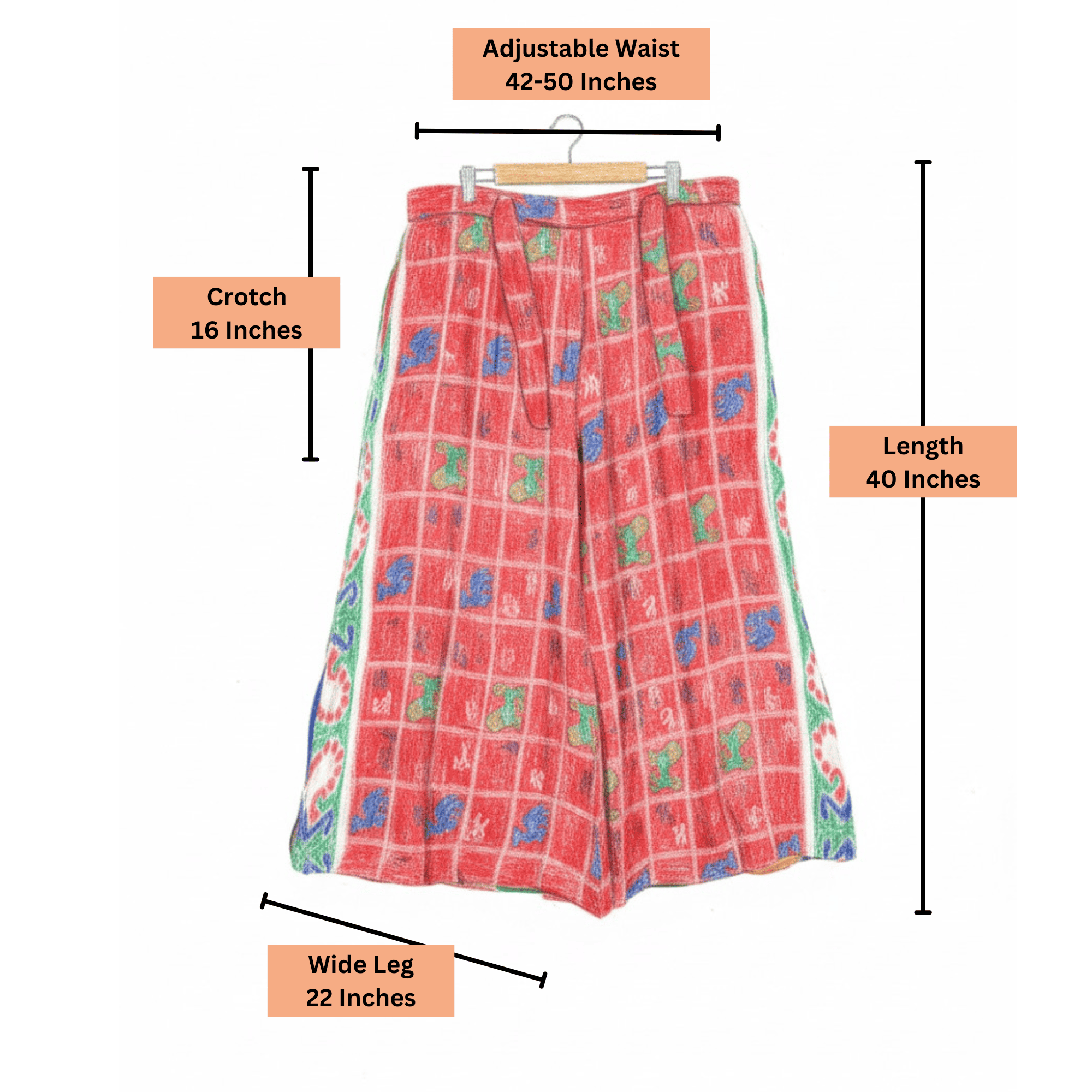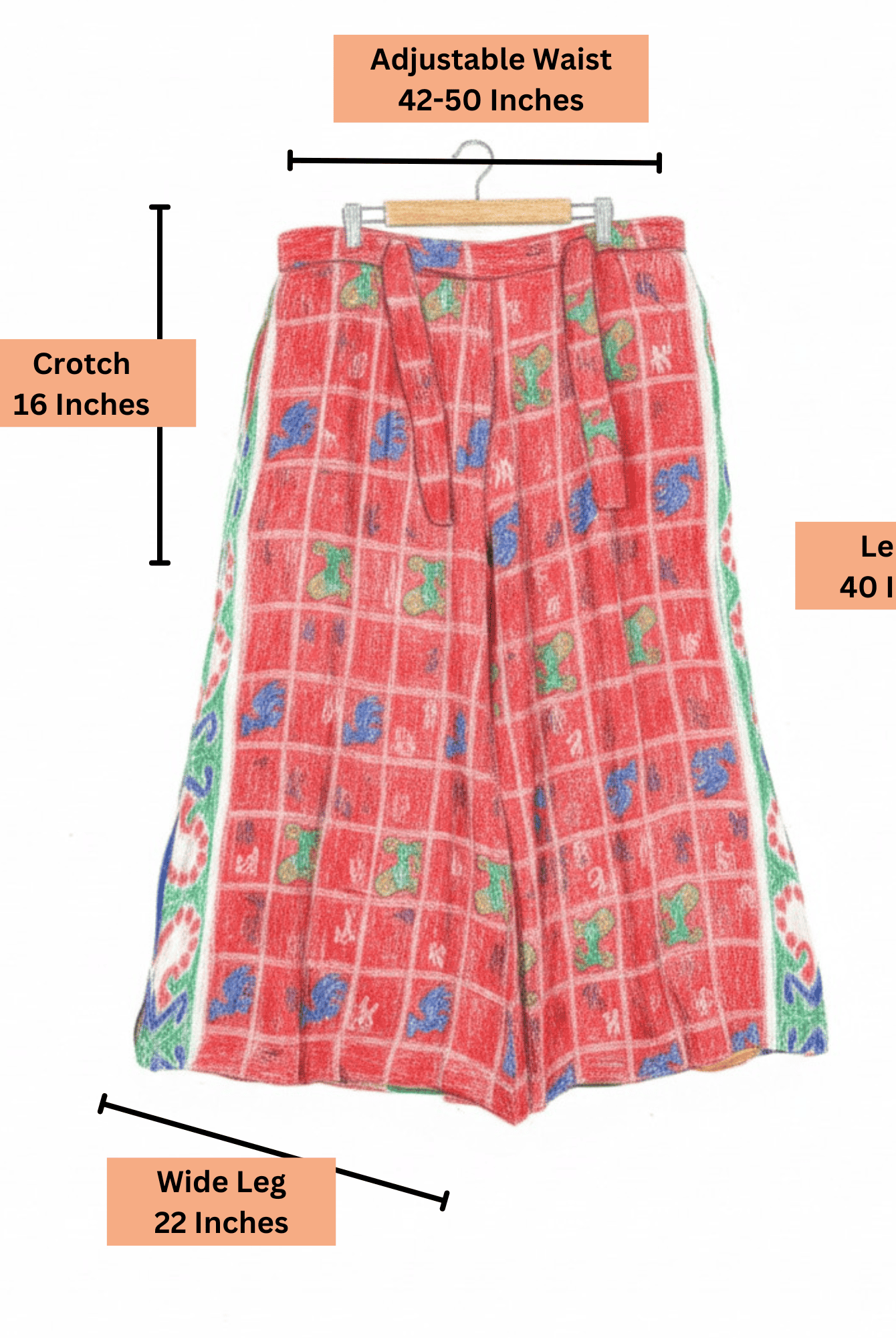 Imagine having pants that whisper tales of the past. Crafted from vintage Kantha, each pair tells its own story through a rich tapestry of repurposed cotton sarees. Feel the unique texture and beautiful flow created by layers of fabric lovingly stitched together with traditional running stitches.