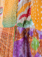 This is Kantha stitches all over the fabric. this kantha work is done by layering 2 or more cotton sarees over each other and stitched them all over the span to get the desired thickness depending upon the number of sarees put in layers, the texture of the stitch all over and the floral prints of cotton make it unique