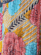 This is Kantha stitches all over the fabric. this kantha work is done by layering 2 or more cotton sarees over each other and stitched them all over the span to get the desired thickness depending upon the number of sarees put in layers, the texture of the stitch all over and the floral prints of cotton make it unique