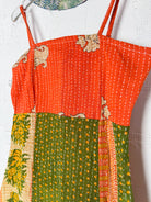 Kantha Strap Long Dress Boho Orange Green