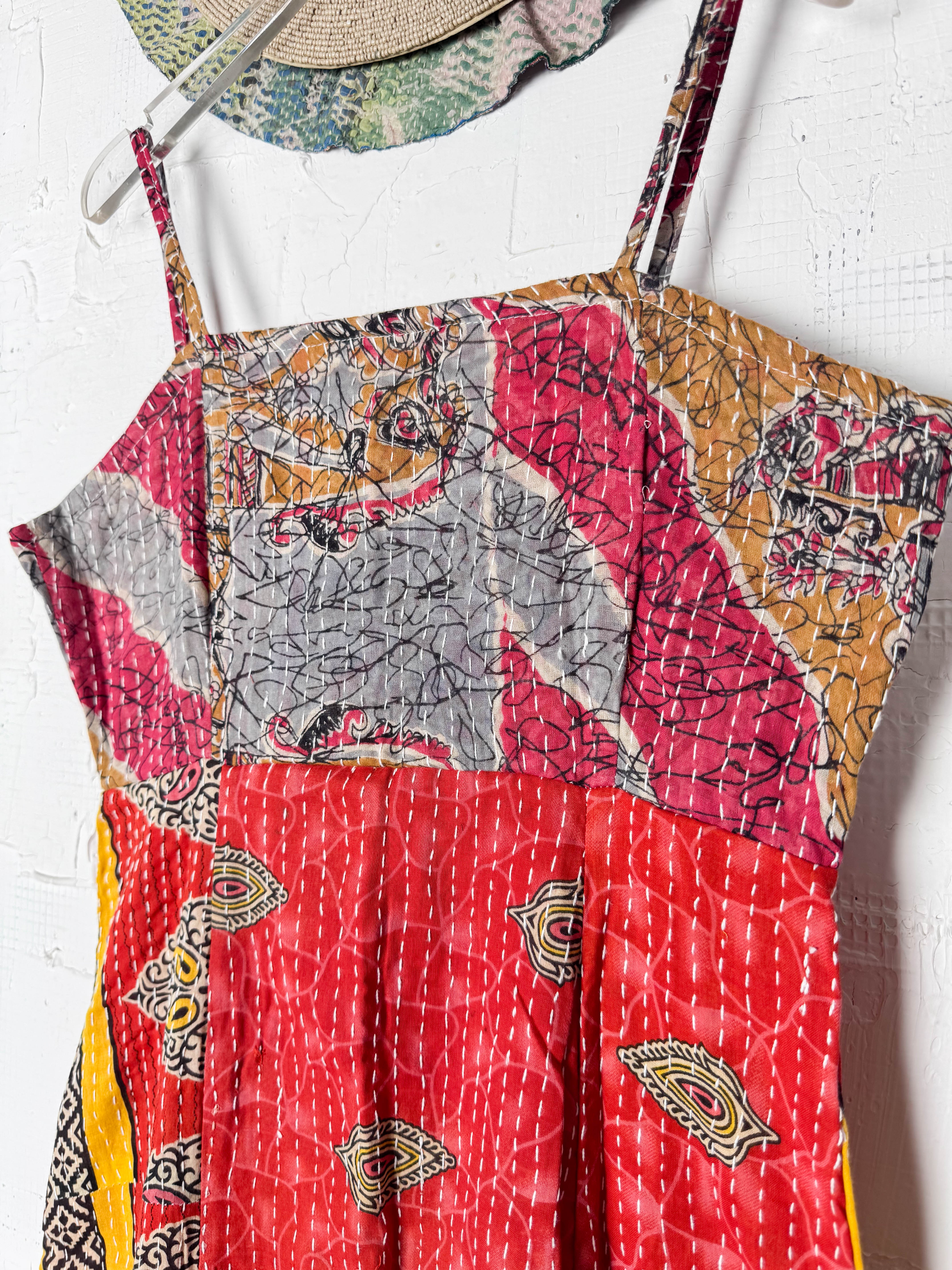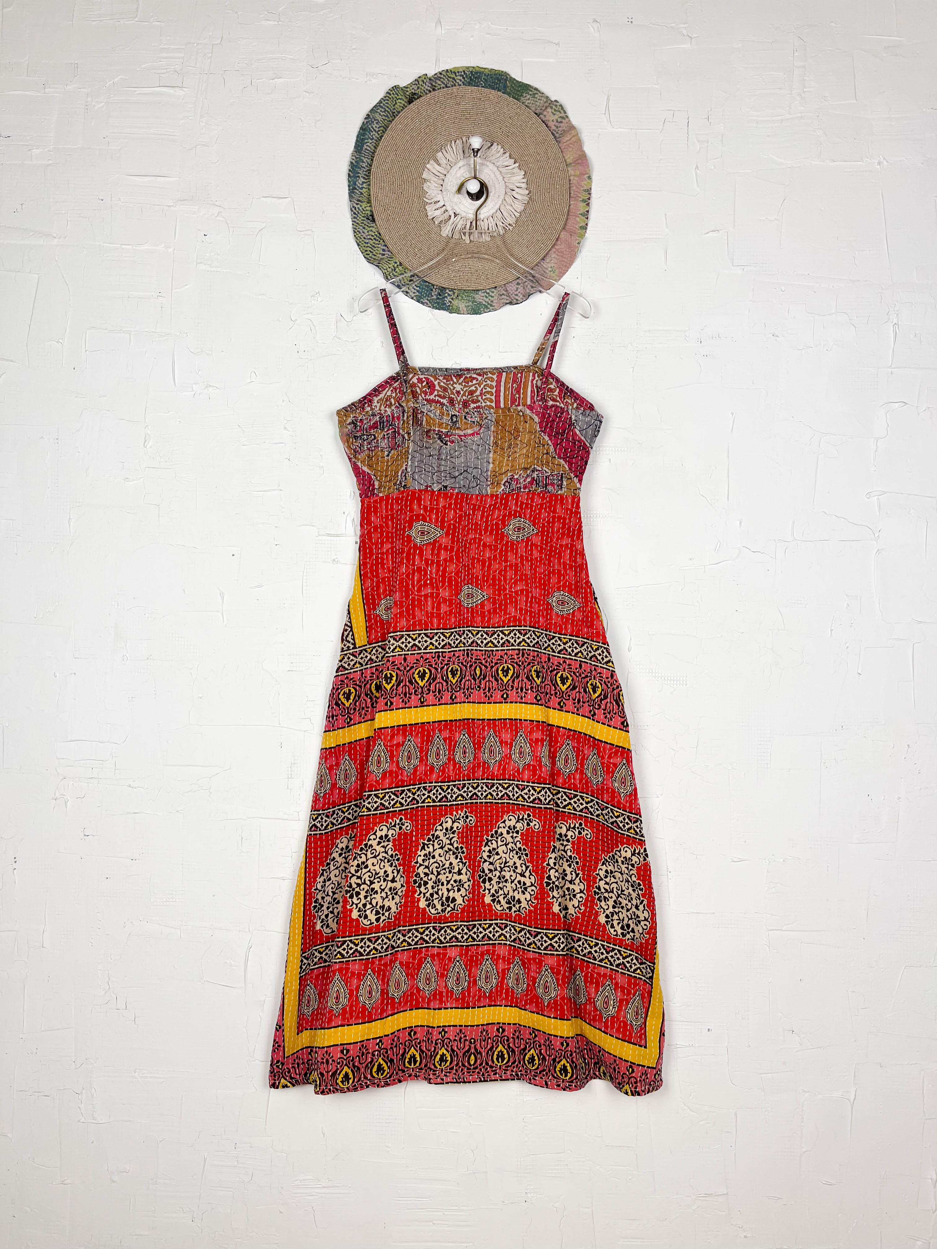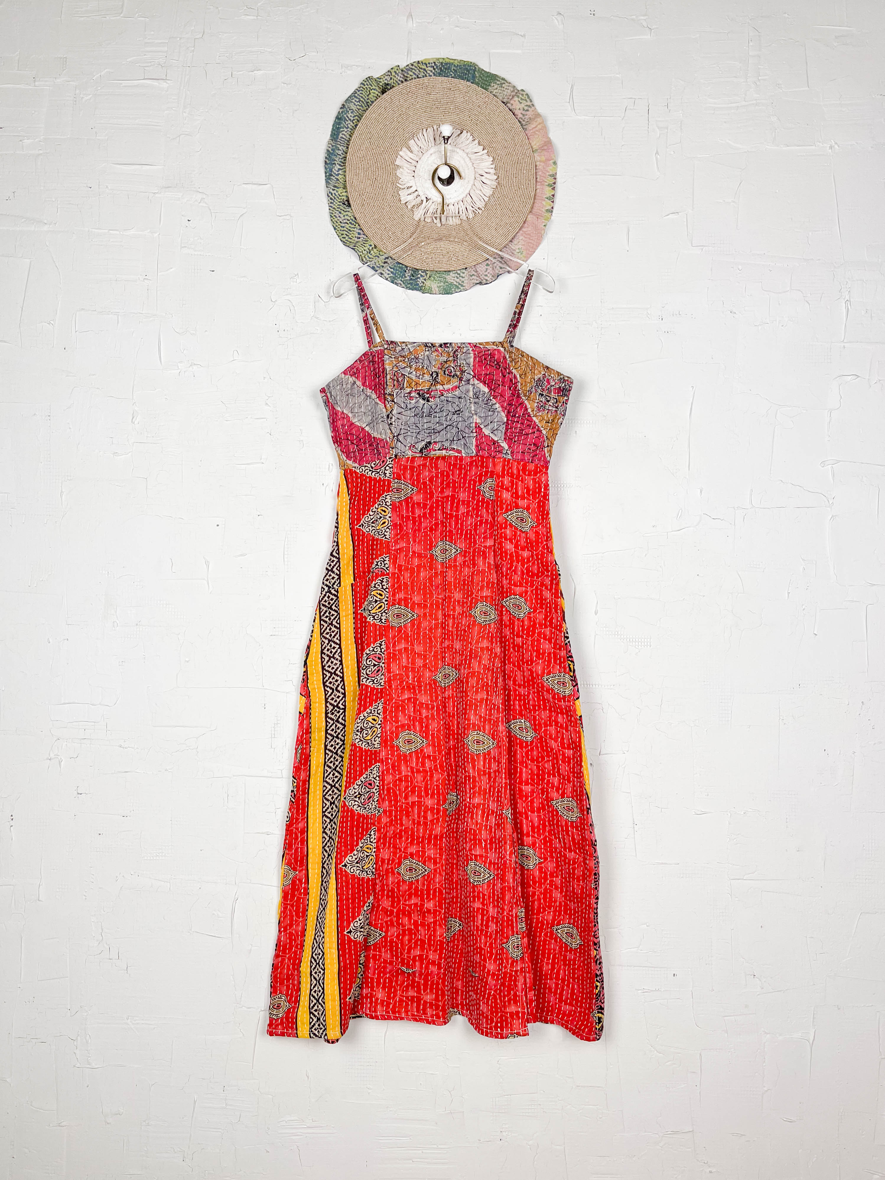 Designed to celebrate your silhouette, this midi-length Kantha dress drapes and flows with graceful movement. Crafted from carefully selected Kantha patchwork, each piece showcases a delightful variation in underlying prints and colours, making yours truly one-of-a-kind