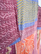 Envelop yourself in the artistry of this vintage Kantha dress. Each running stitch tells a story across the lightweight fabric, creating a unique texture and a beautifully airy feel. A long slit graces the left side, adding a touch of distinctive charm. Experience the seamless harmony of traditional hand craftsmanship and everyday ease to enhance your Playful feminine essence every day!