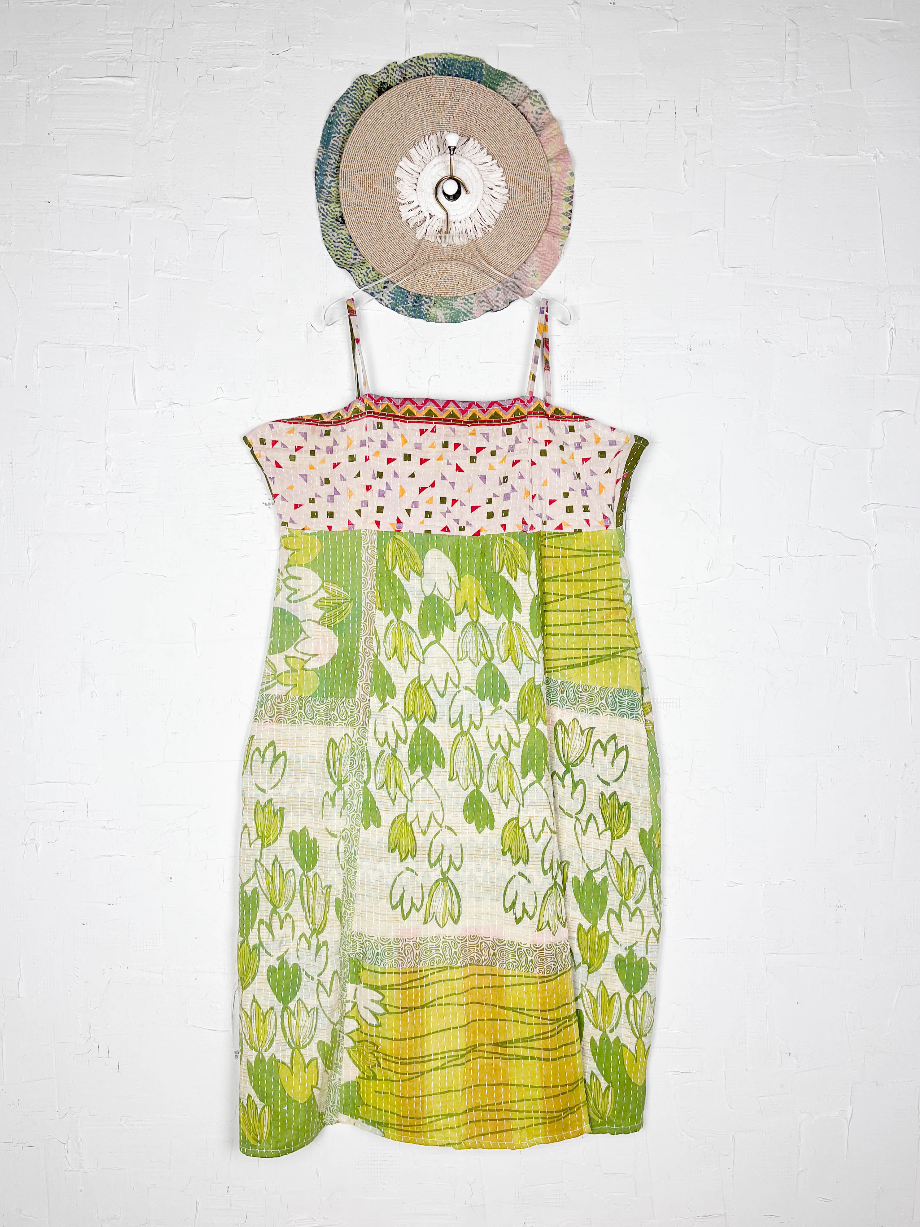 Designed to celebrate your silhouette, this midi-length Kantha dress drapes and flows with graceful movement. Crafted from carefully selected Kantha patchwork, each piece showcases a delightful variation in underlying prints and colours, making yours truly one-of-a-kind