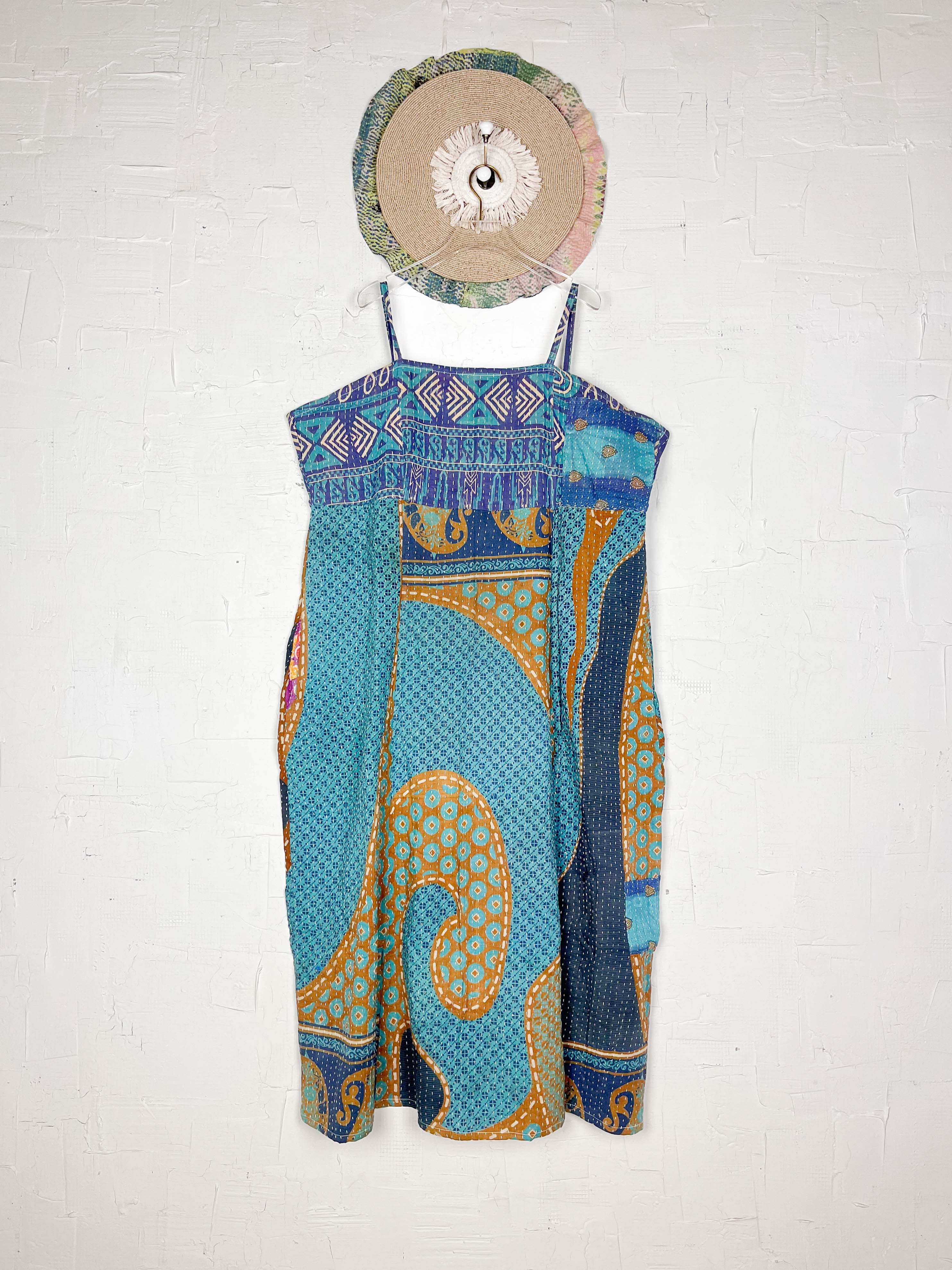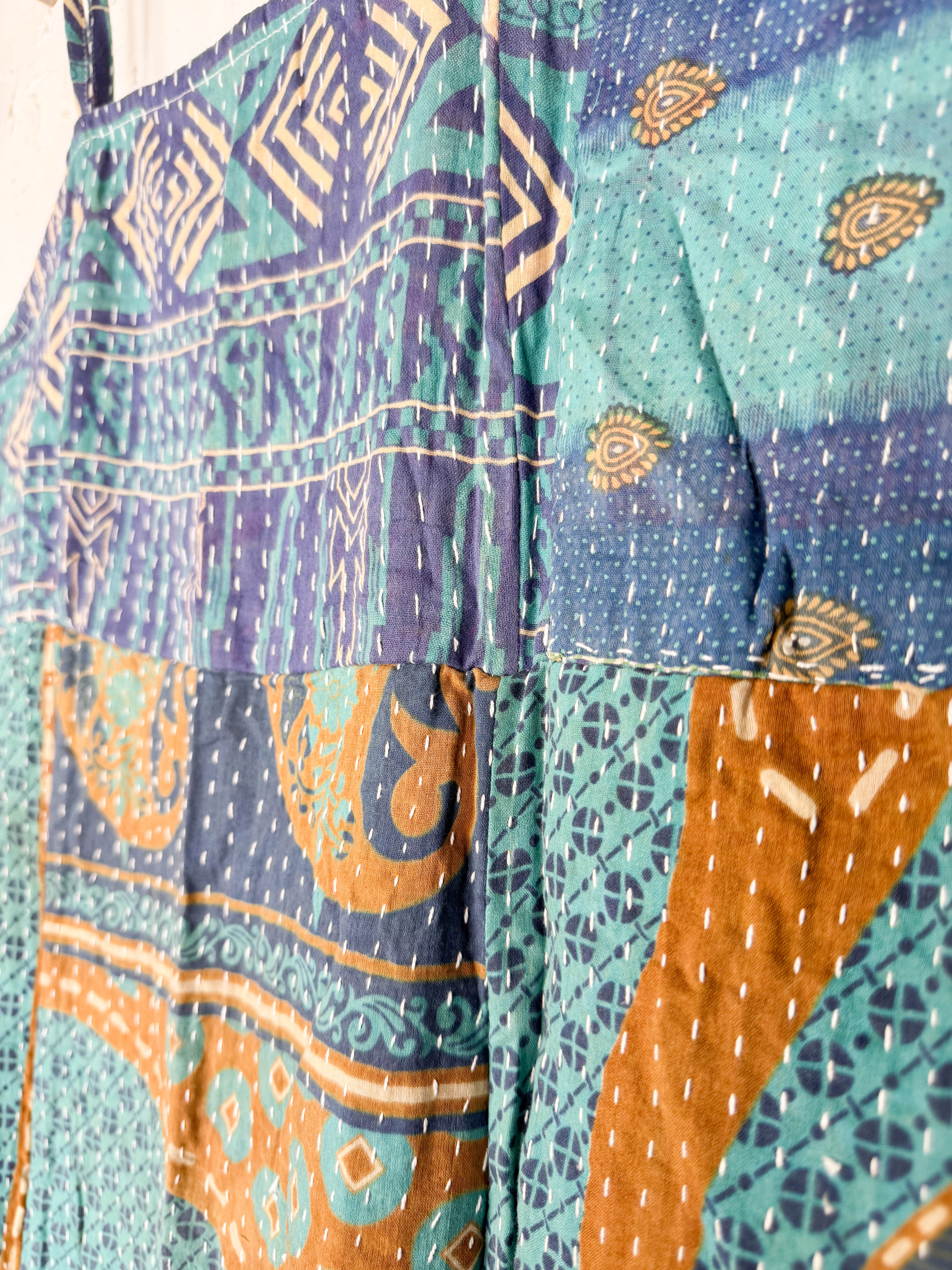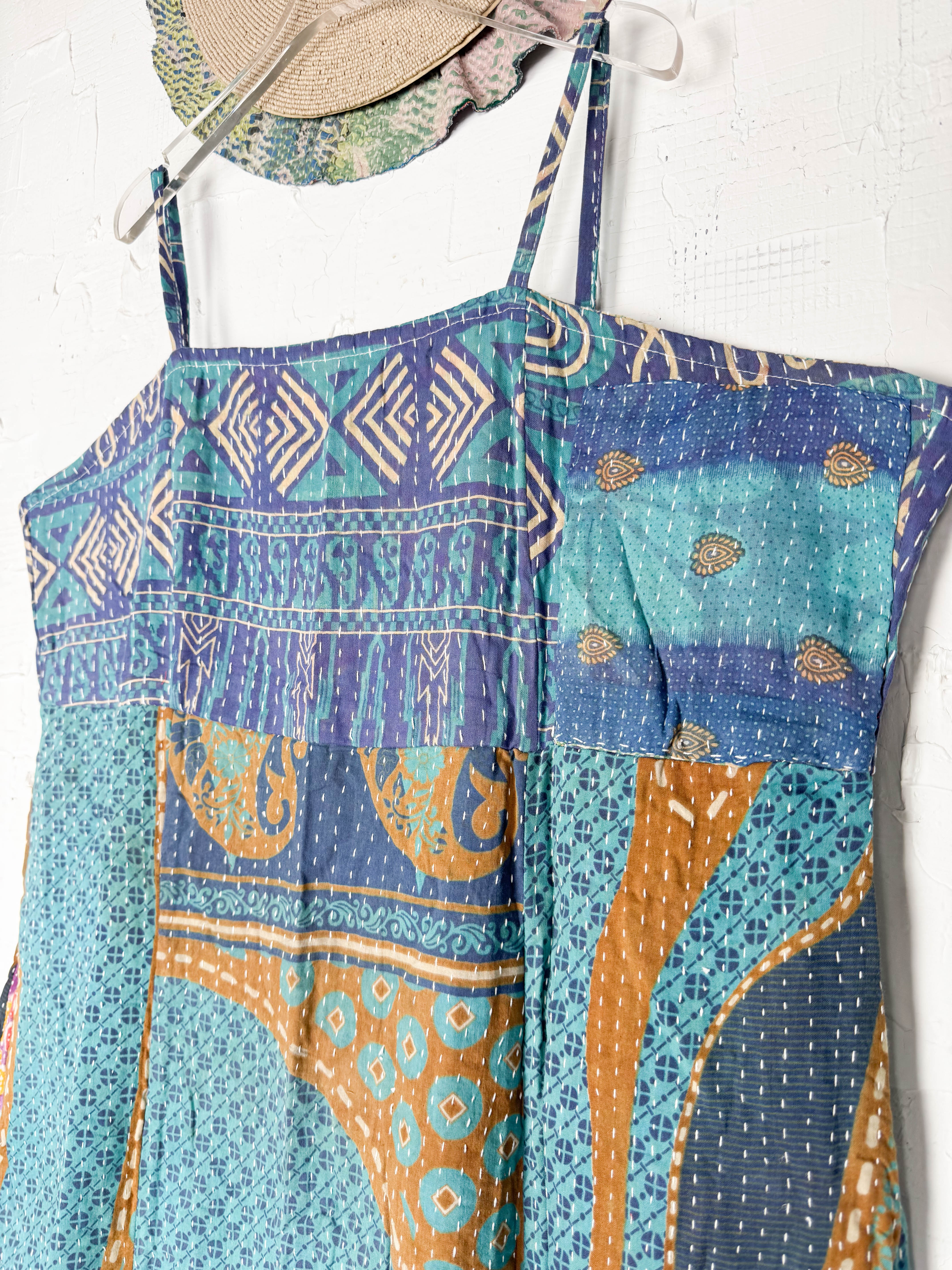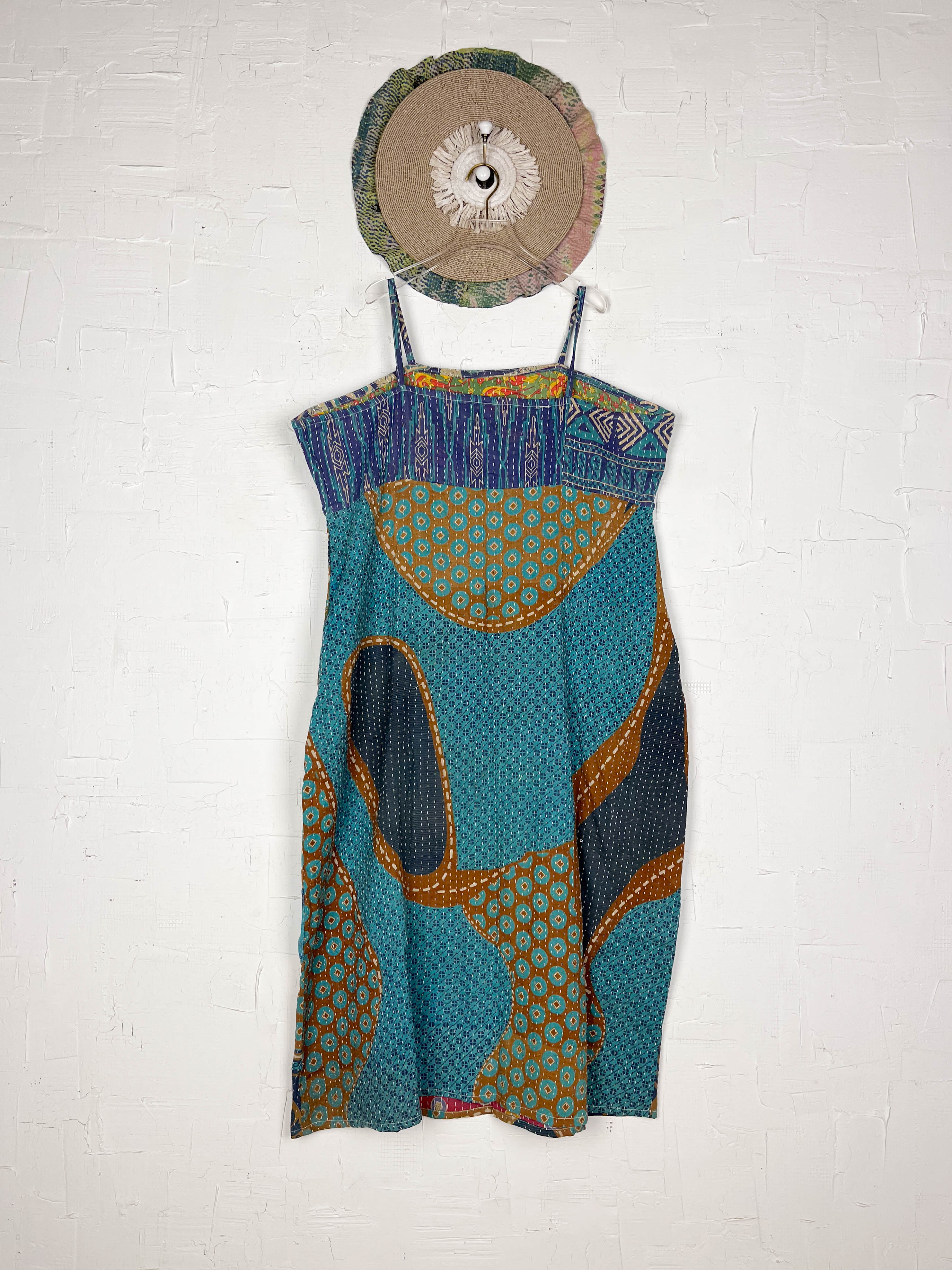 Designed to celebrate your silhouette, this midi-length Kantha dress drapes and flows with graceful movement. Crafted from carefully selected Kantha patchwork, each piece showcases a delightful variation in underlying prints and colours, making yours truly one-of-a-kind
