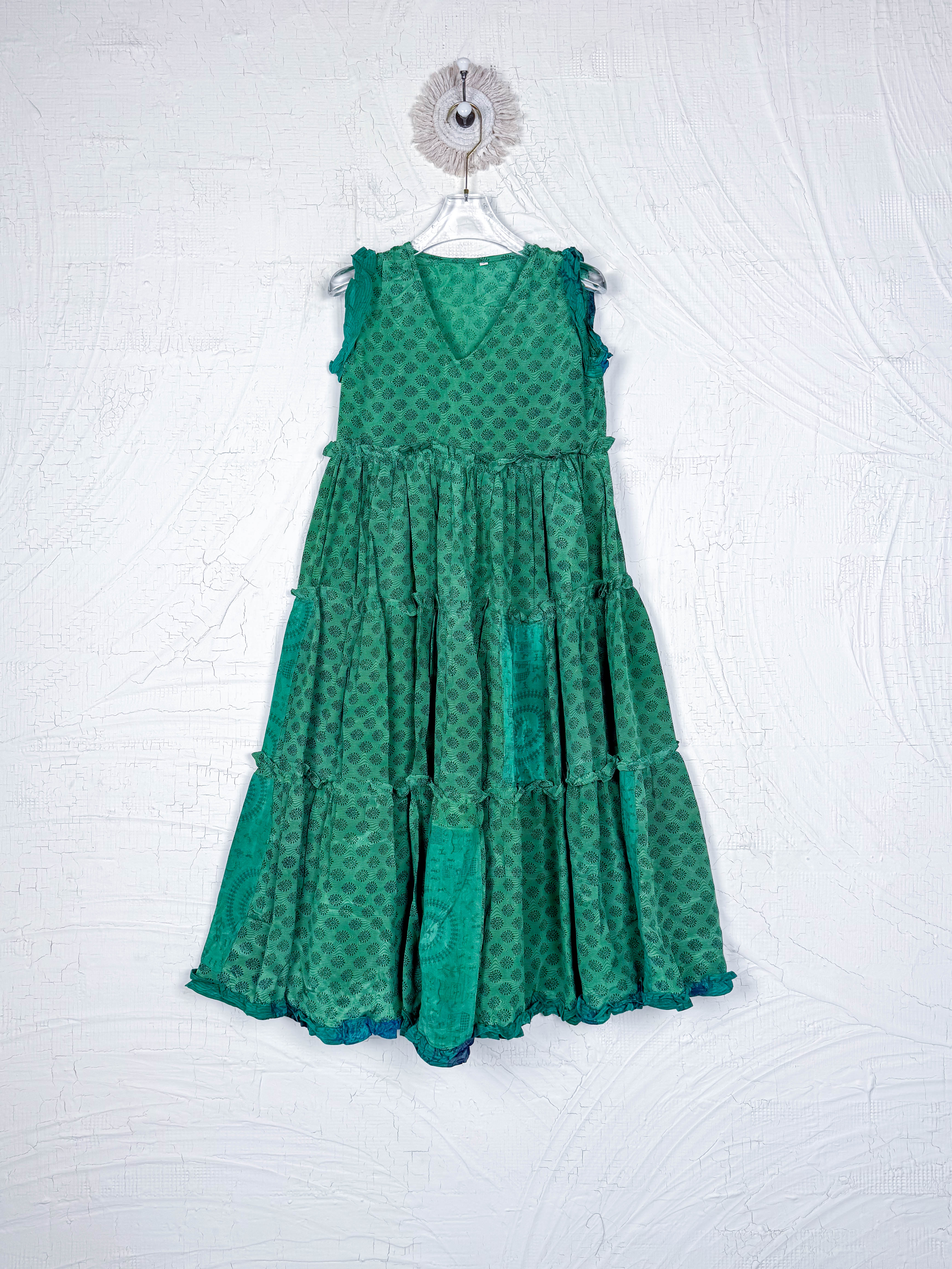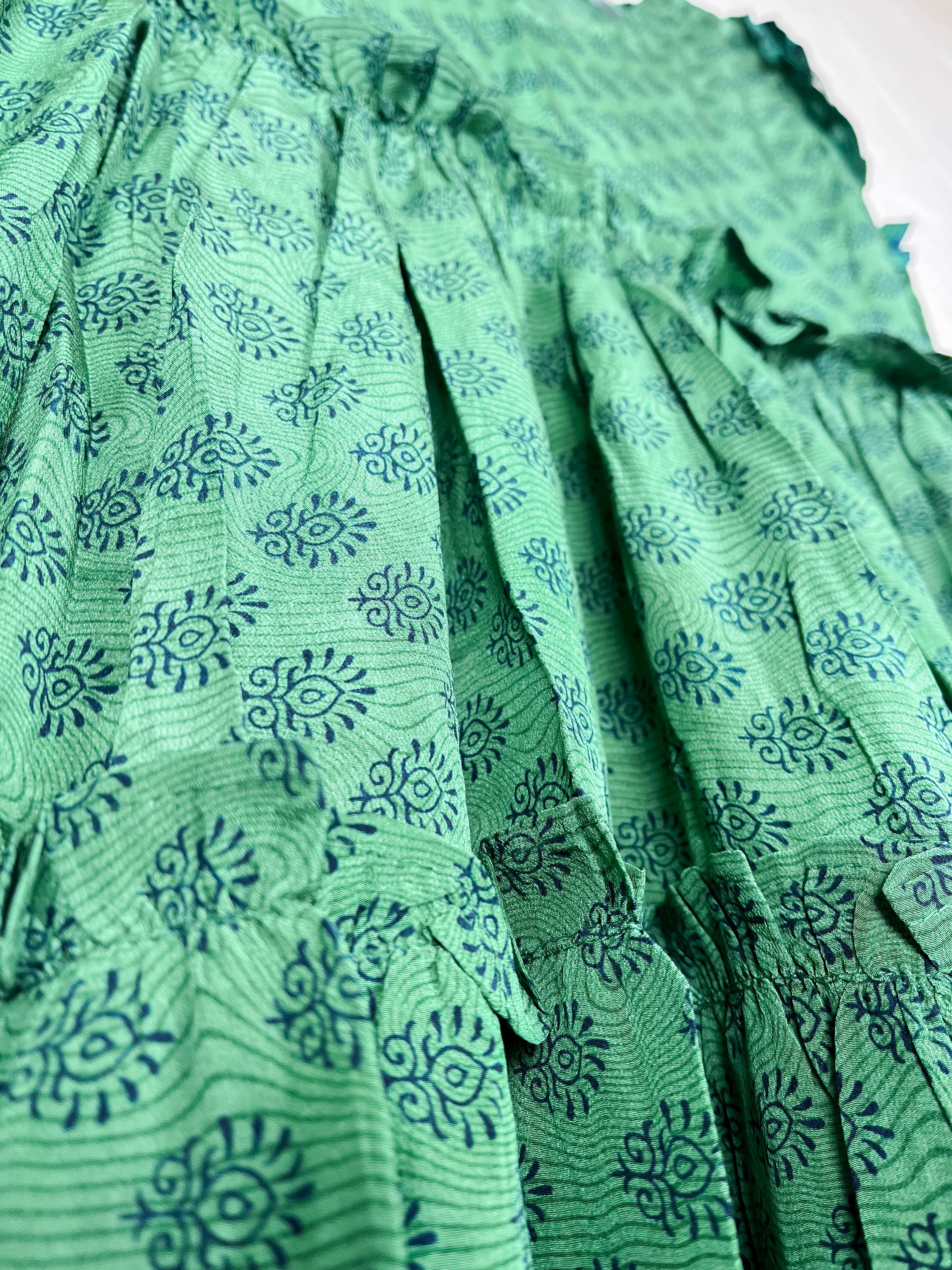 Handcrafted from Vintage Crepe Silk, every stitch and the flowy ruffle tells a story of craftsmanship, emotions and heritage!