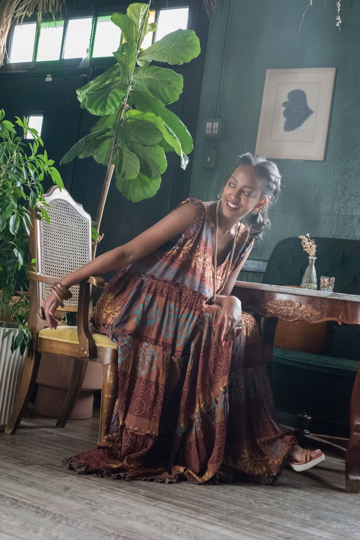 Designed for the woman who marches to her own beat, this piece features a deep, soulful V-neck and a cascade of ruffles that catch the light—and the air—as you move. It doesn’t just sit on your frame; it flows with your rhythm.