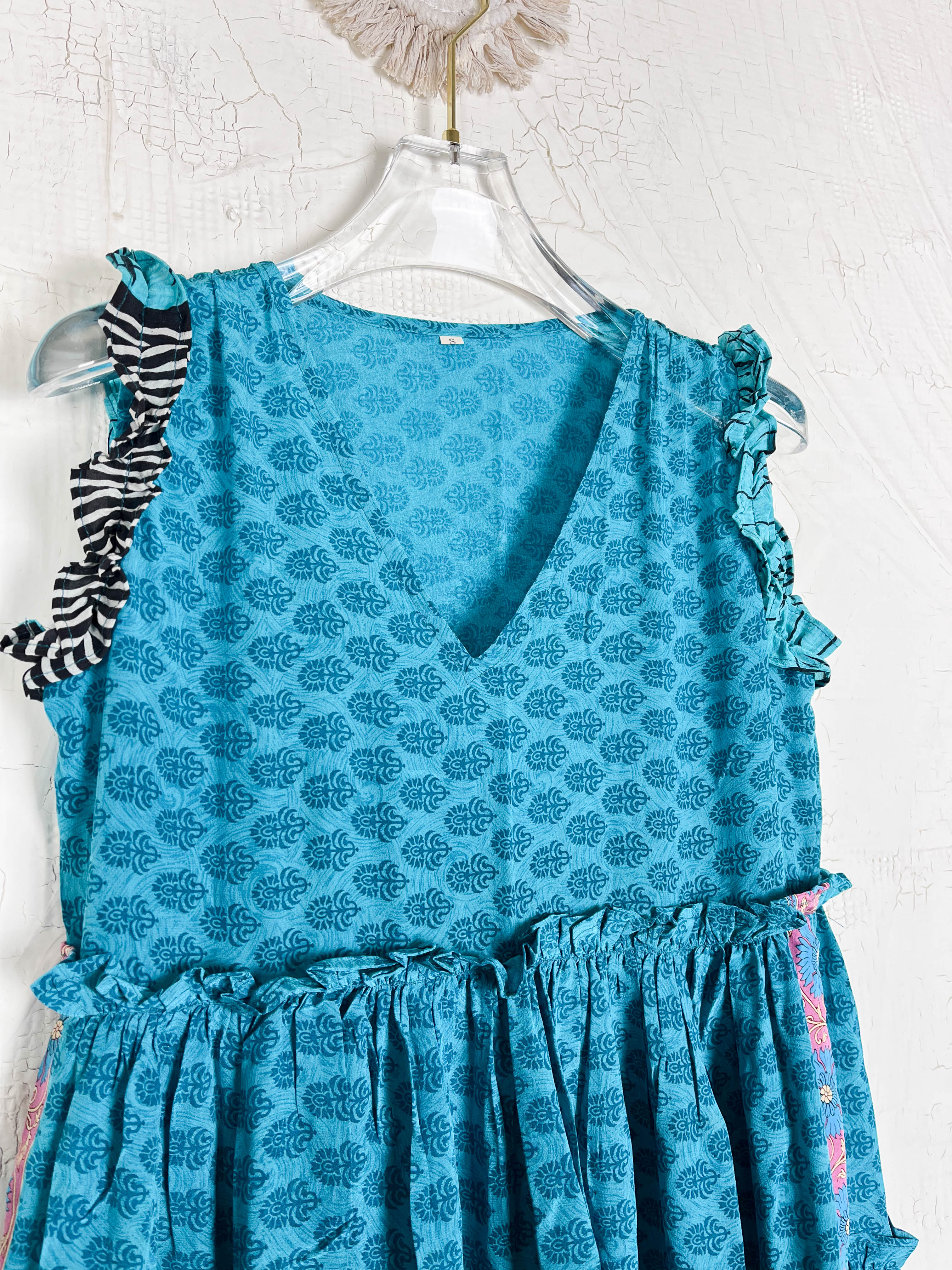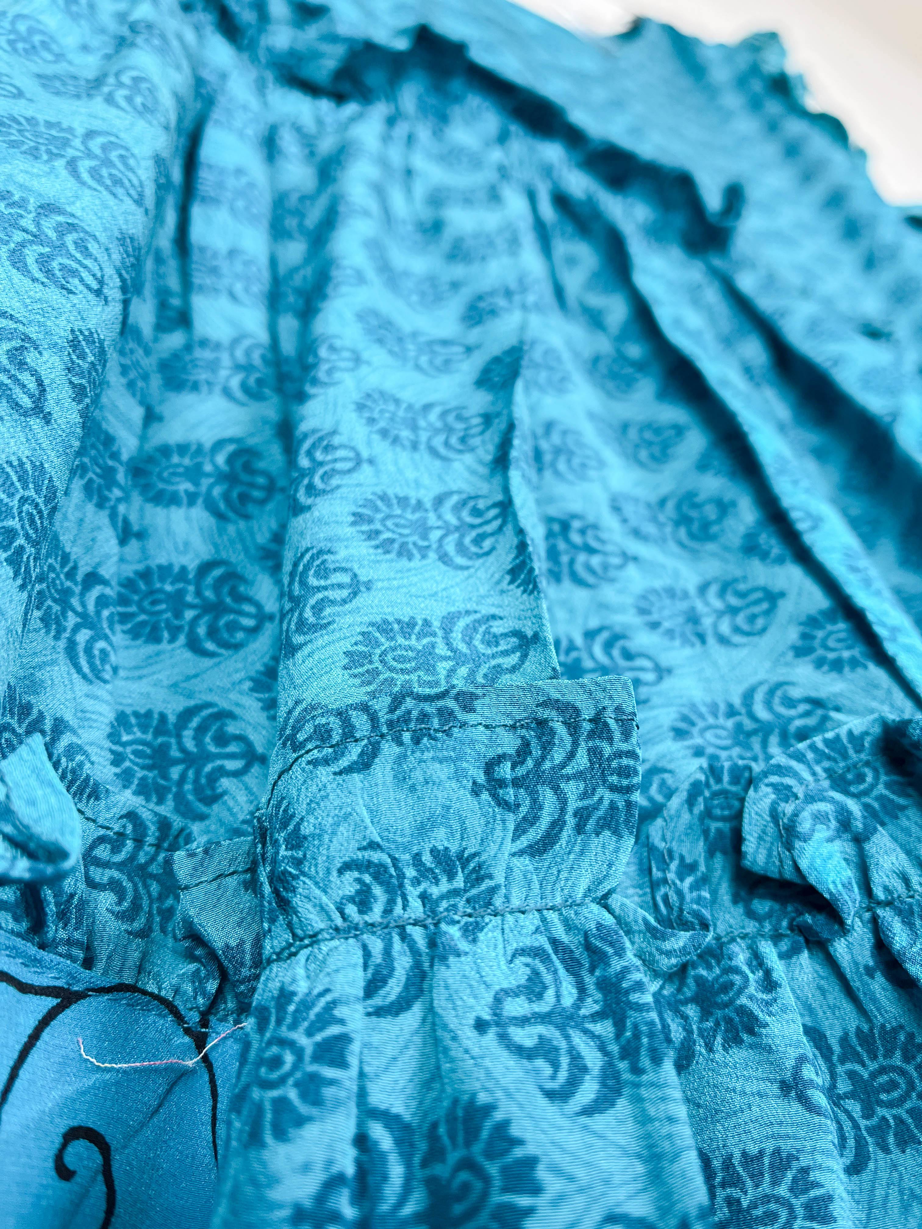 Handcrafted from Vintage Crepe Silk, every stitch and the flowy ruffle tells a story of craftsmanship, emotions and heritage!