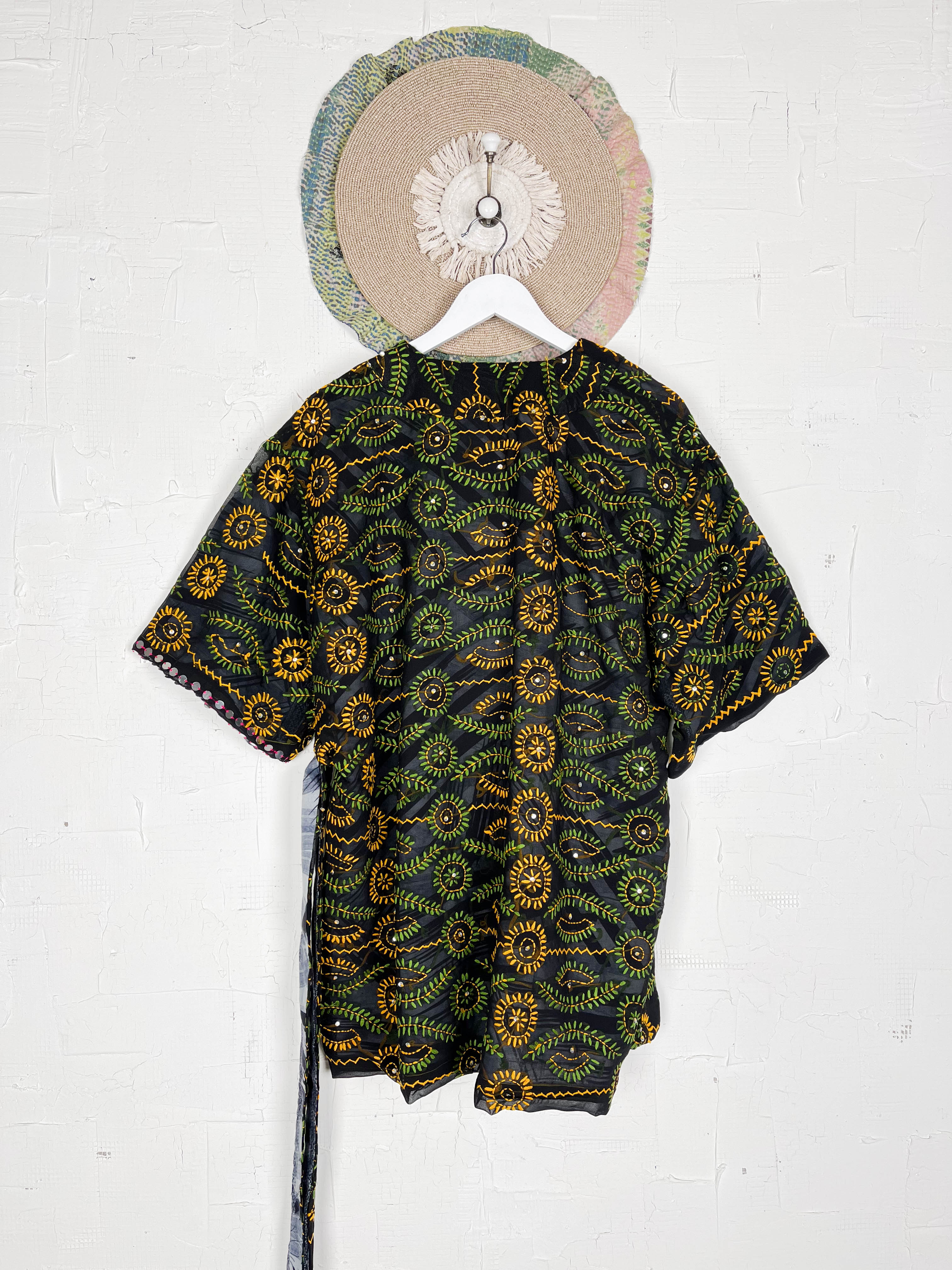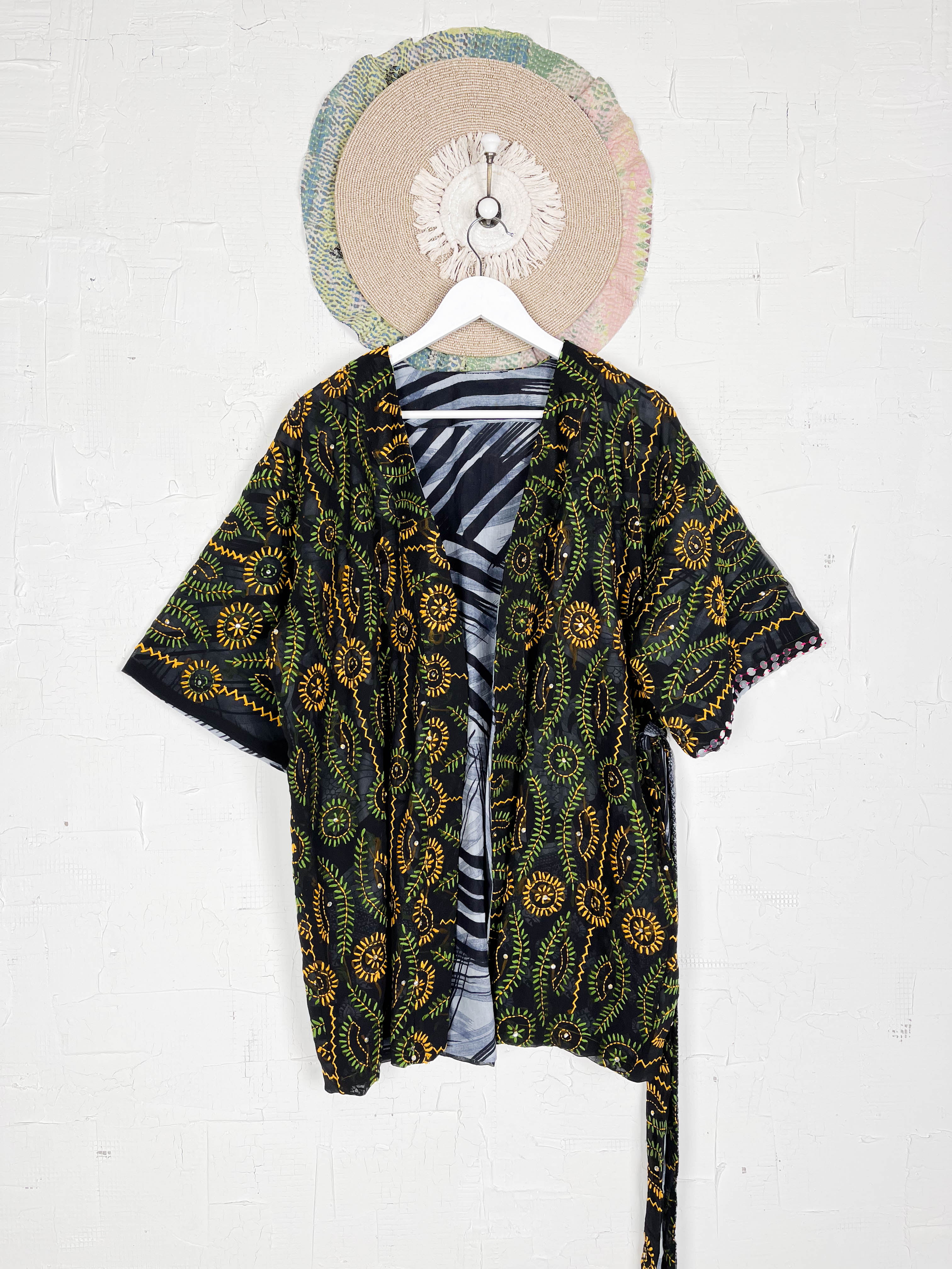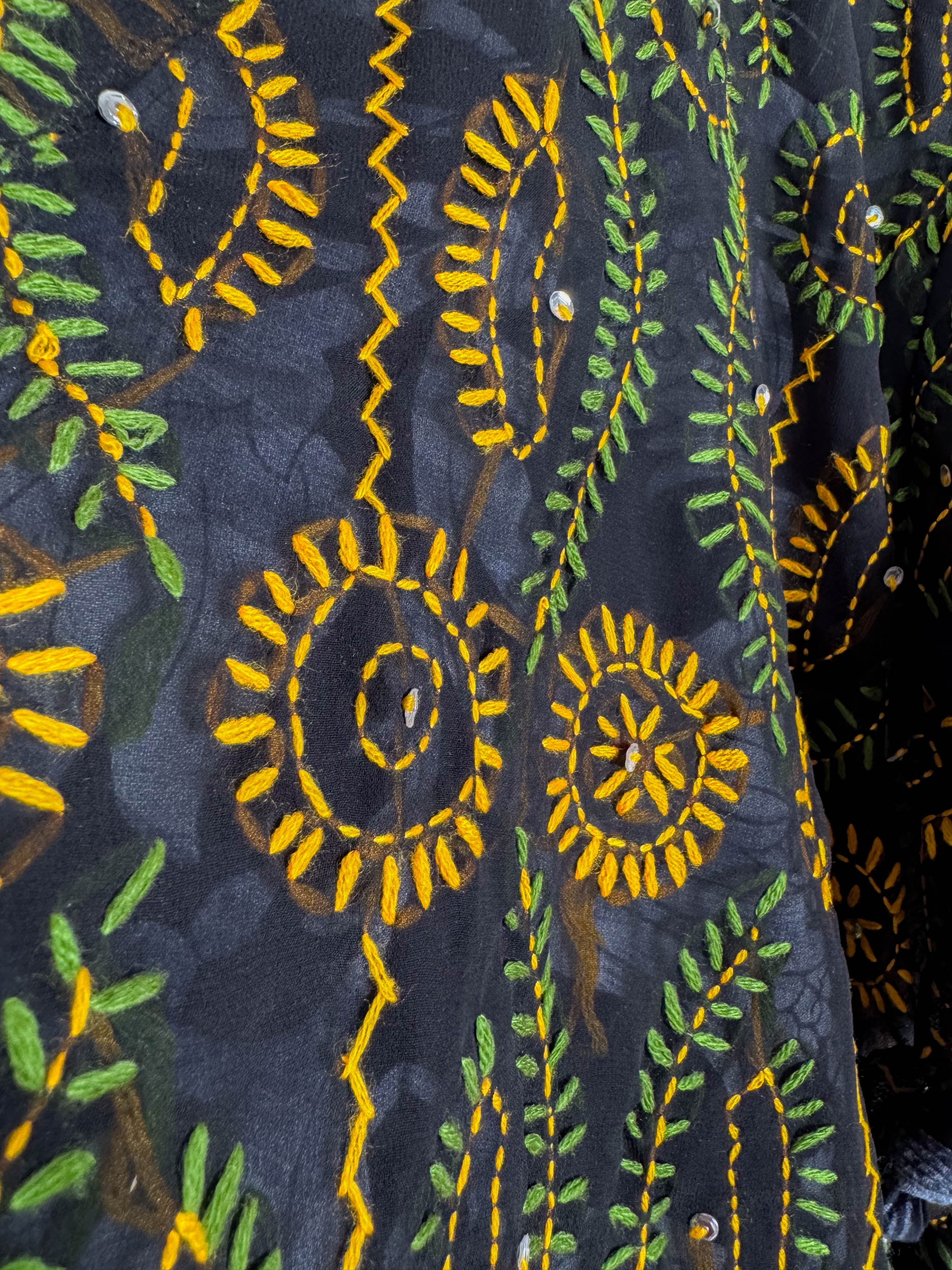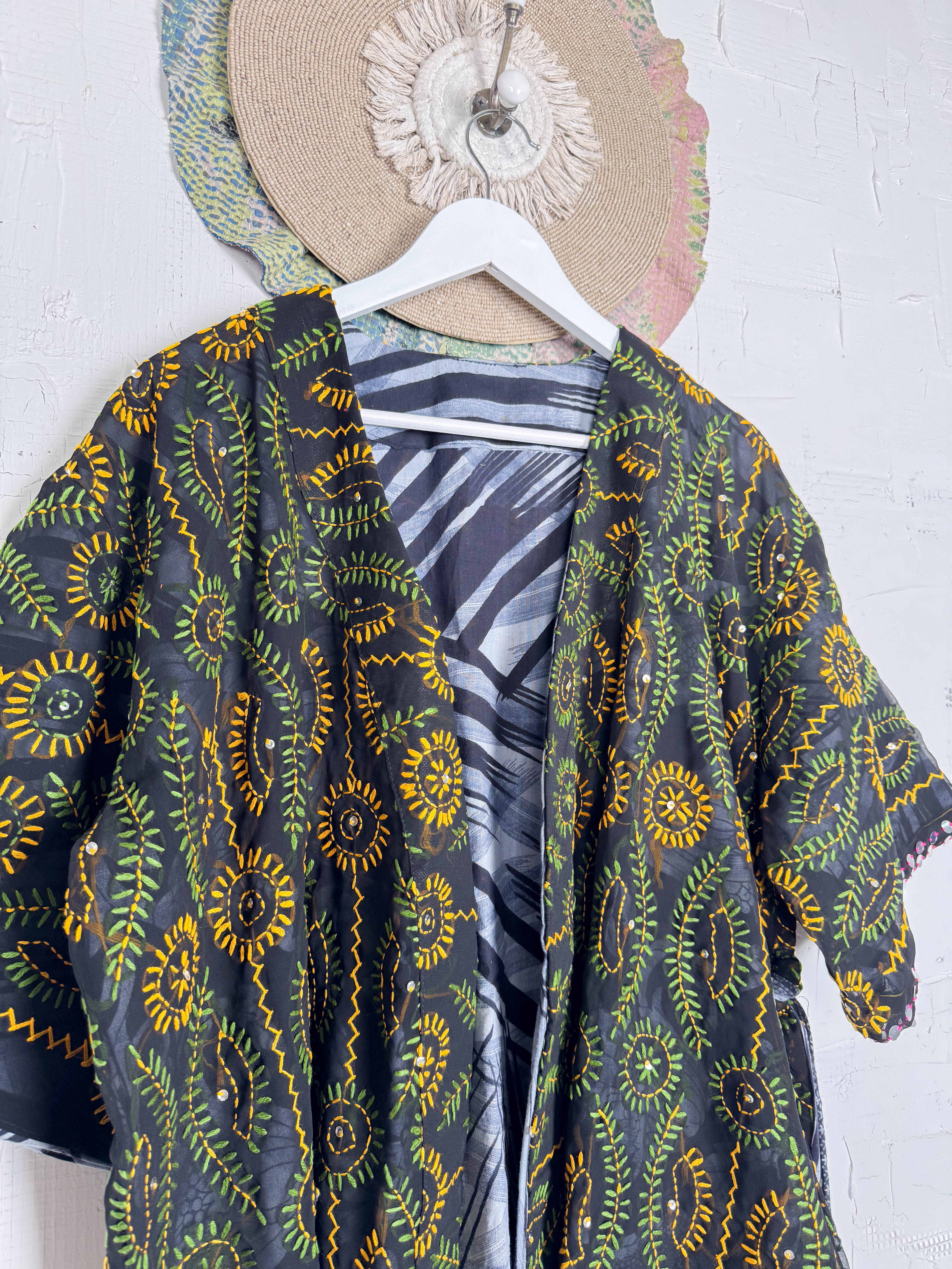 Embrace the beauty of hand embroidery and a touch of artistry to your daily life, this Handcrafted robe offers a harmonious blend of traditional handwork and the timeless elements of nature.