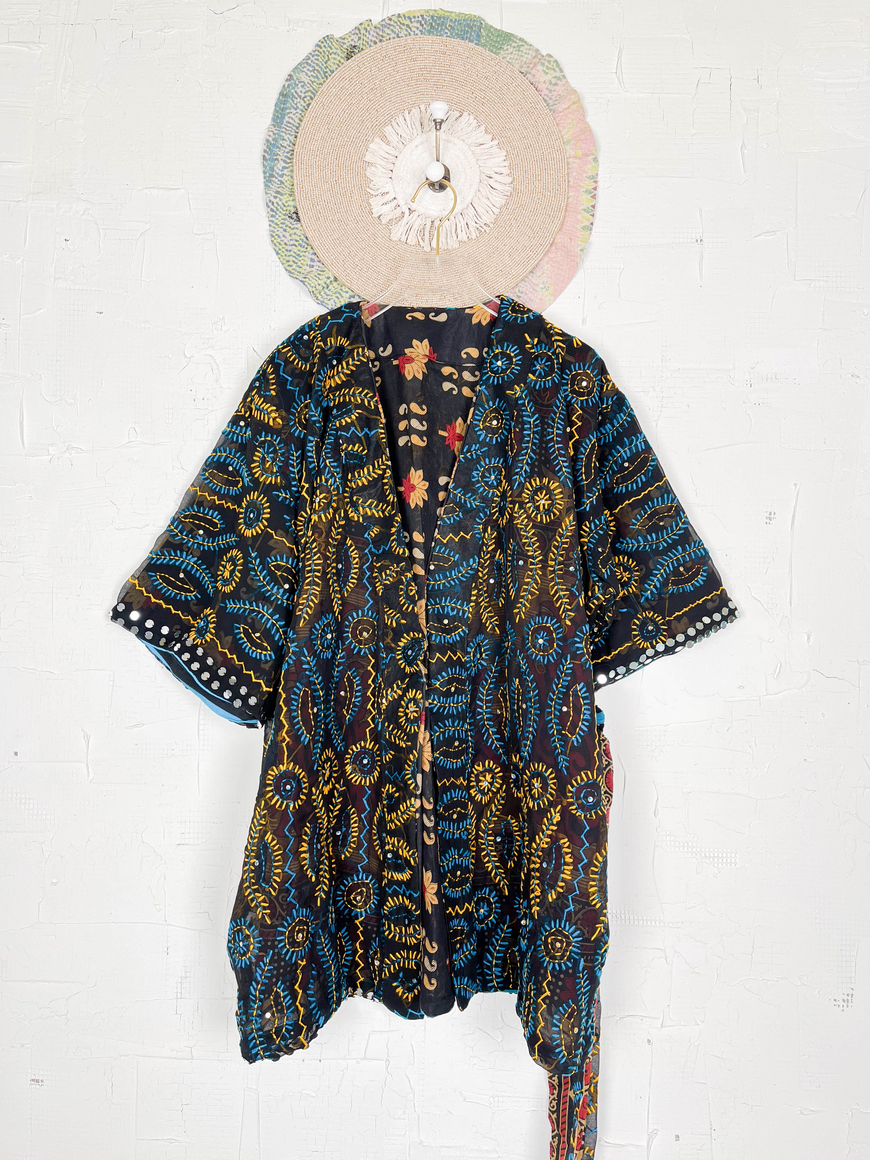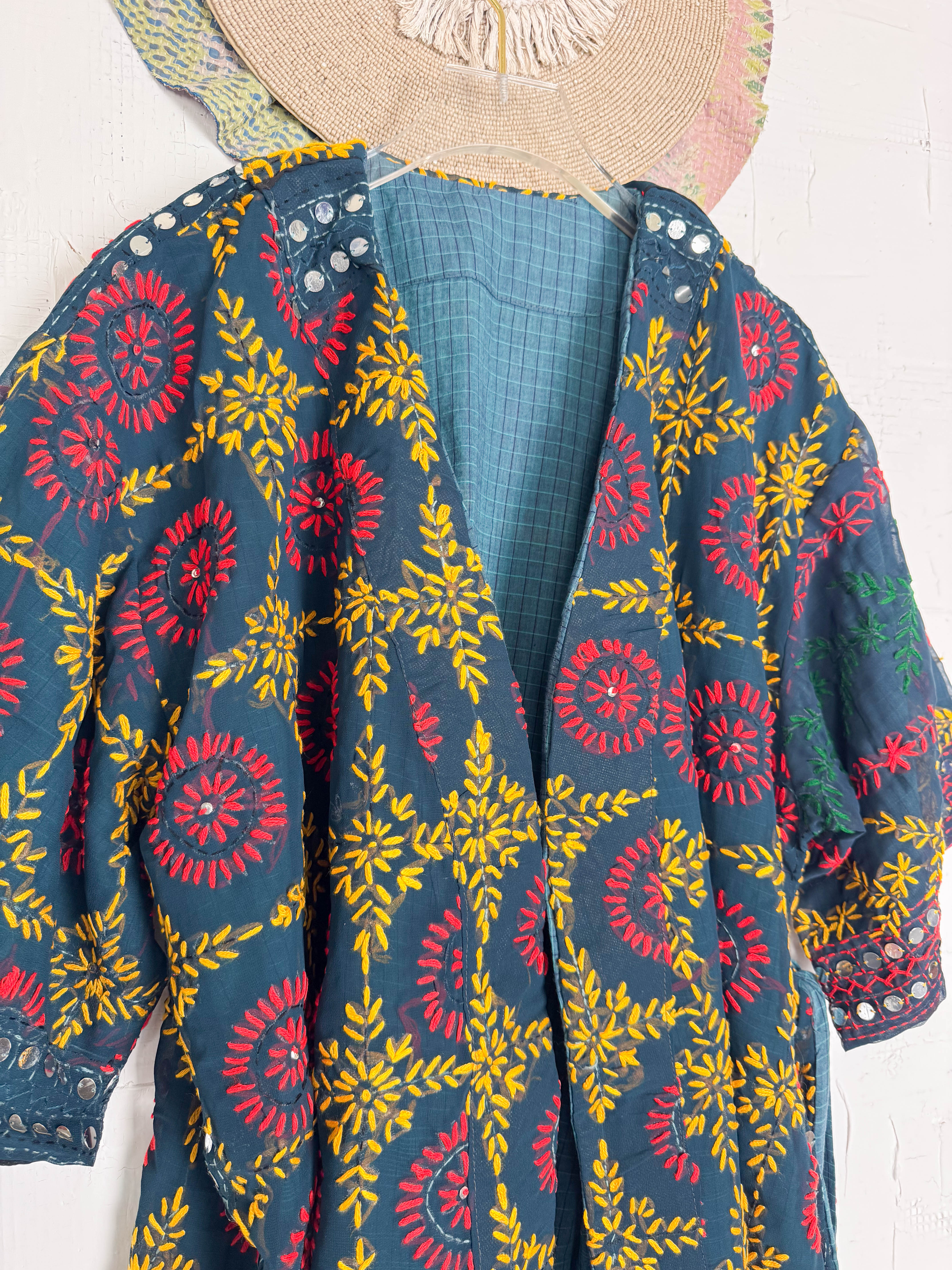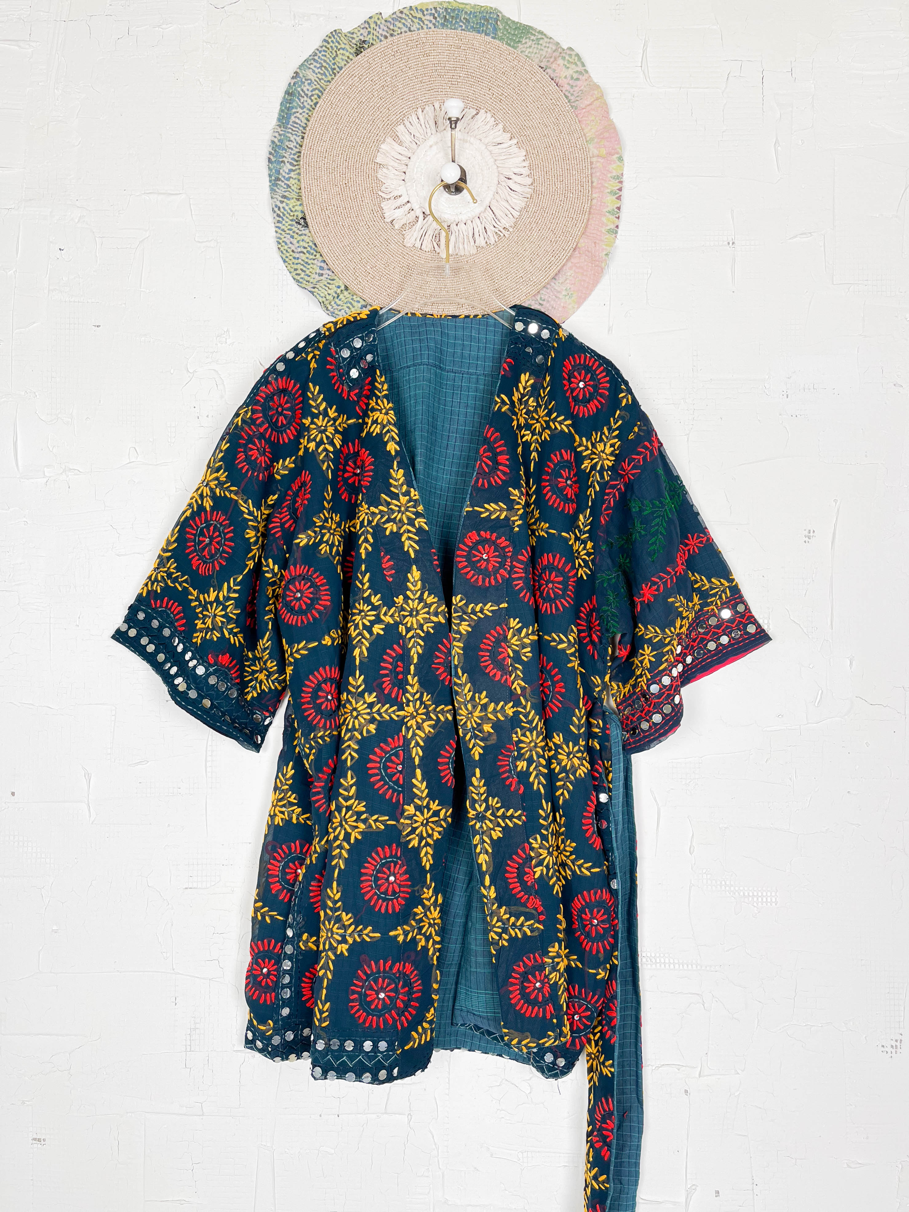 Embrace the beauty of hand embroidery and a touch of artistry to your daily life, this Handcrafted robe offers a harmonious blend of traditional handwork and the timeless elements of nature.