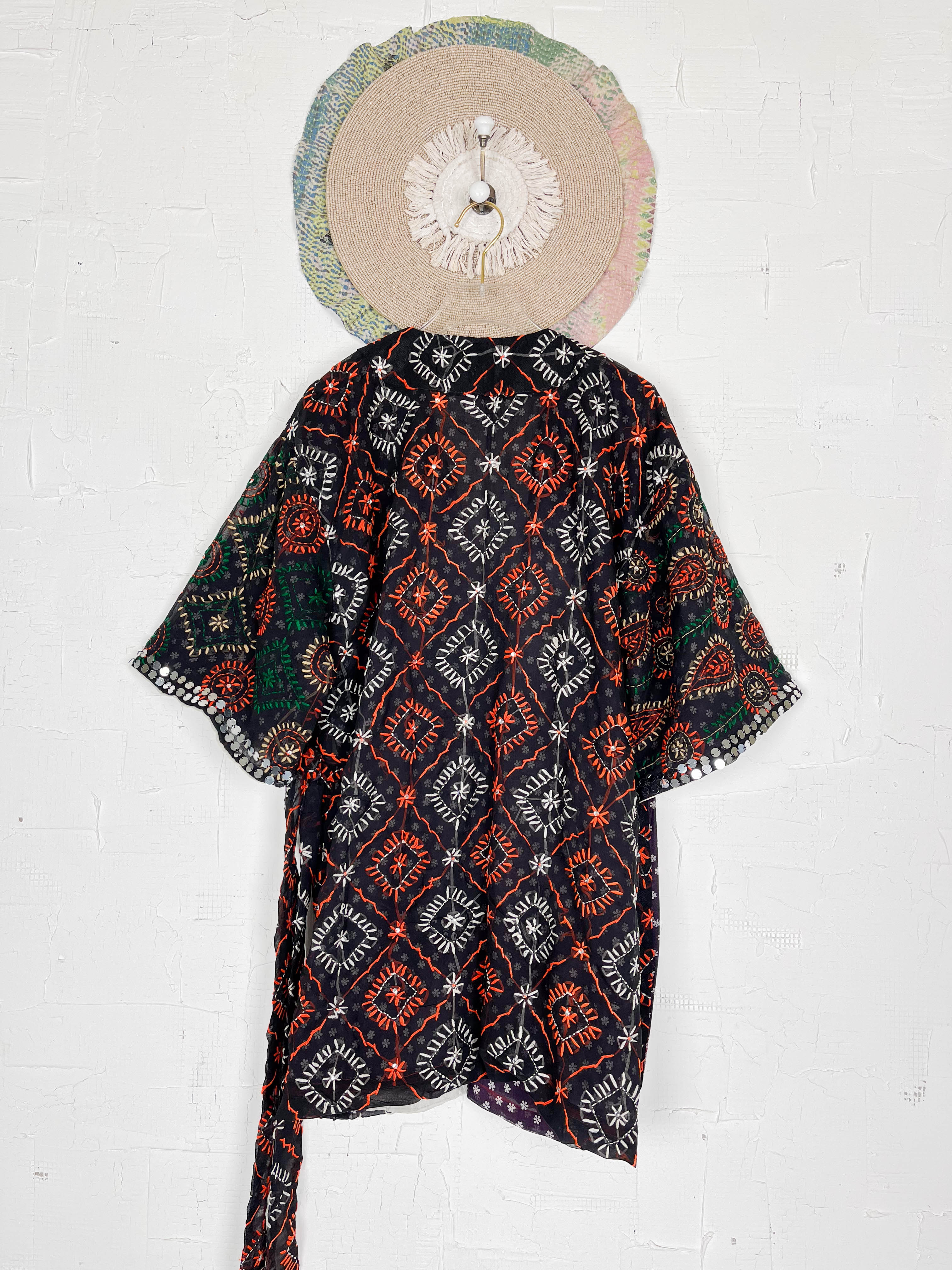 Embrace the beauty of hand embroidery and a touch of artistry to your daily life, this Handcrafted robe offers a harmonious blend of traditional handwork and the timeless elements of nature.