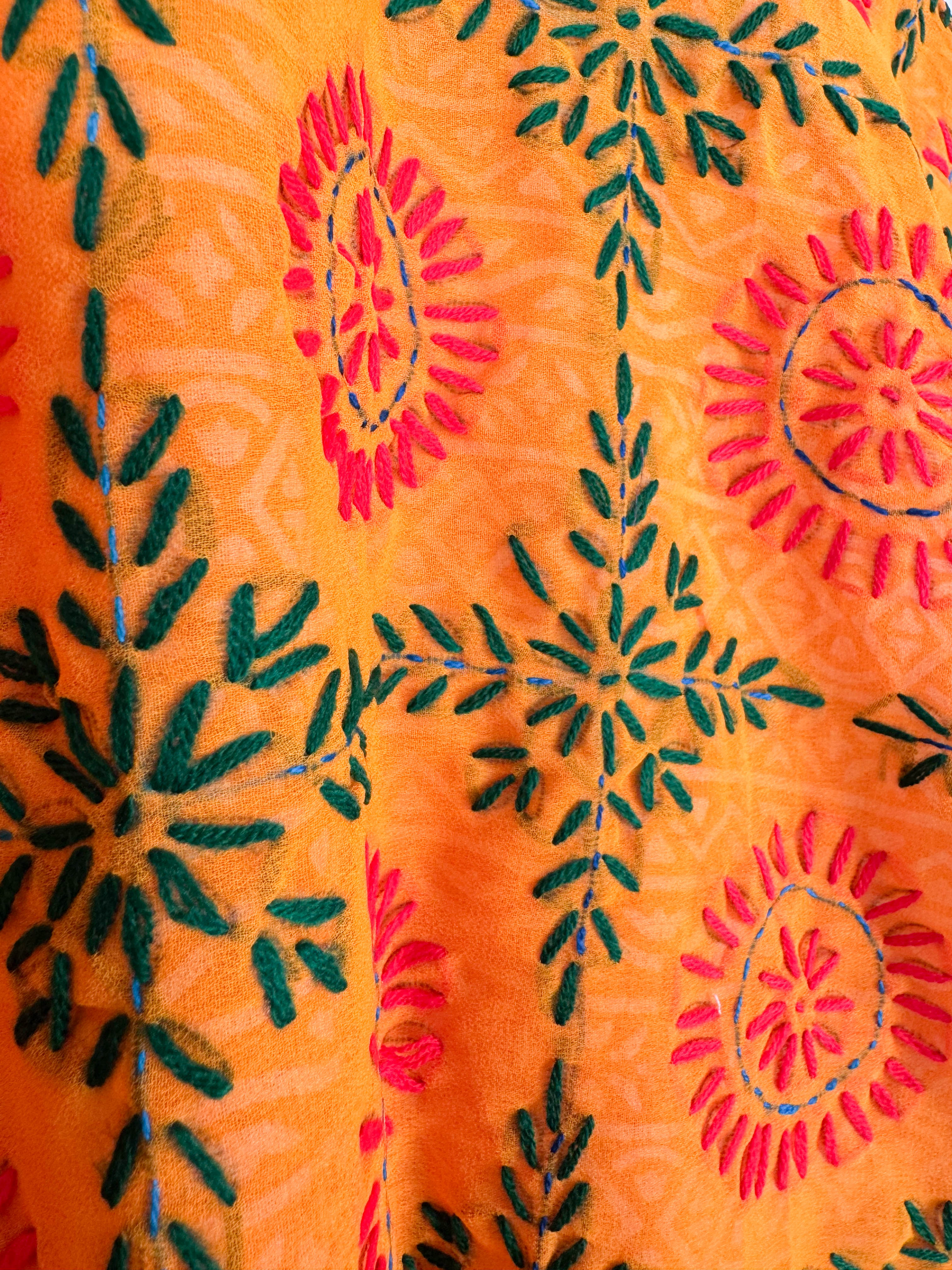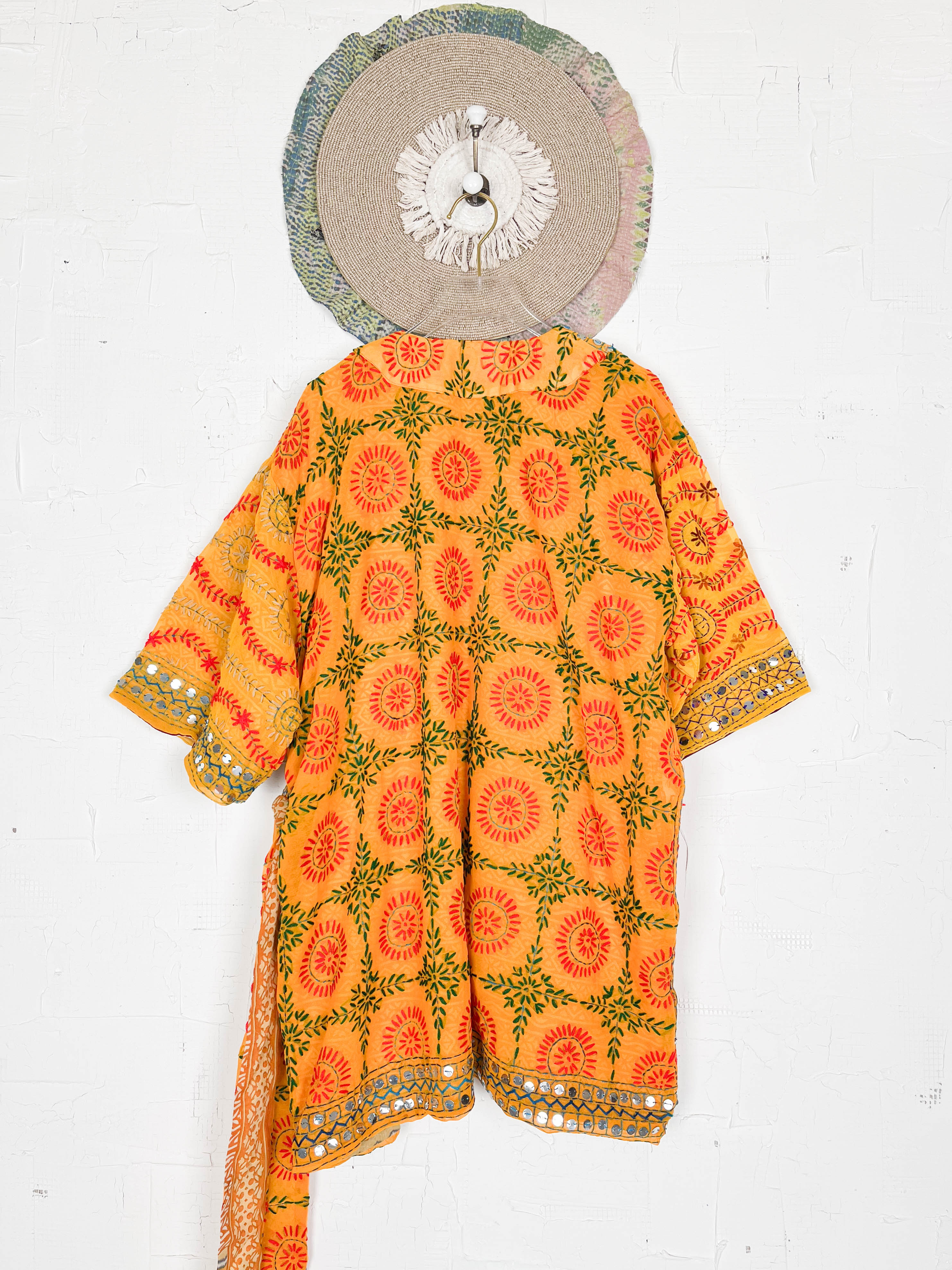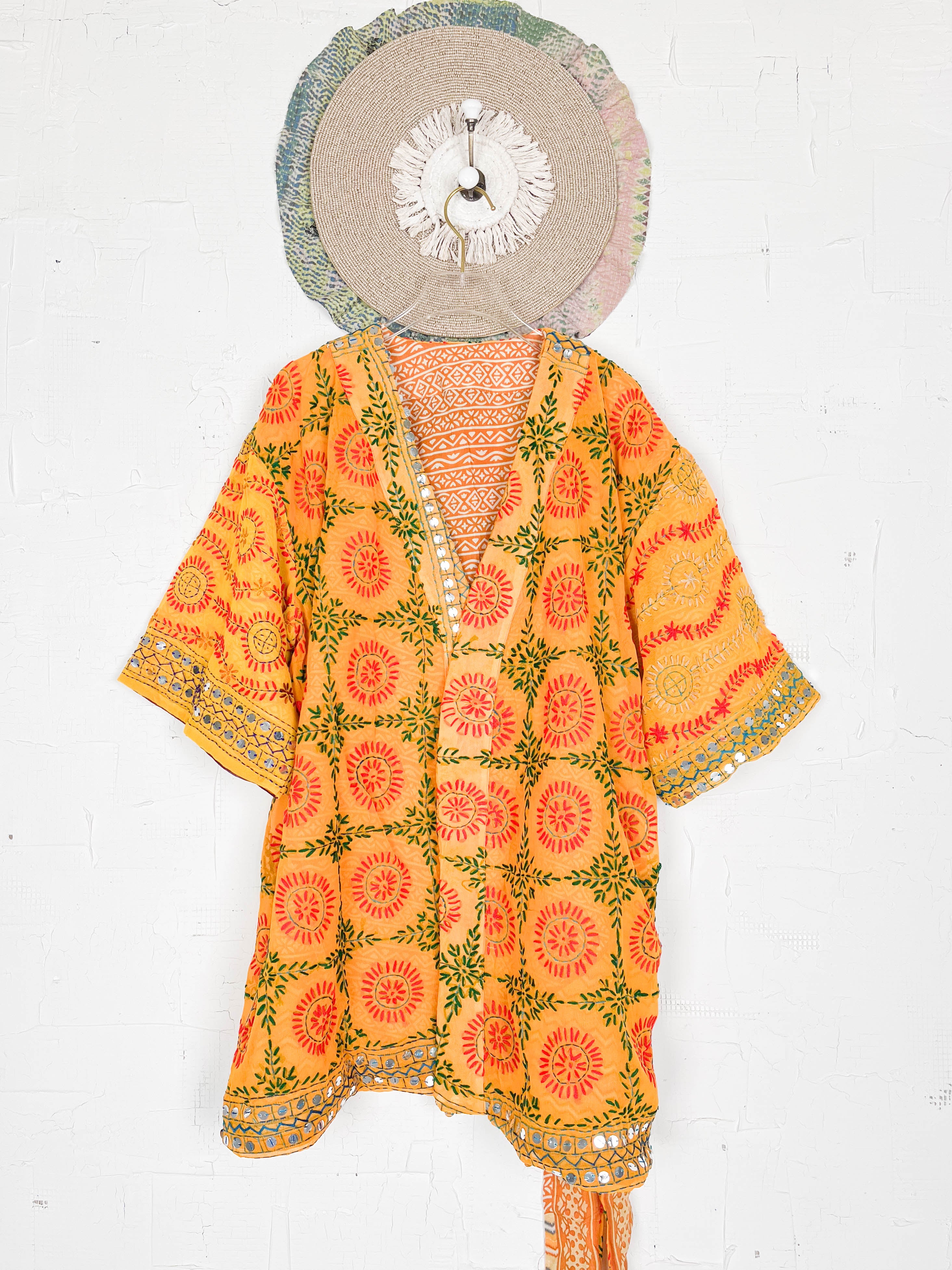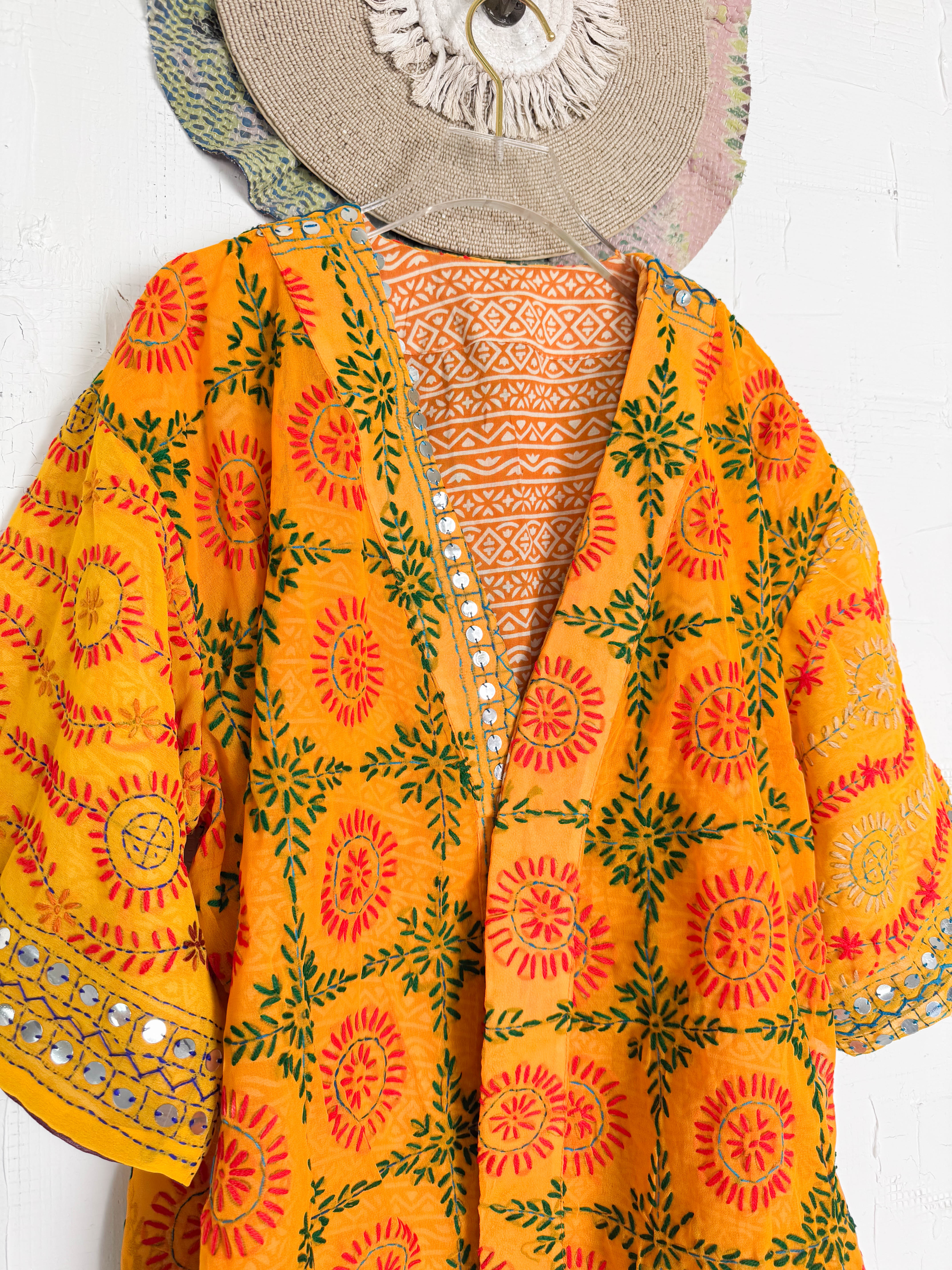 Phulkari Short Kimono Robe Orange Summer