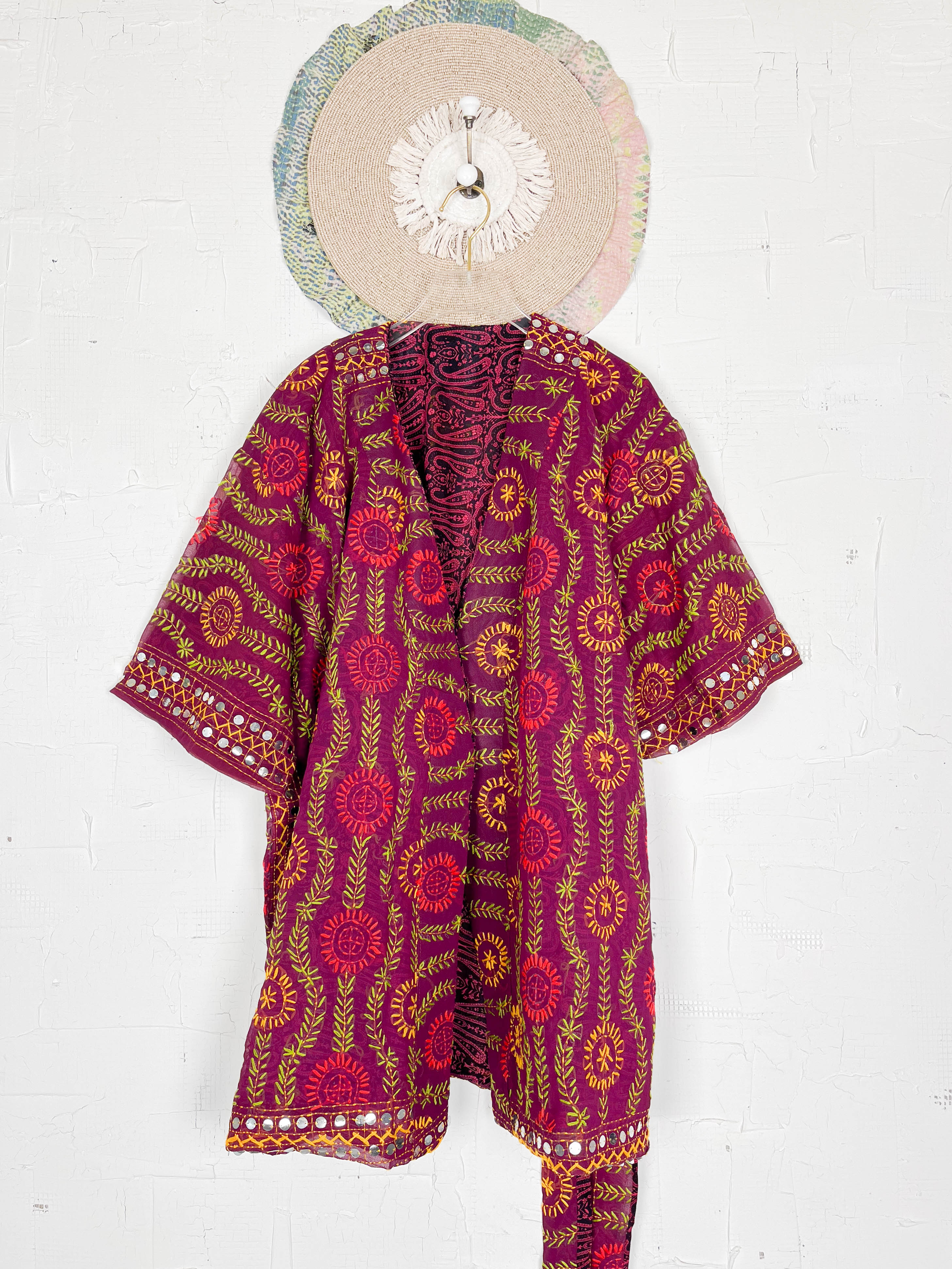 Embrace the beauty of hand embroidery and a touch of artistry to your daily life, this Handcrafted robe offers a harmonious blend of traditional handwork and the timeless elements of nature.