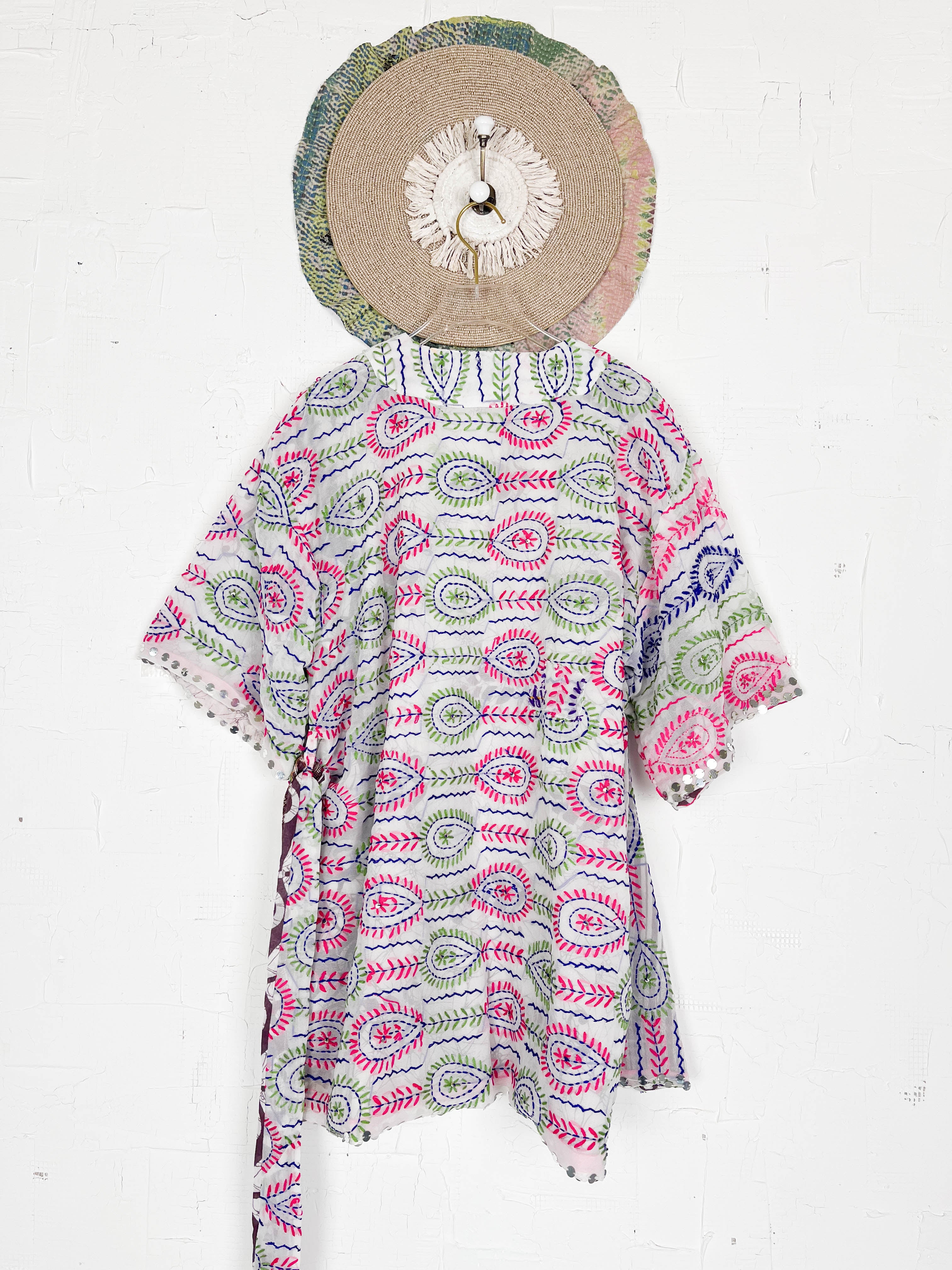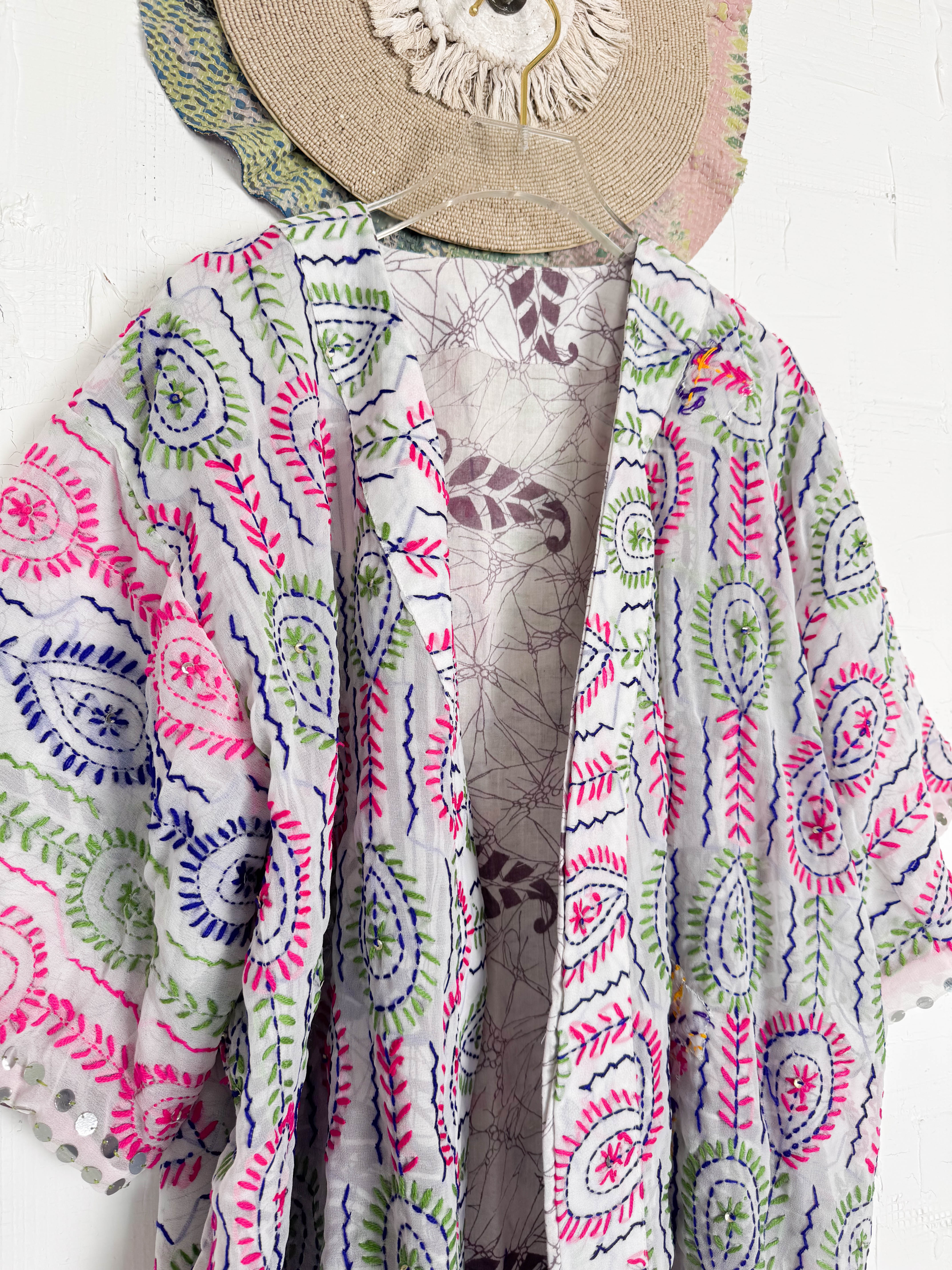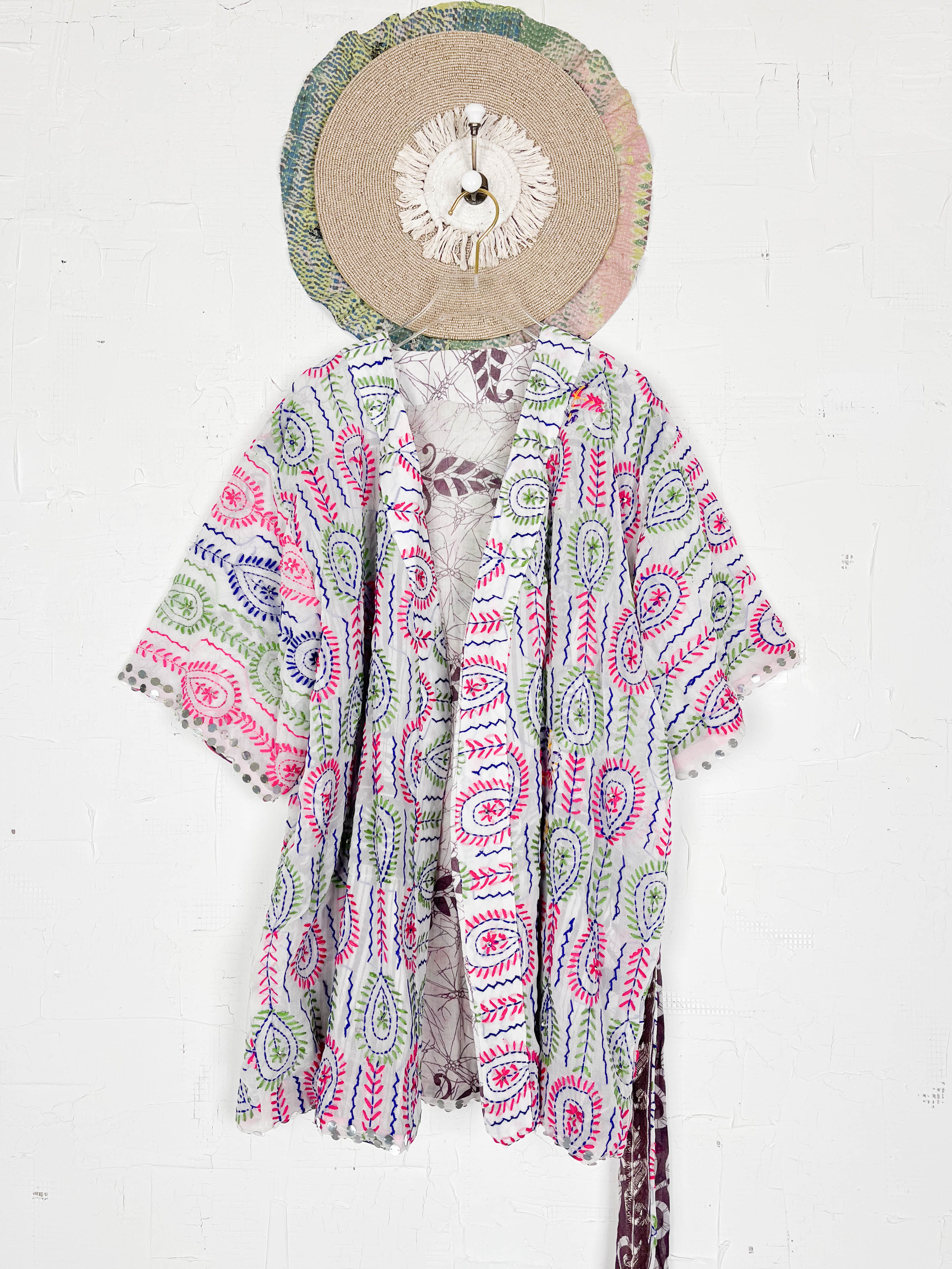 Embrace the beauty of hand embroidery and a touch of artistry to your daily life, this Handcrafted robe offers a harmonious blend of traditional handwork and the timeless elements of nature.