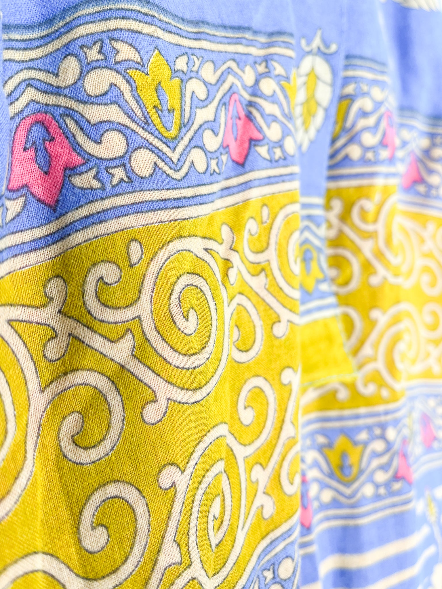 Made from vintage cotton sarees featuring traditional floral prints and vibrant hues, these pants are a celebration of timeless design. Their loose, flowing wide legs ensure ultimate comfort and freedom of movement, while the Adjustable front tie waistband with back-half elastic gives you control for desired fit.