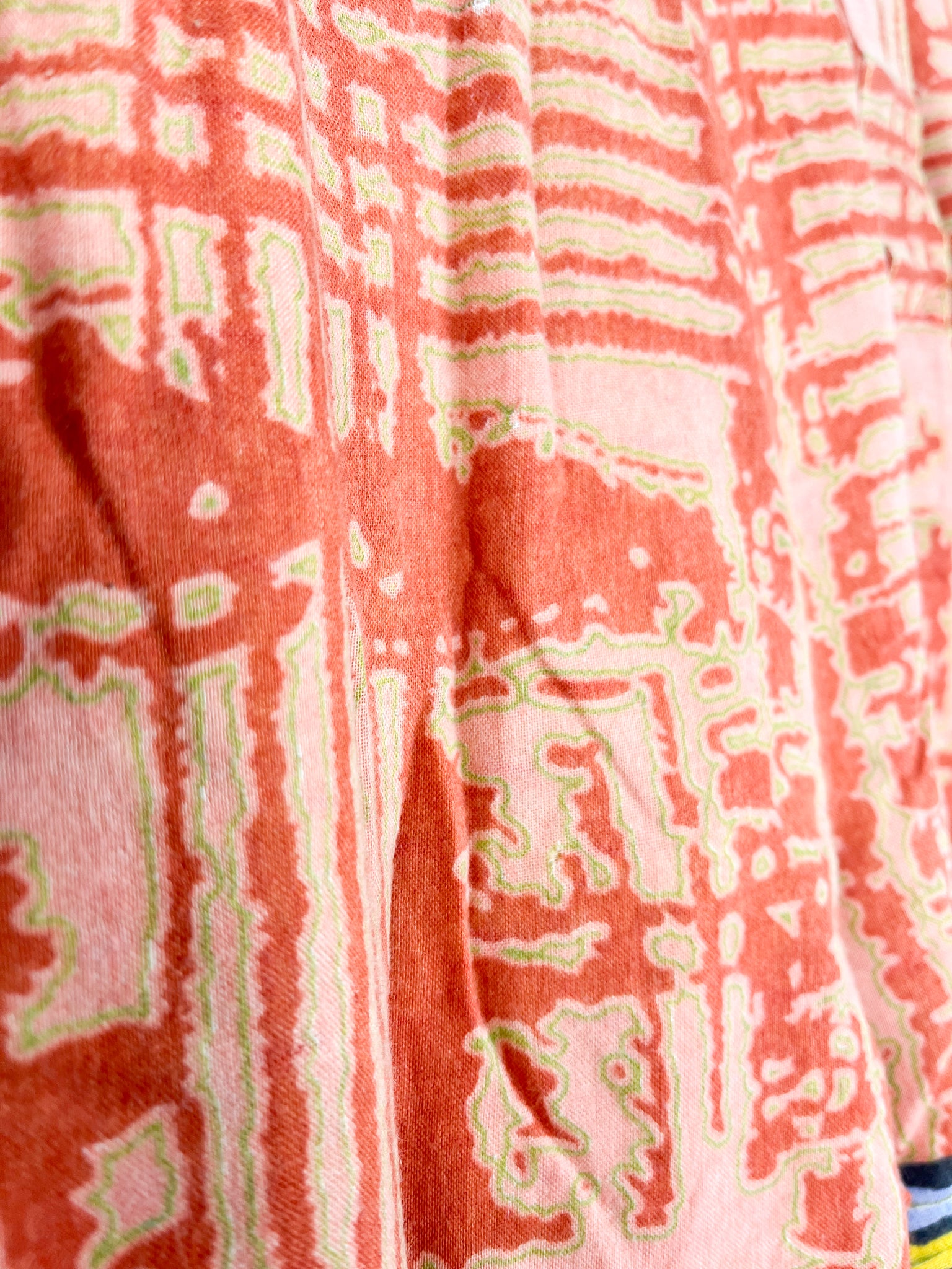 Made from vintage cotton sarees featuring traditional floral prints and vibrant hues, these pants are a celebration of timeless design. Their loose, flowing wide legs ensure ultimate comfort and freedom of movement, while the Adjustable front tie waistband with back-half elastic gives you control for desired fit.