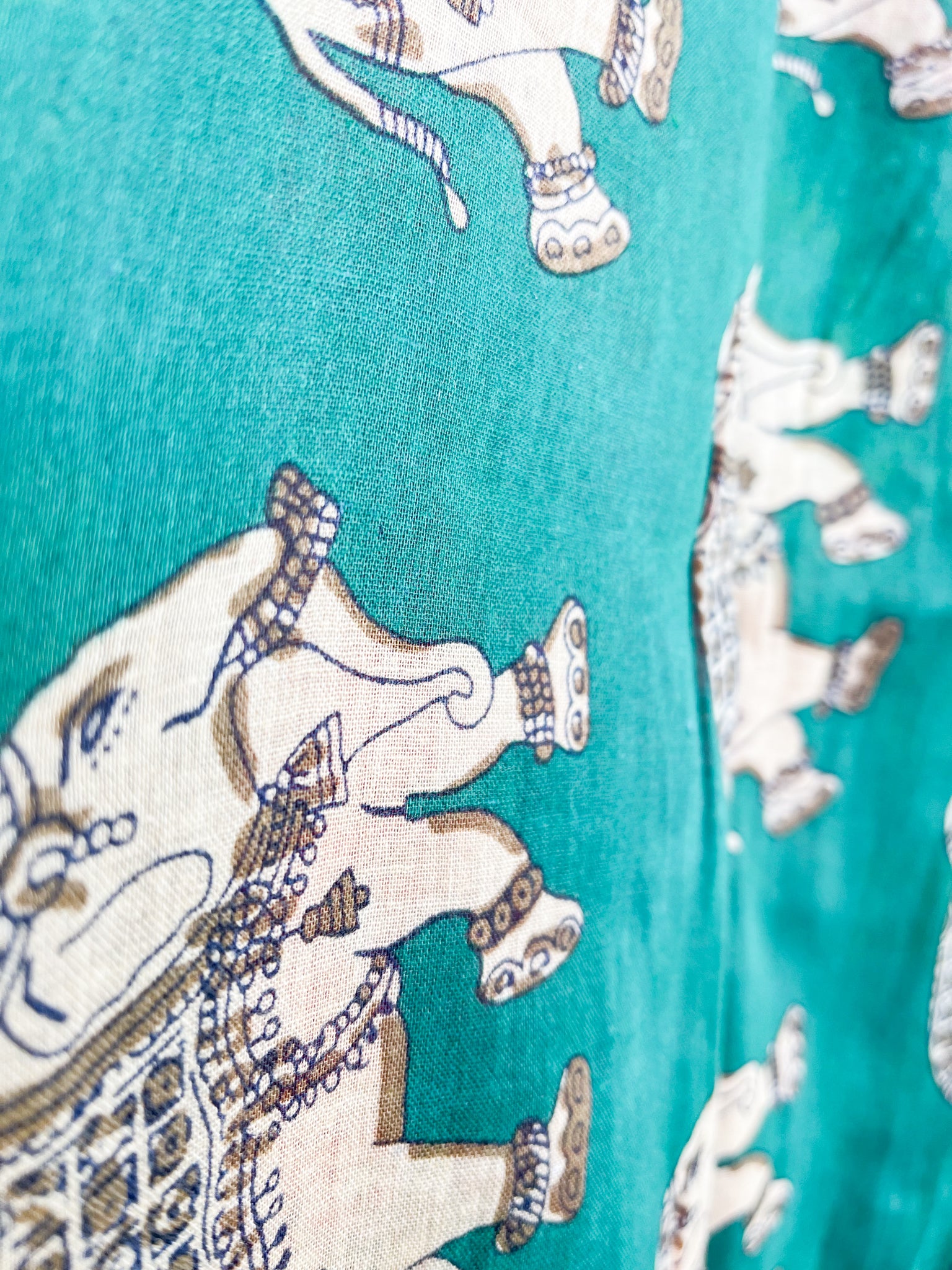 Made from vintage cotton sarees featuring traditional floral prints and vibrant hues, these pants are a celebration of timeless design. Their loose, flowing wide legs ensure ultimate comfort and freedom of movement, while the Adjustable front tie waistband with back-half elastic gives you control for desired fit.