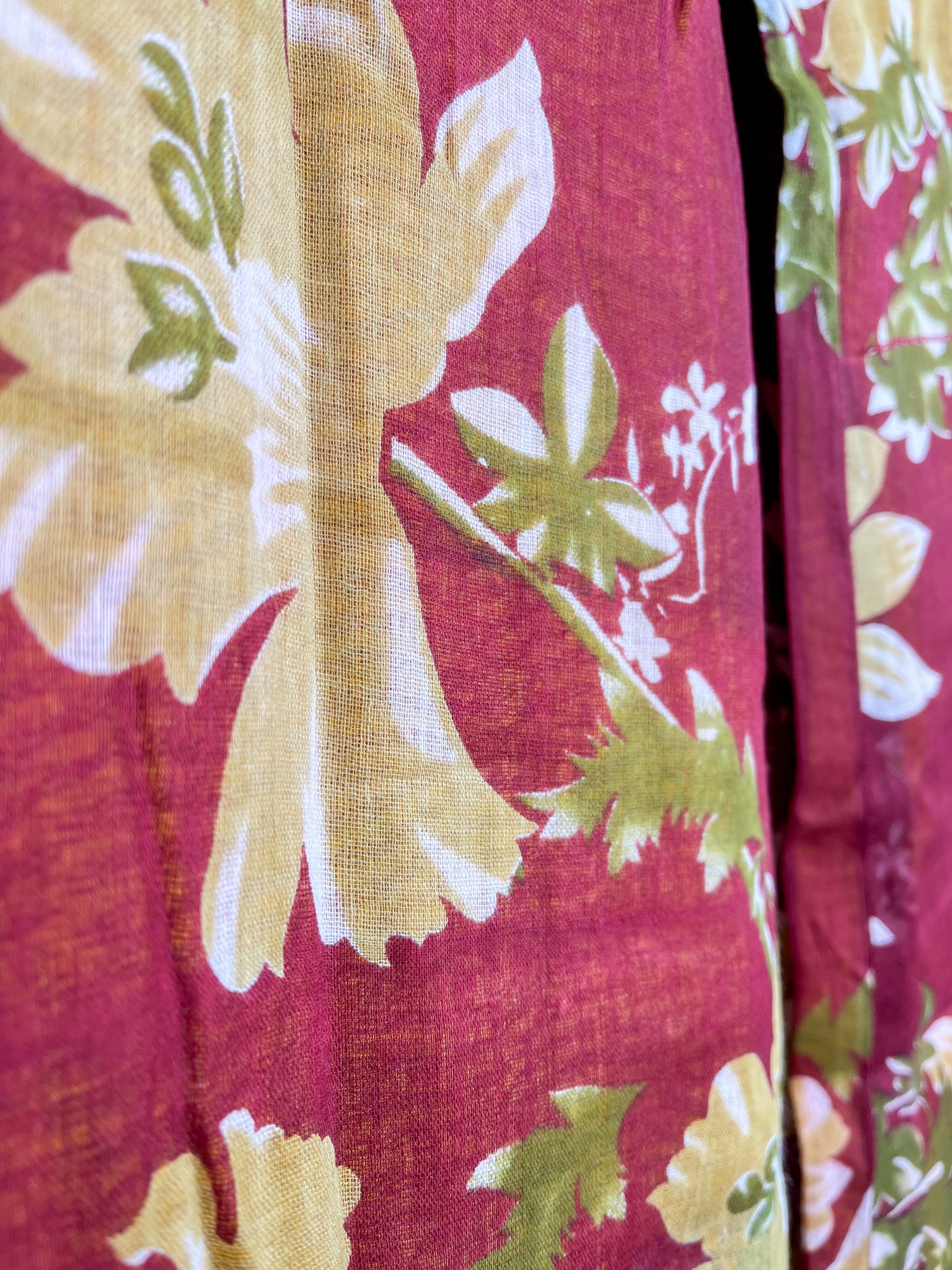 Made from vintage cotton sarees featuring traditional floral prints and vibrant hues, these pants are a celebration of timeless design. Their loose, flowing wide legs ensure ultimate comfort and freedom of movement, while the Adjustable front tie waistband with back-half elastic gives you control for desired fit.
