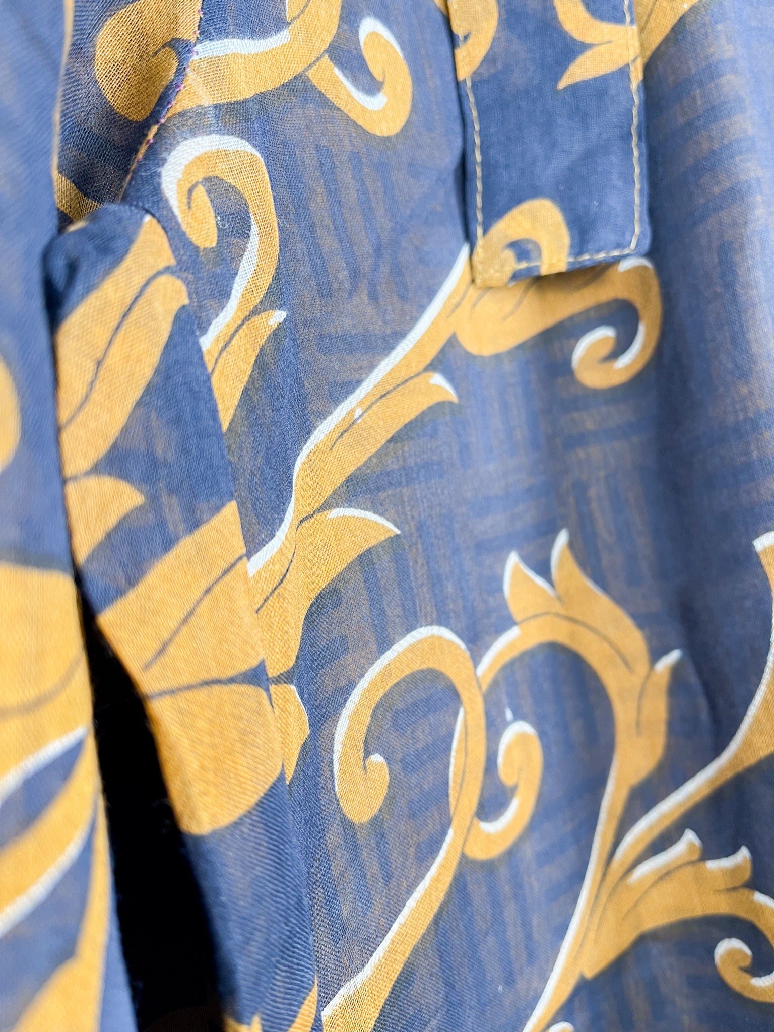 Made from vintage cotton sarees featuring traditional floral prints and vibrant hues, these pants are a celebration of timeless design. Their loose, flowing wide legs ensure ultimate comfort and freedom of movement, while the Adjustable front tie waistband with back-half elastic gives you control for desired fit.