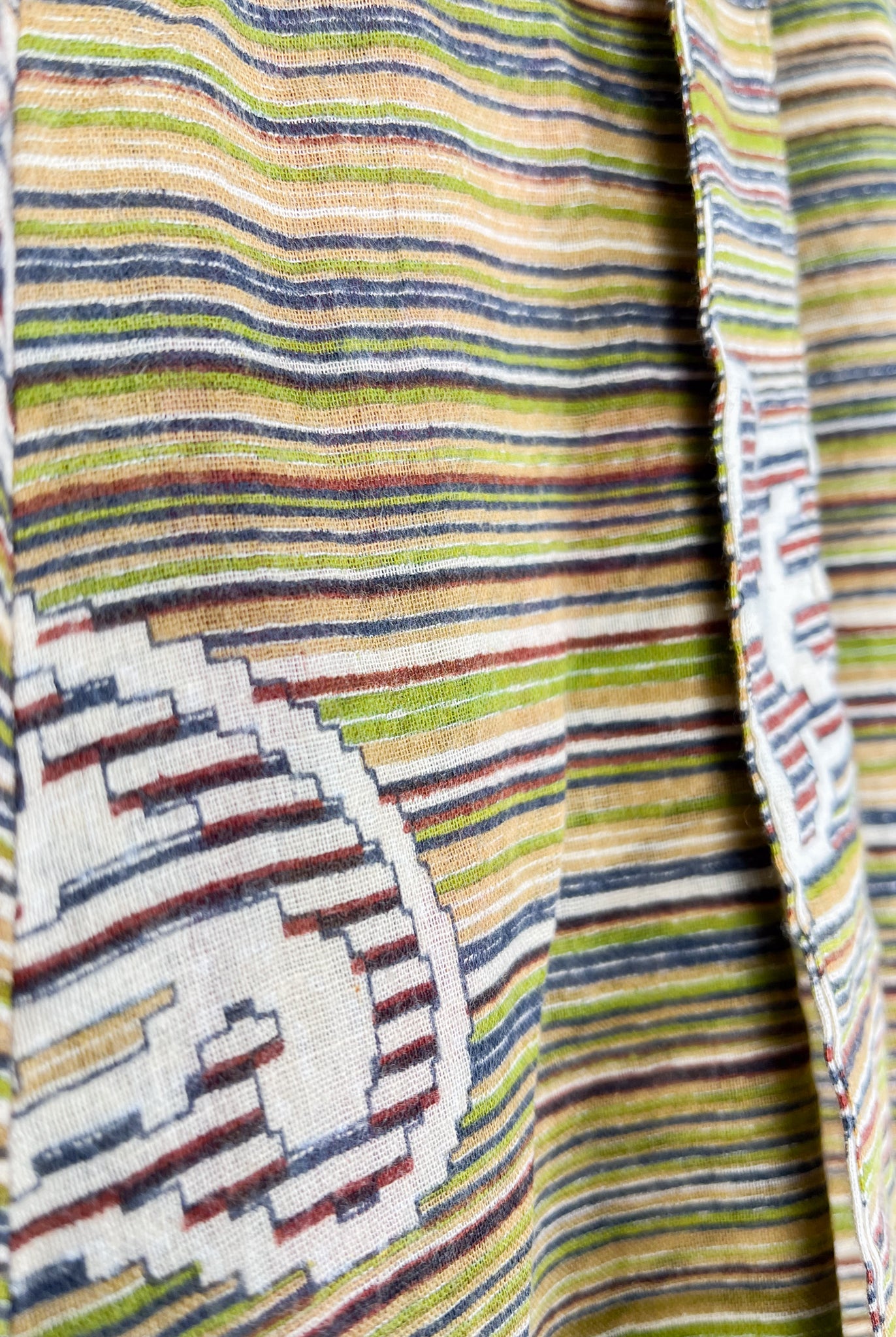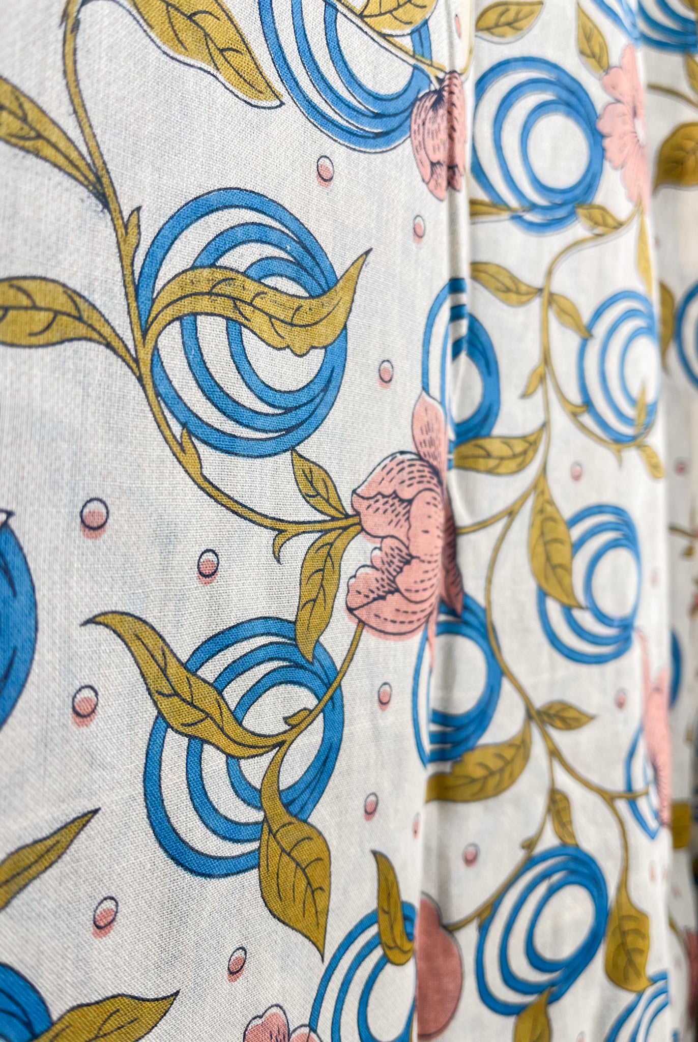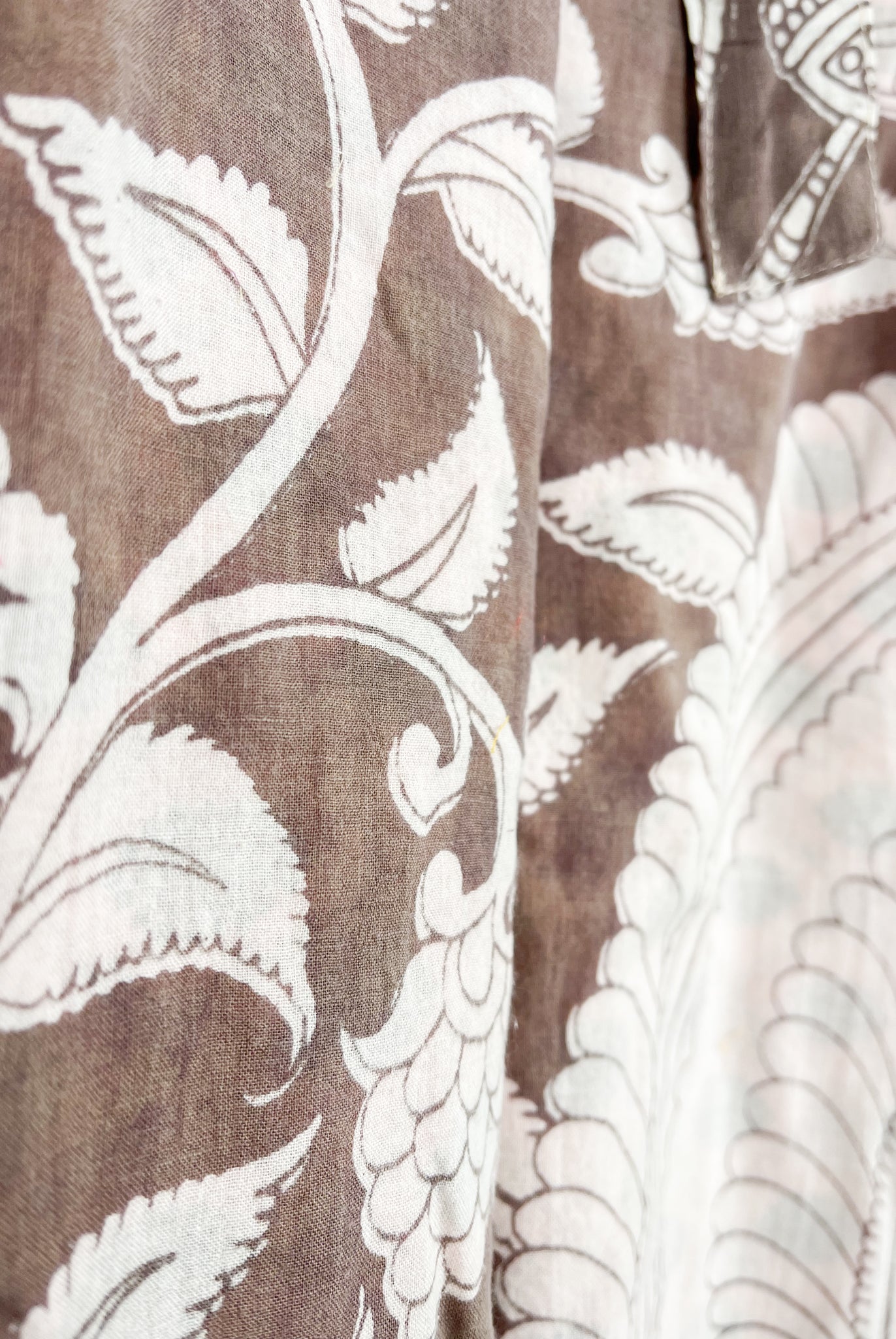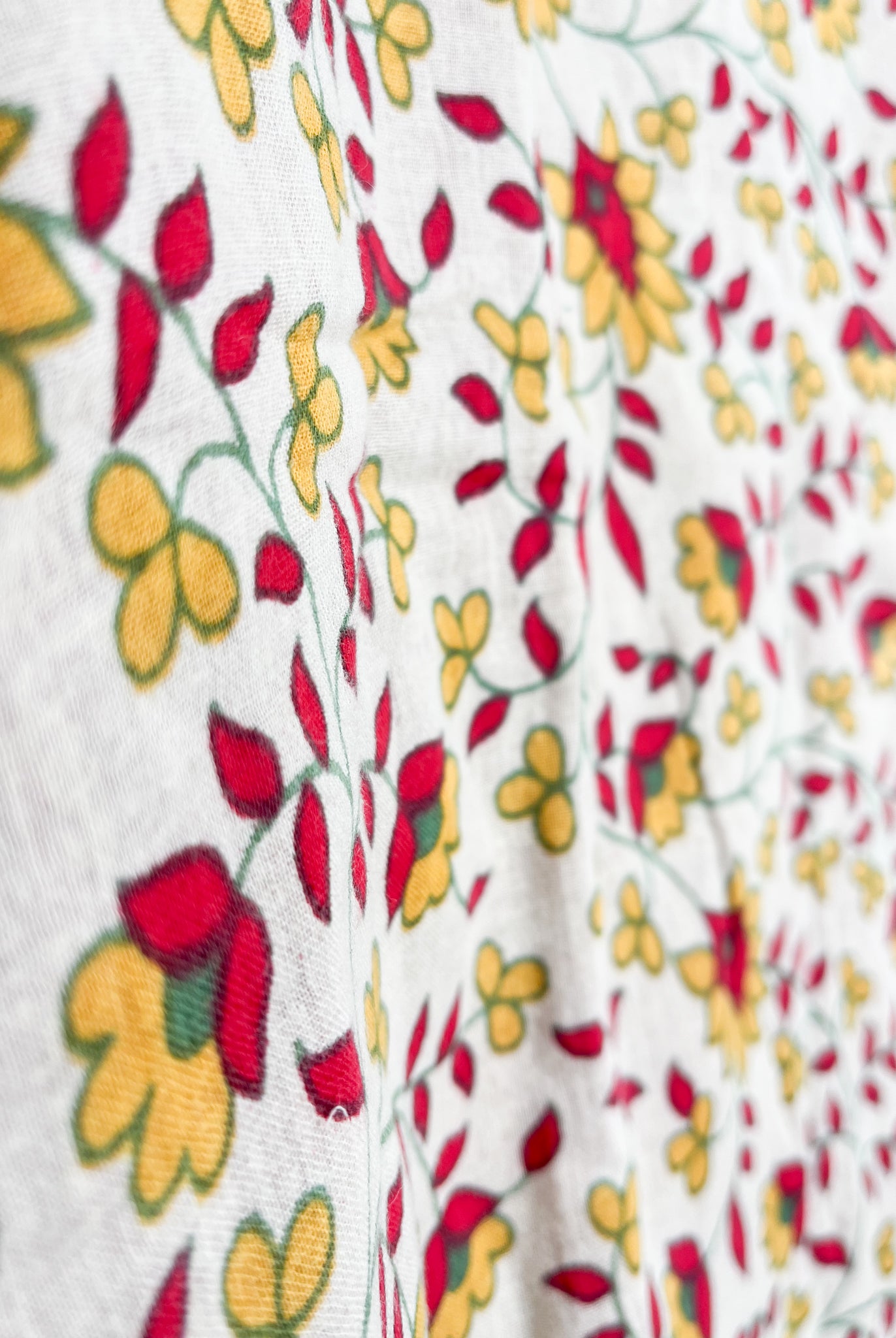 These unique reversible pants, crafted from vintage cotton sarees with vibrant traditional floral prints, offer two distinct looks. Their loose, flowing wide legs provide ultimate comfort and freedom, while an adjustable tie waistband ensures a perfect fit, making them a versatile addition for any occasion.