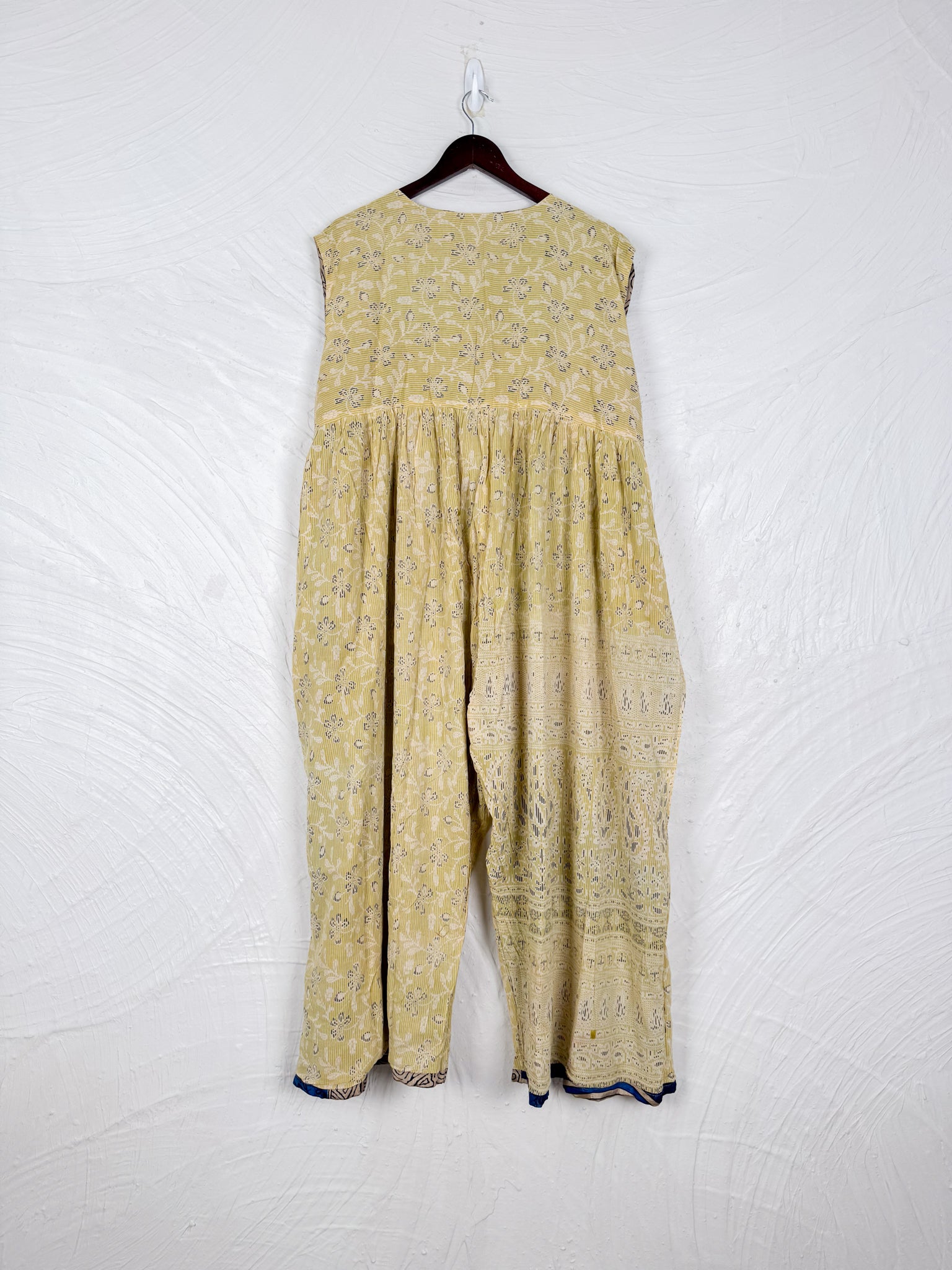 Silk + Cotton Reversible Design: The jumpsuit is designed to be worn on either side, offering two distinct looks with one side made from vintage cotton and other side from vintage silk