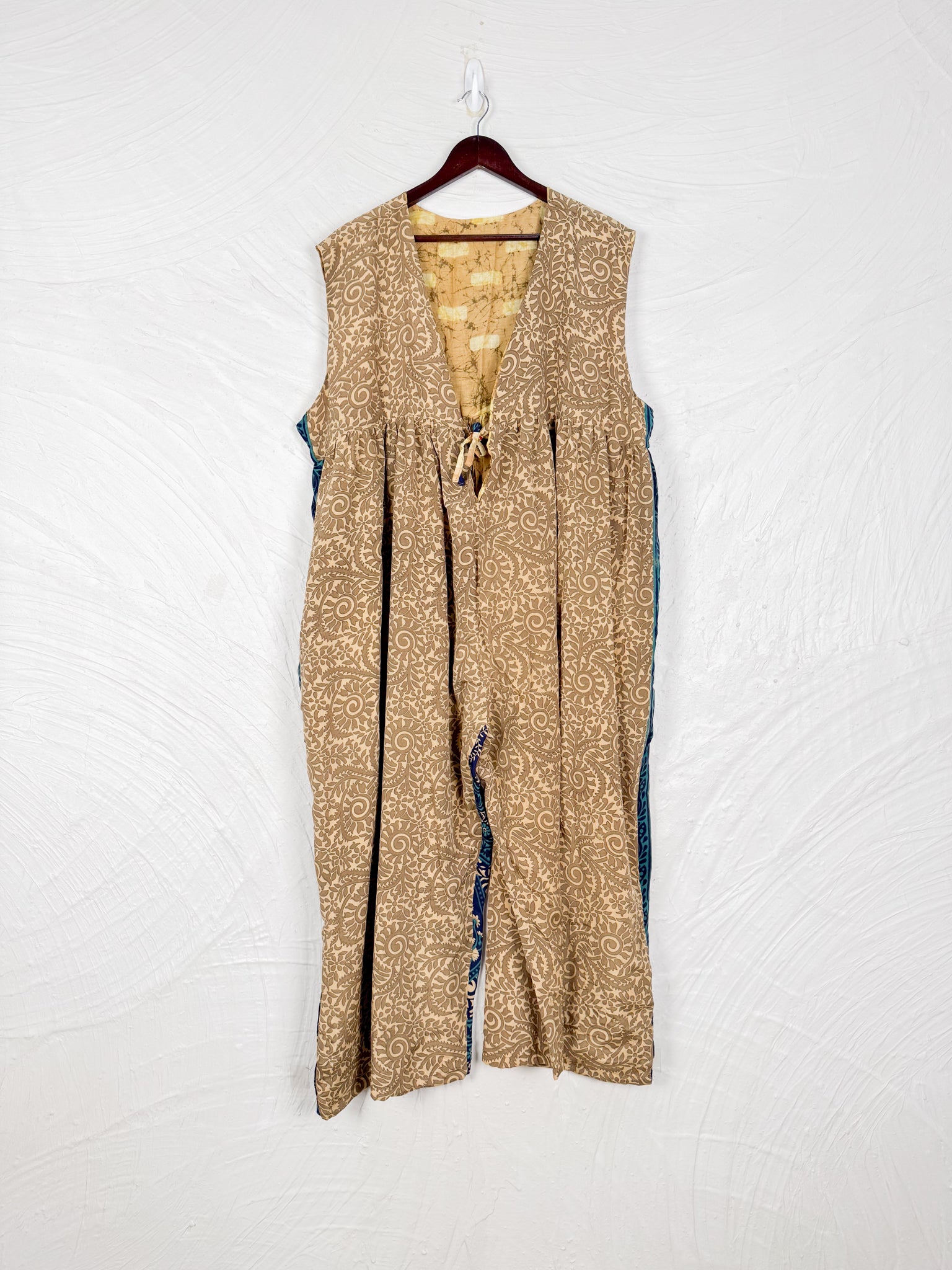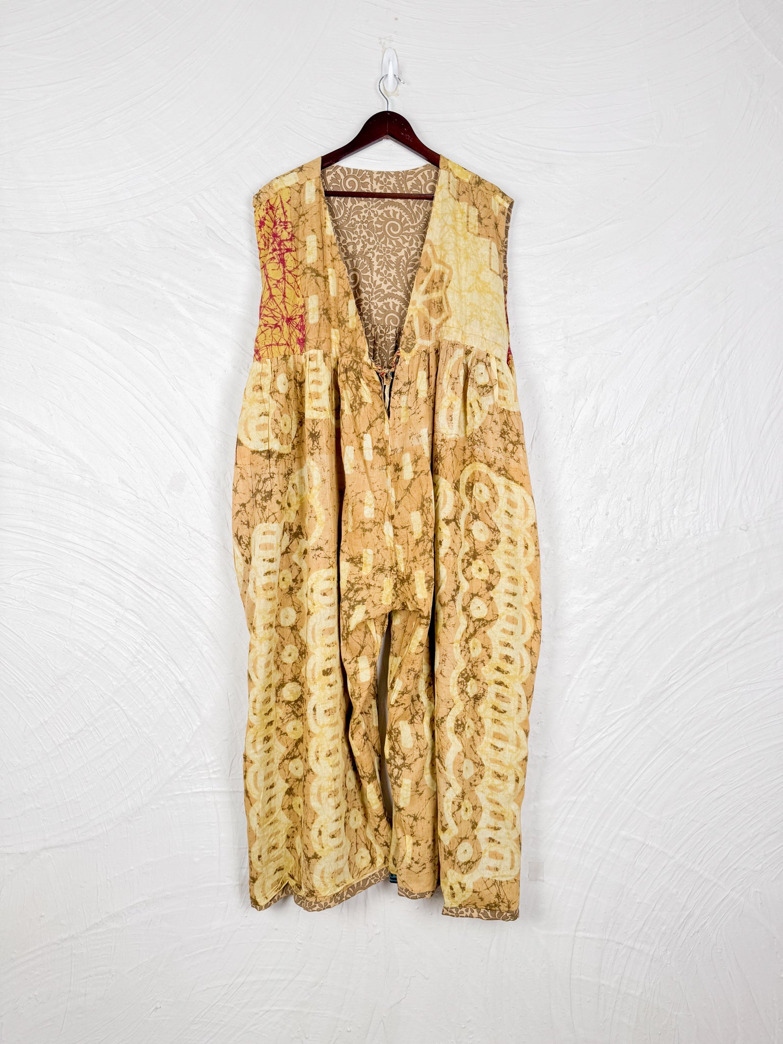 Silk + Cotton Reversible Design: The jumpsuit is designed to be worn on either side, offering two distinct looks with one side made from vintage cotton and other side from vintage silk