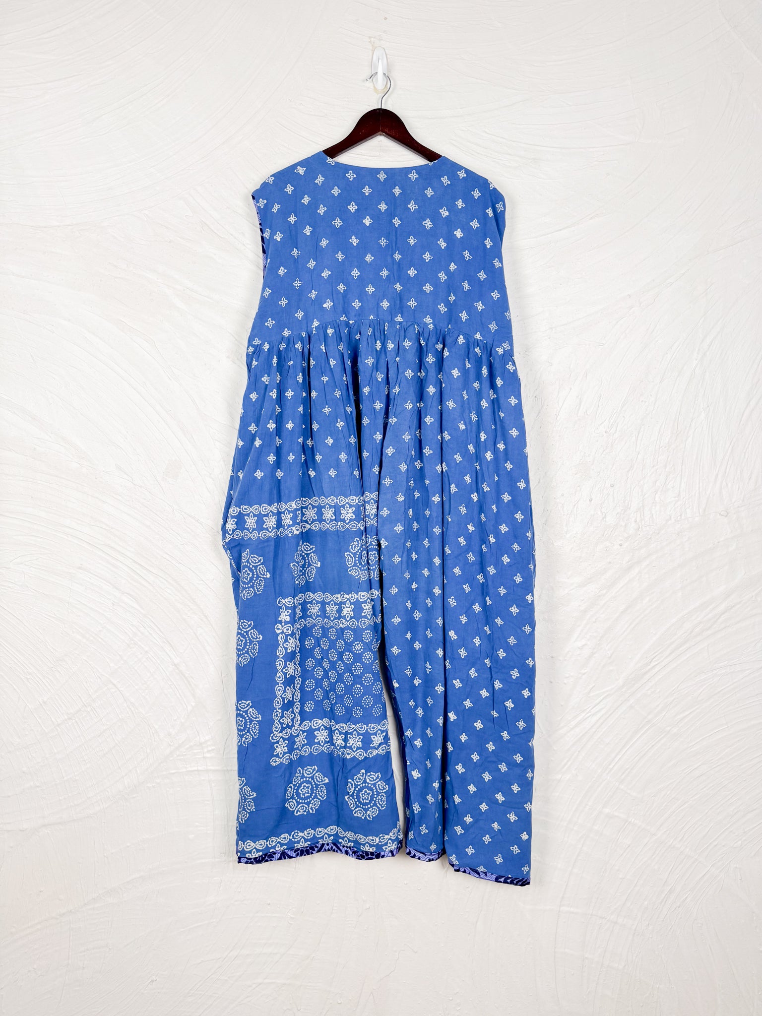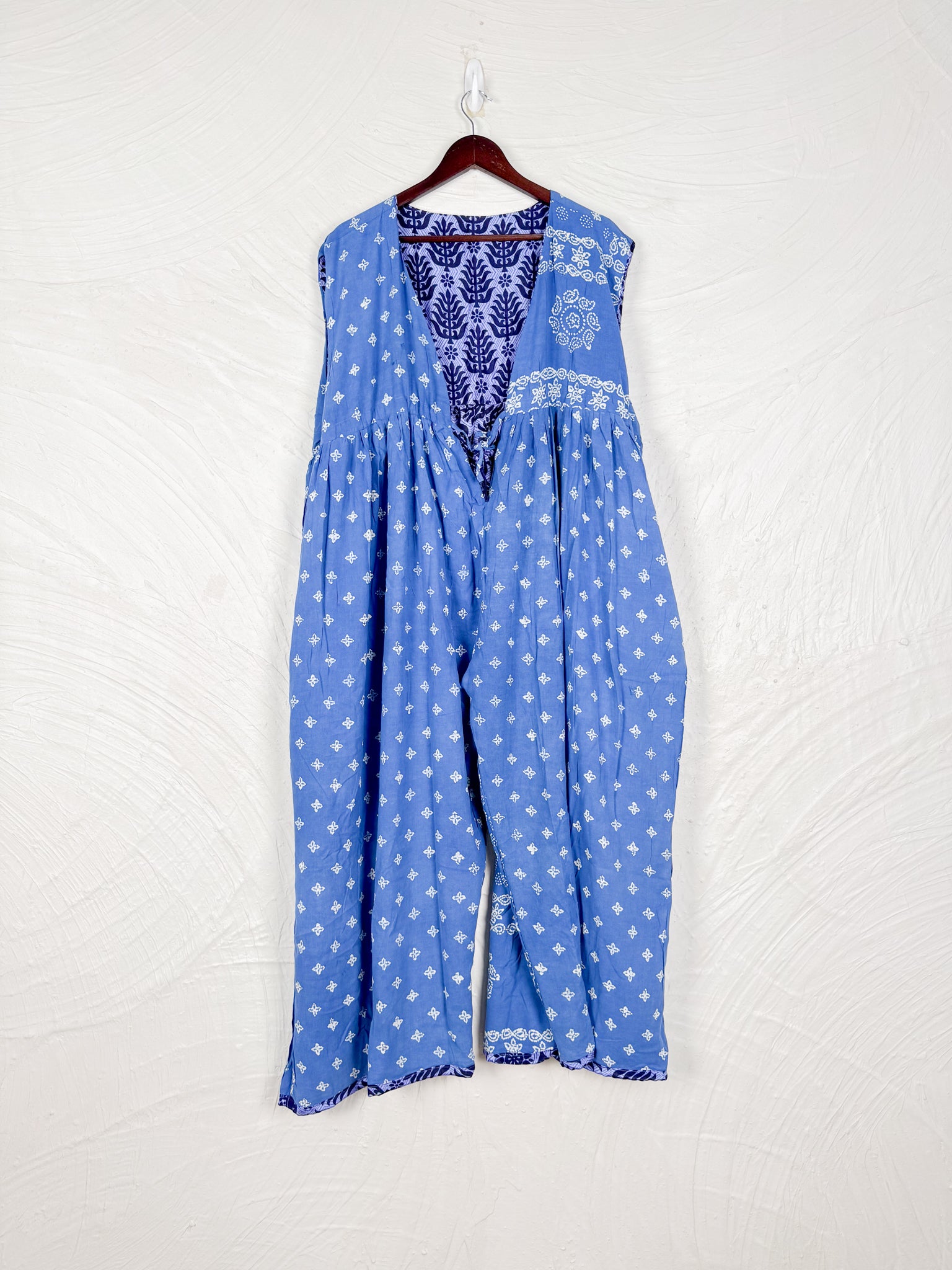 Silk + Cotton Reversible Design: The jumpsuit is designed to be worn on either side, offering two distinct looks with one side made from vintage cotton and other side from vintage silk