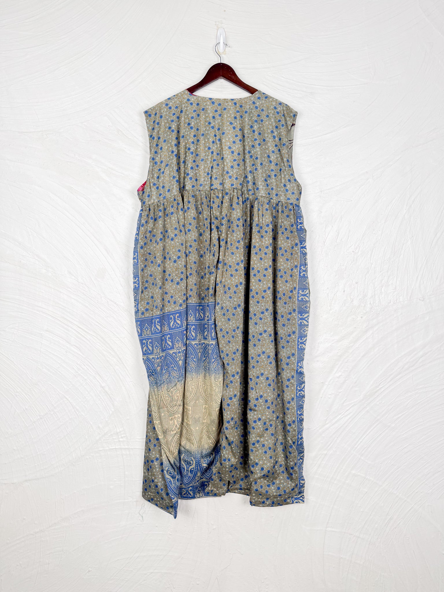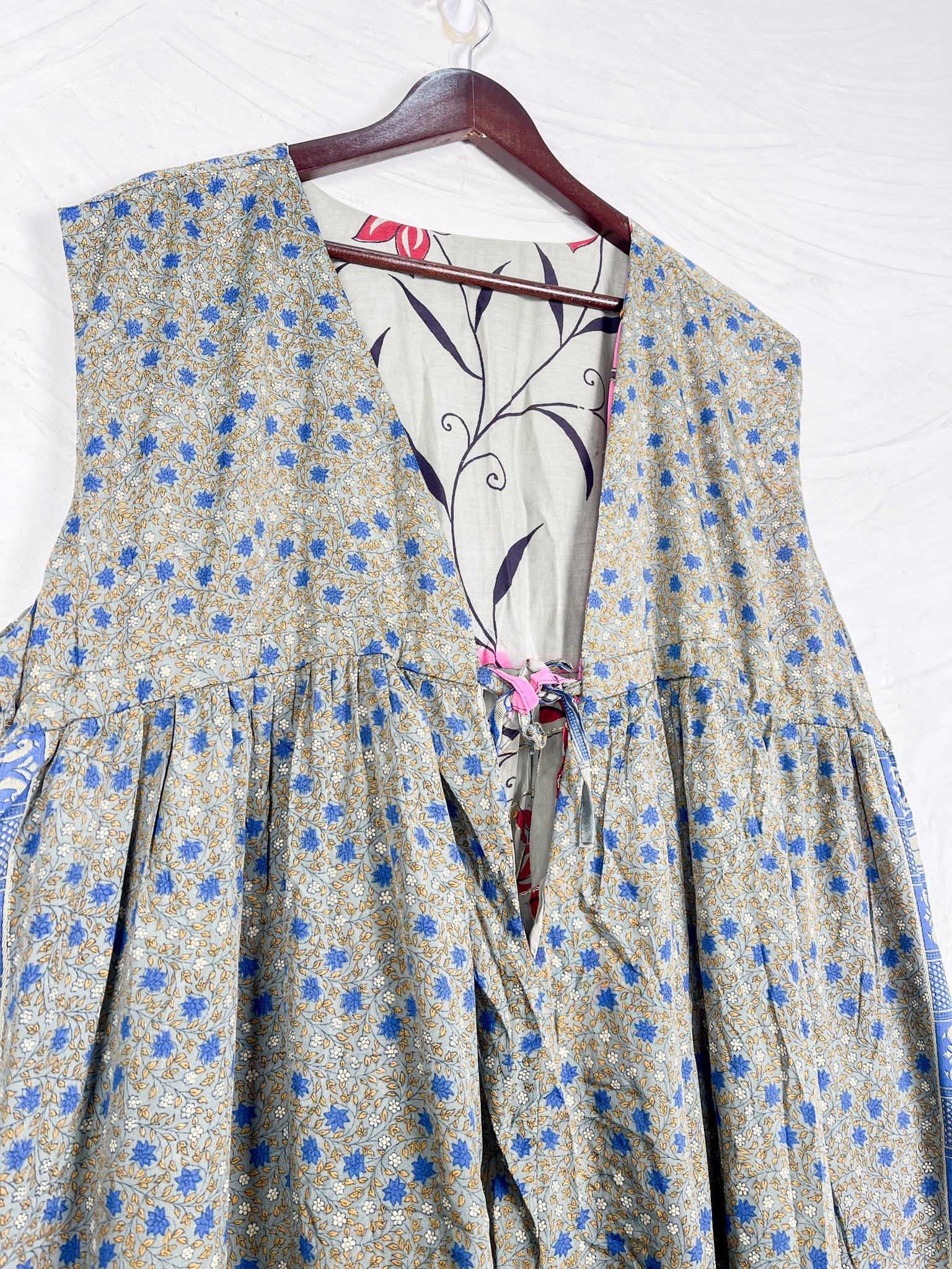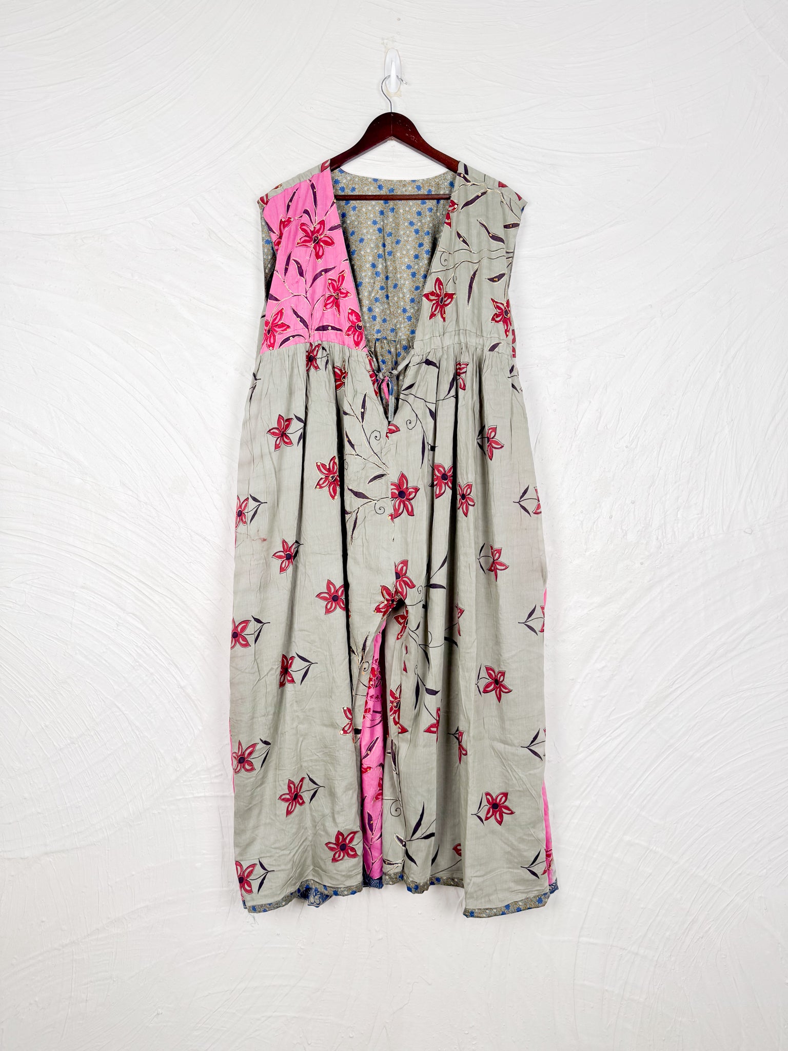 Step into a world of effortless style with this reversible dream of a jumpsuit! Imagine slipping into a single garment that offers two distinct personalities. One side whispers tales of vintage Indian sarees, where vibrant colors, intricate patterns, and the soft touch of recycled cotton create a truly unique, bohemian vibe. Flip it inside out, and you're embraced by the silken whisper of flowy silk, draping beautifully for an elegant and fluid silhouette.