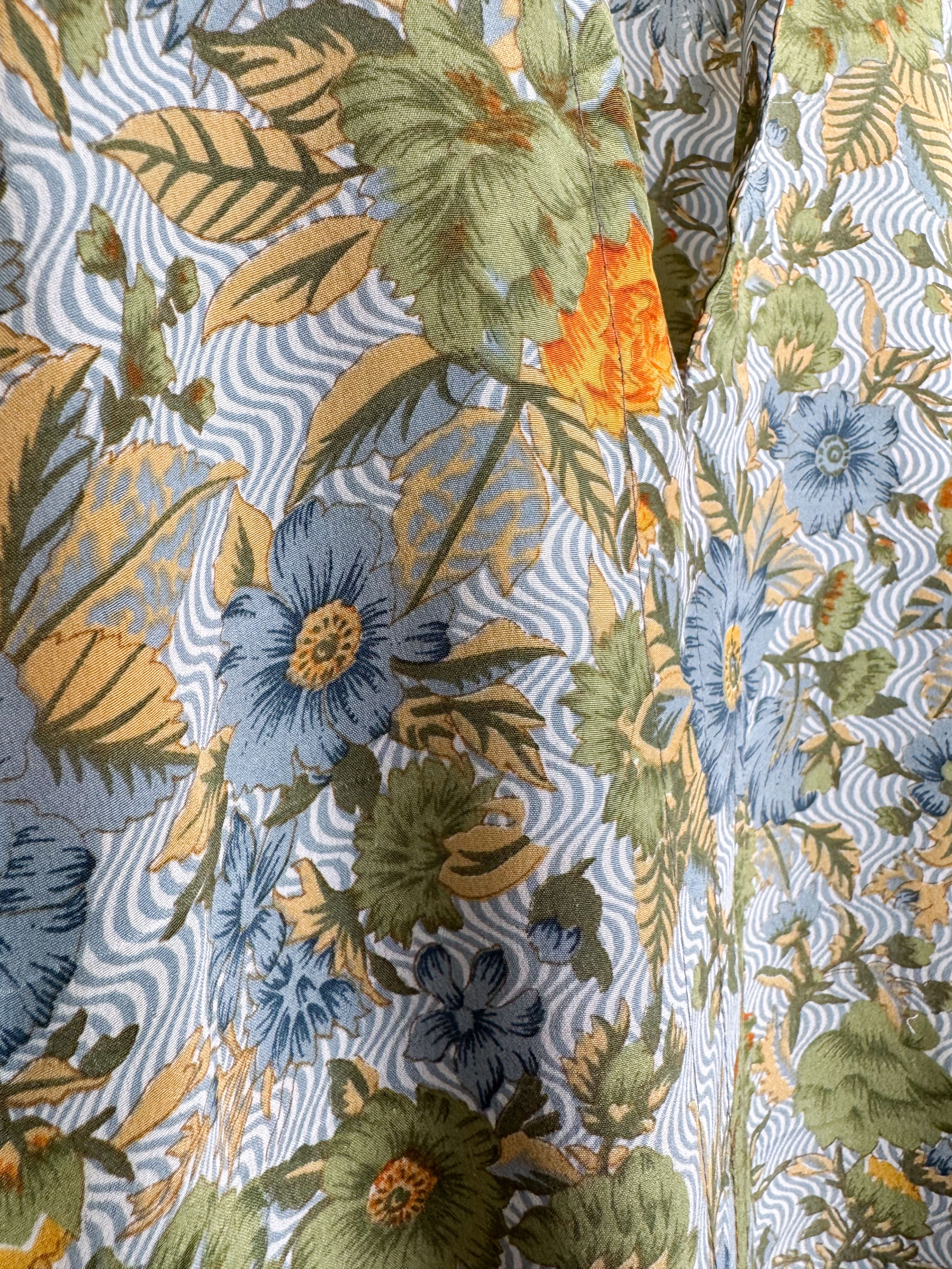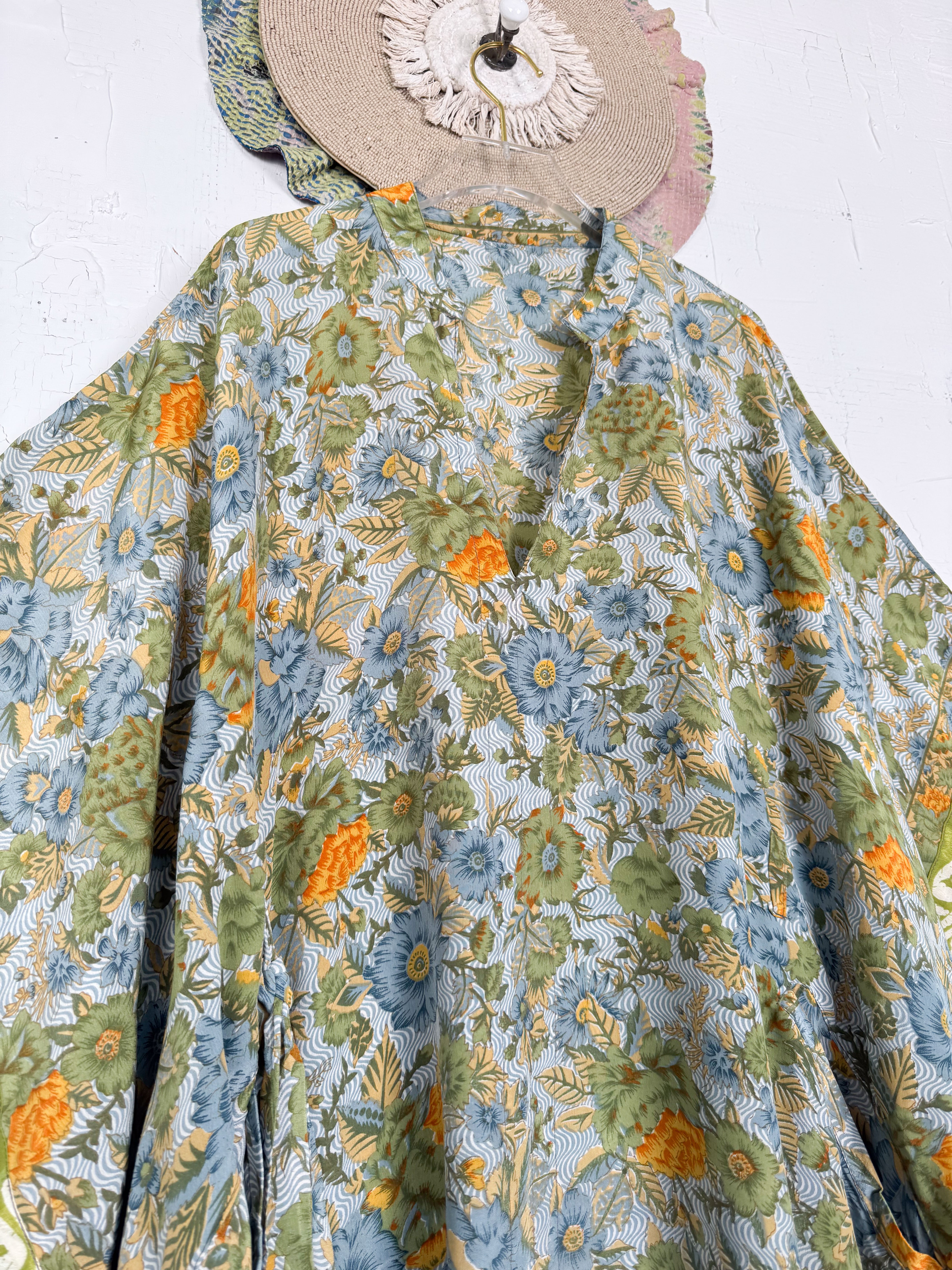 Feel the luxurious embrace of this flowy vintage silk kaftan, where a beautiful floral pattern whispers tales of timeless elegance. Perfect for casual outings or lazy afternoons, this kaftan transforms every moment into a comfort escape.