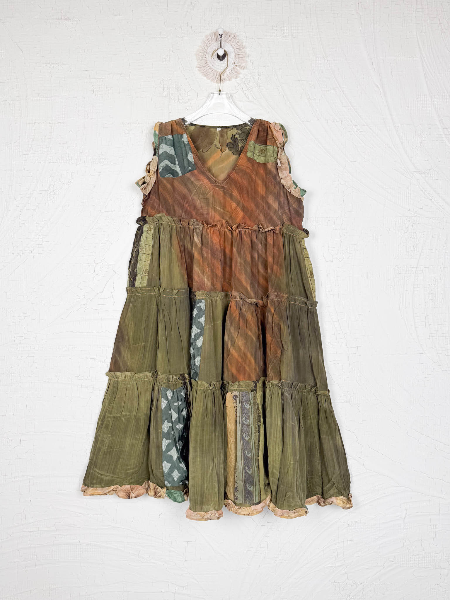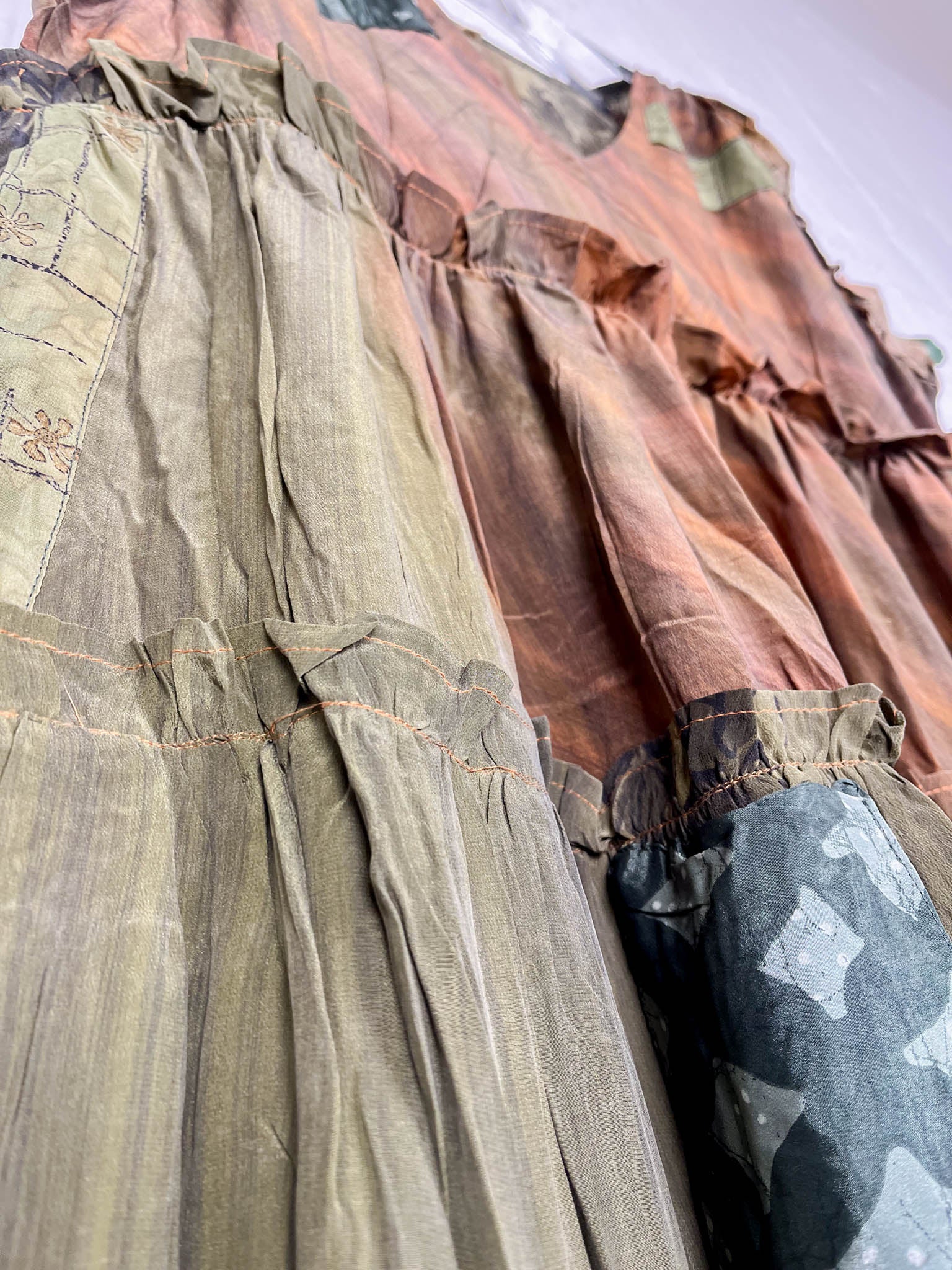 Handcrafted from Vintage Crepe Silk, every stitch and the flowy ruffle tells a story of craftsmanship, emotions and heritage!
