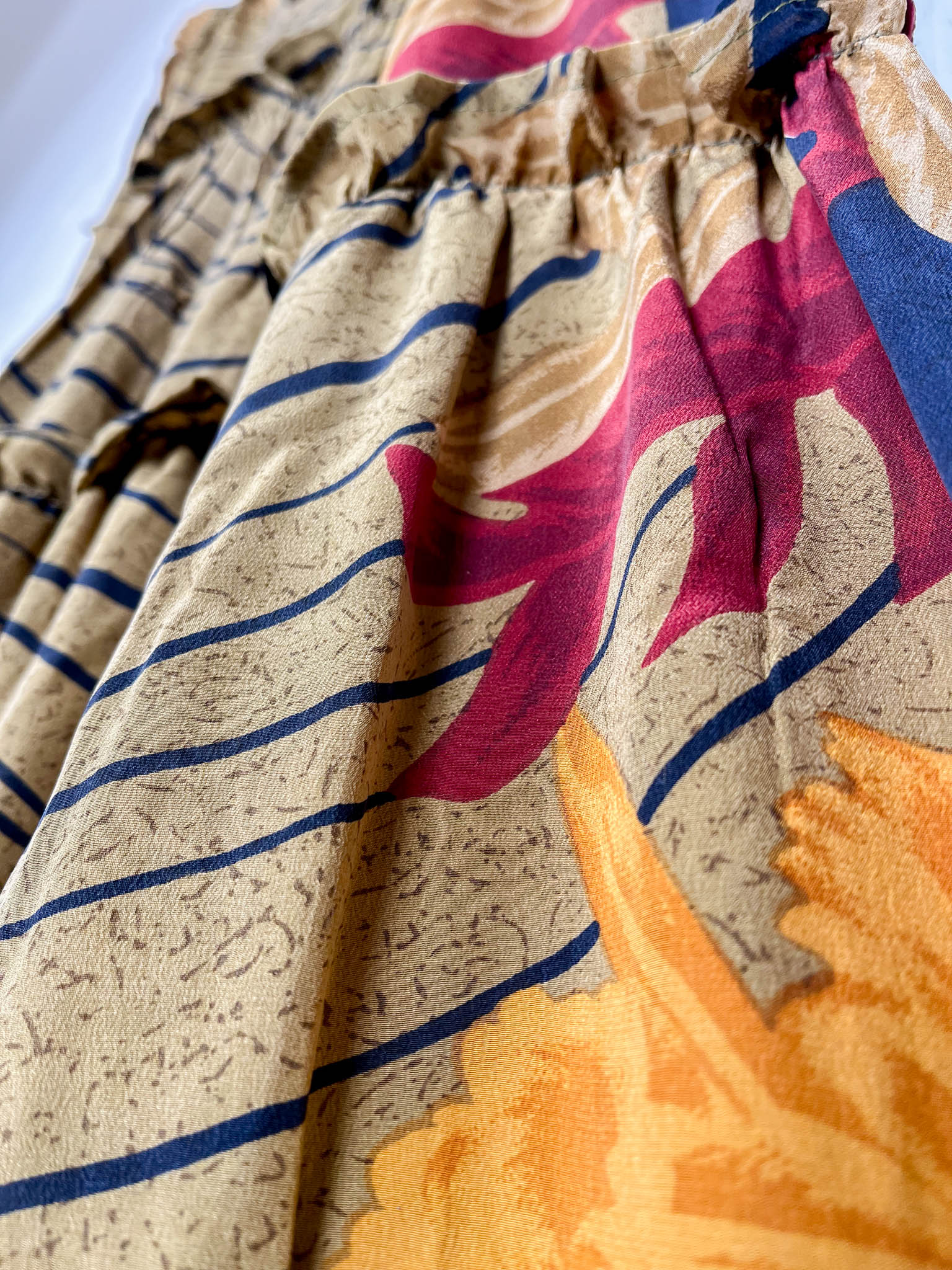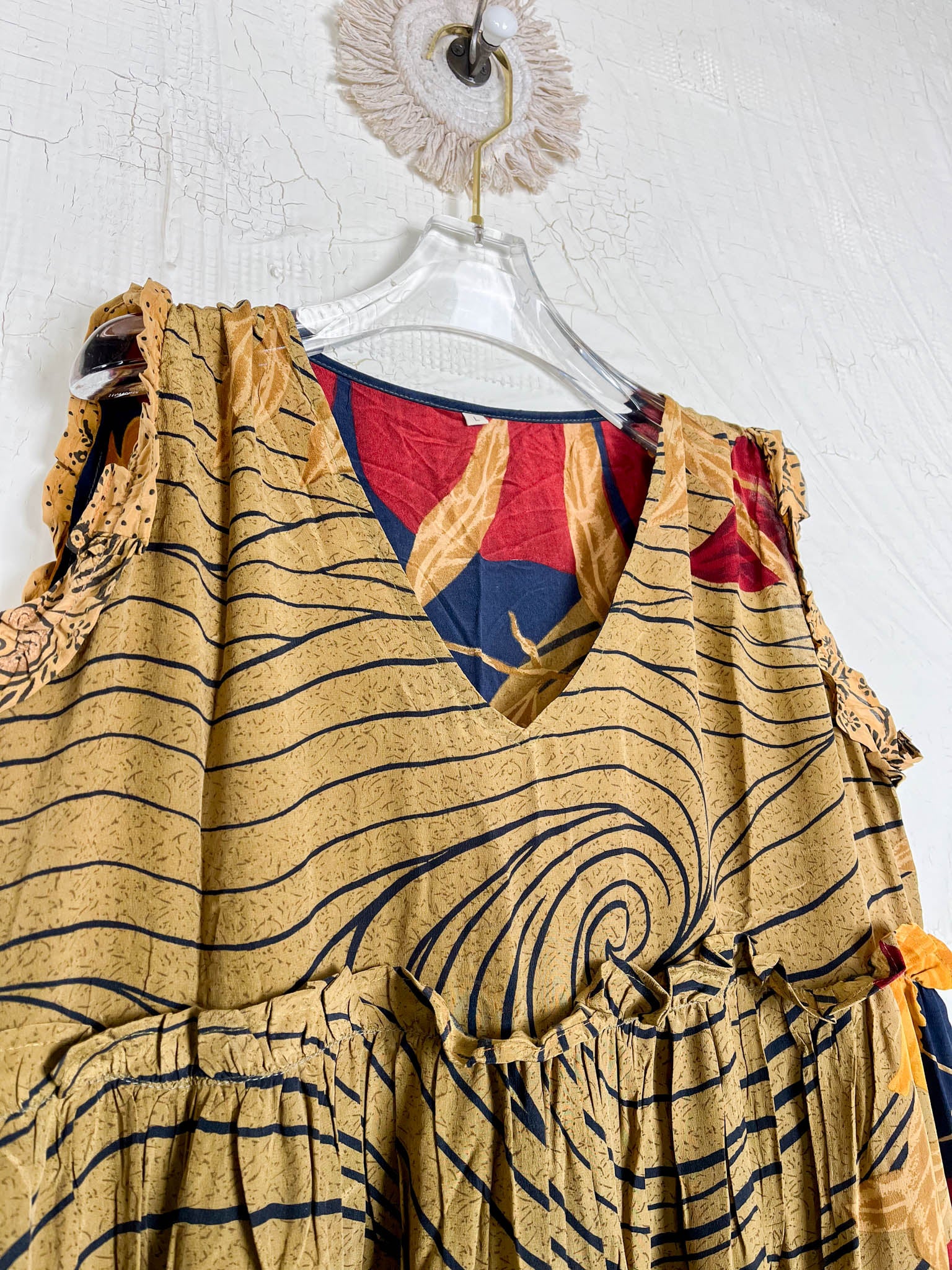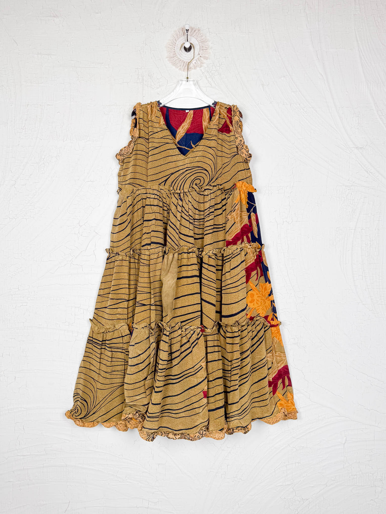 Handcrafted from Vintage Crepe Silk, every stitch and the flowy ruffle tells a story of craftsmanship, emotions and heritage!