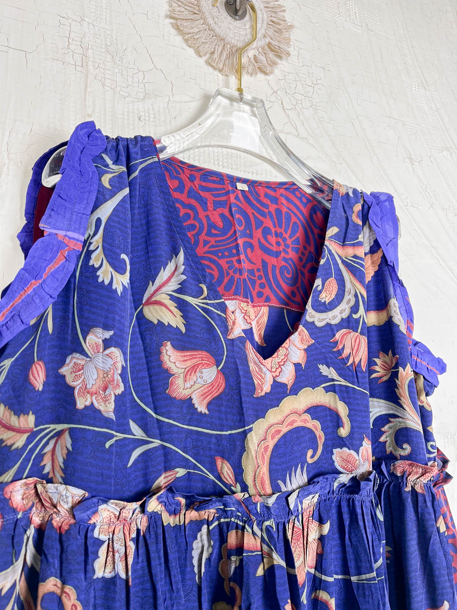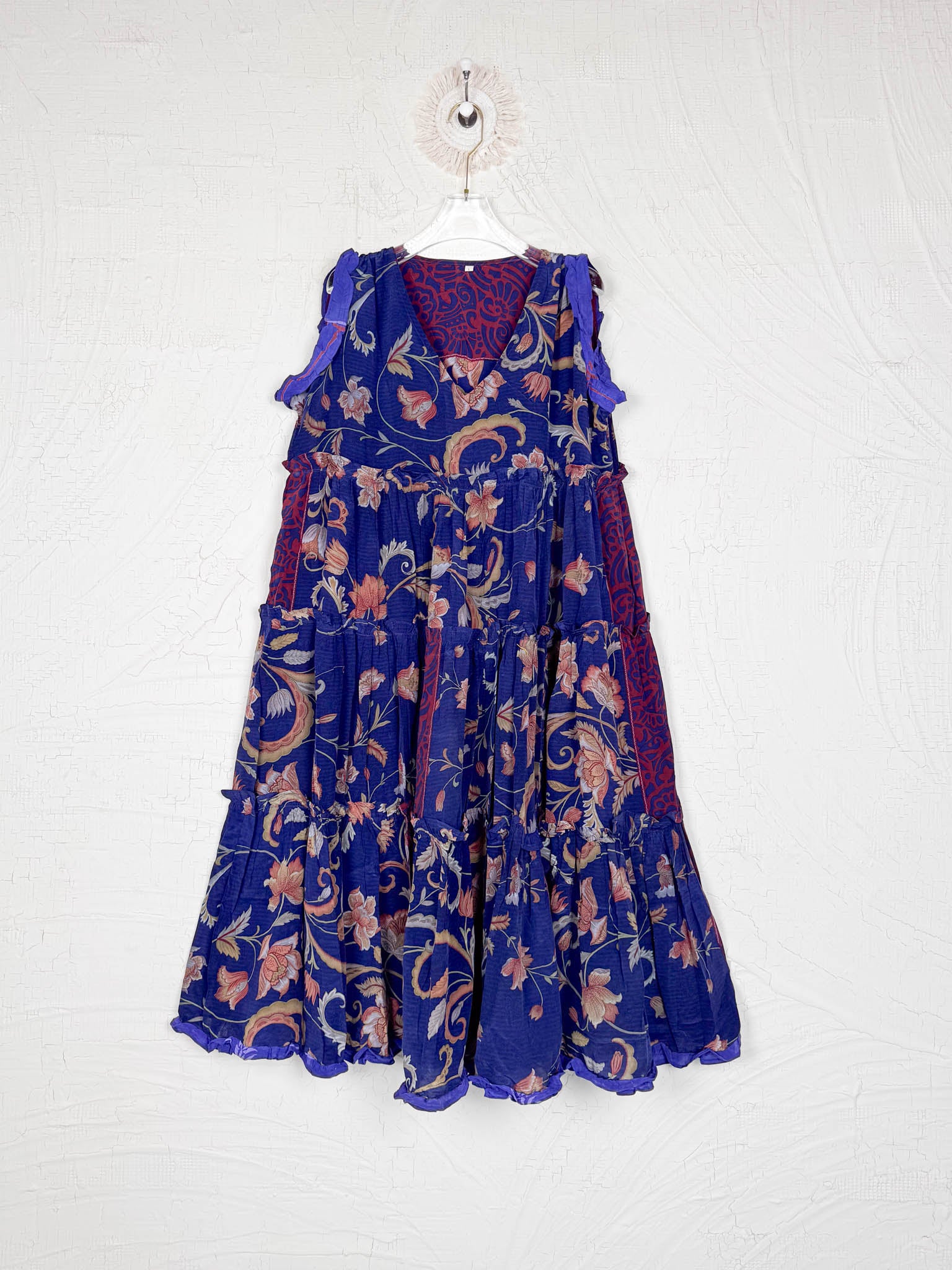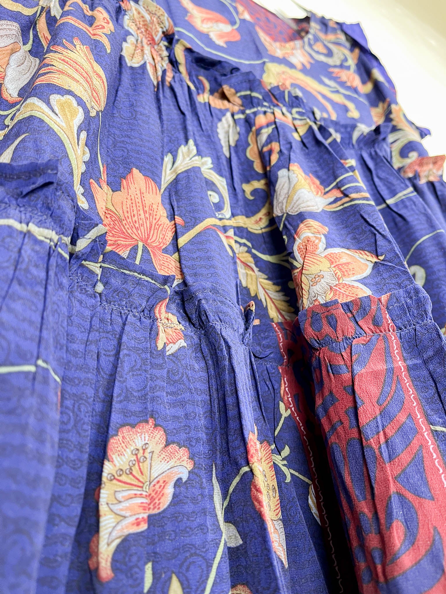 Handcrafted from Vintage Crepe Silk, every stitch and the flowy ruffle tells a story of craftsmanship, emotions and heritage!