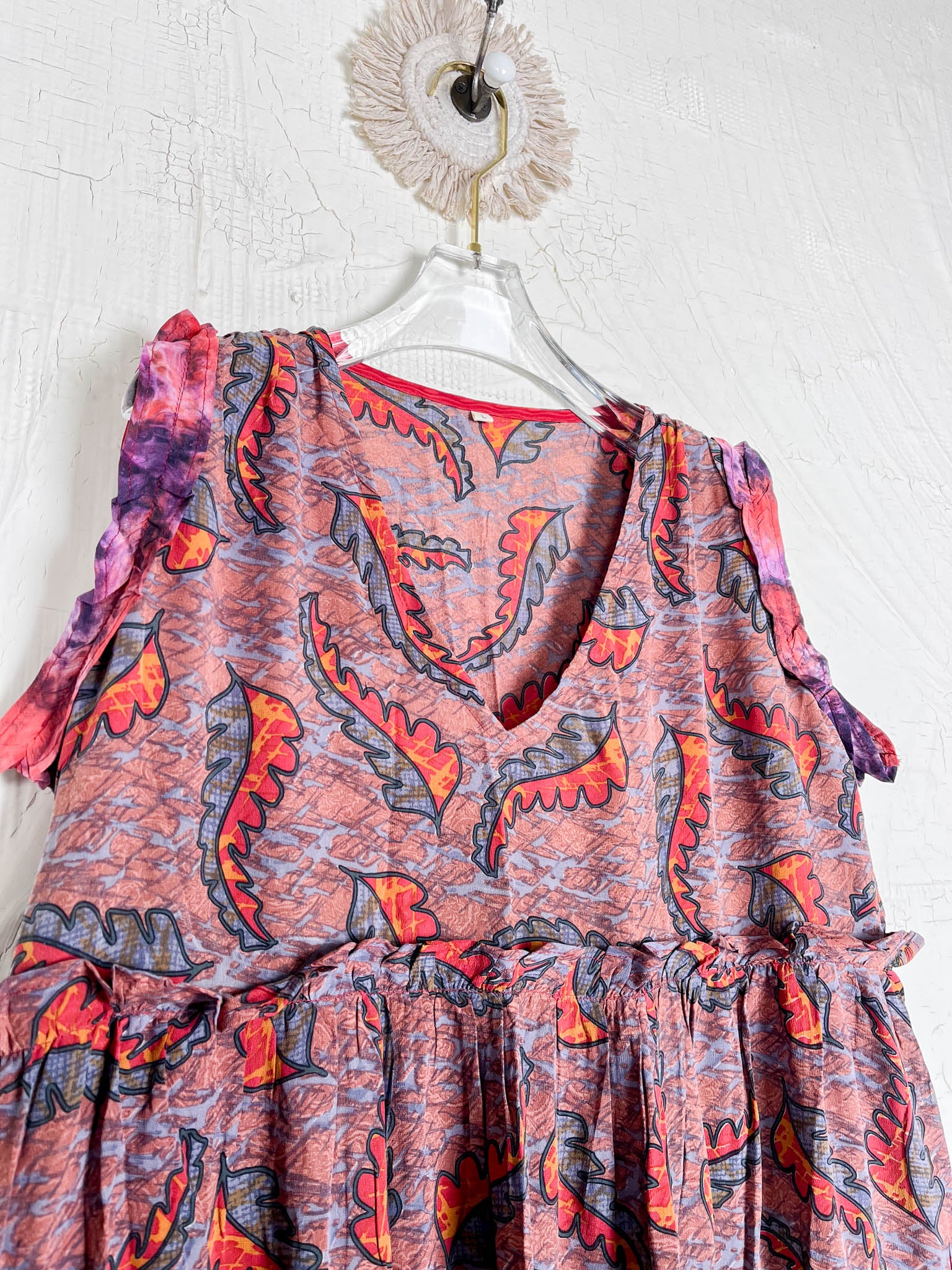 Handcrafted from Vintage Crepe Silk, every stitch and the flowy ruffle tells a story of craftsmanship, emotions and heritage!