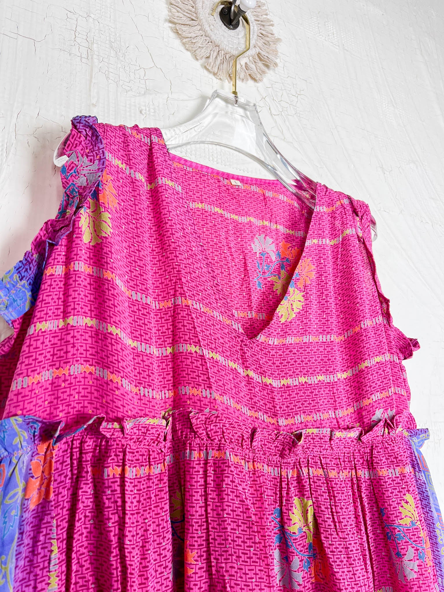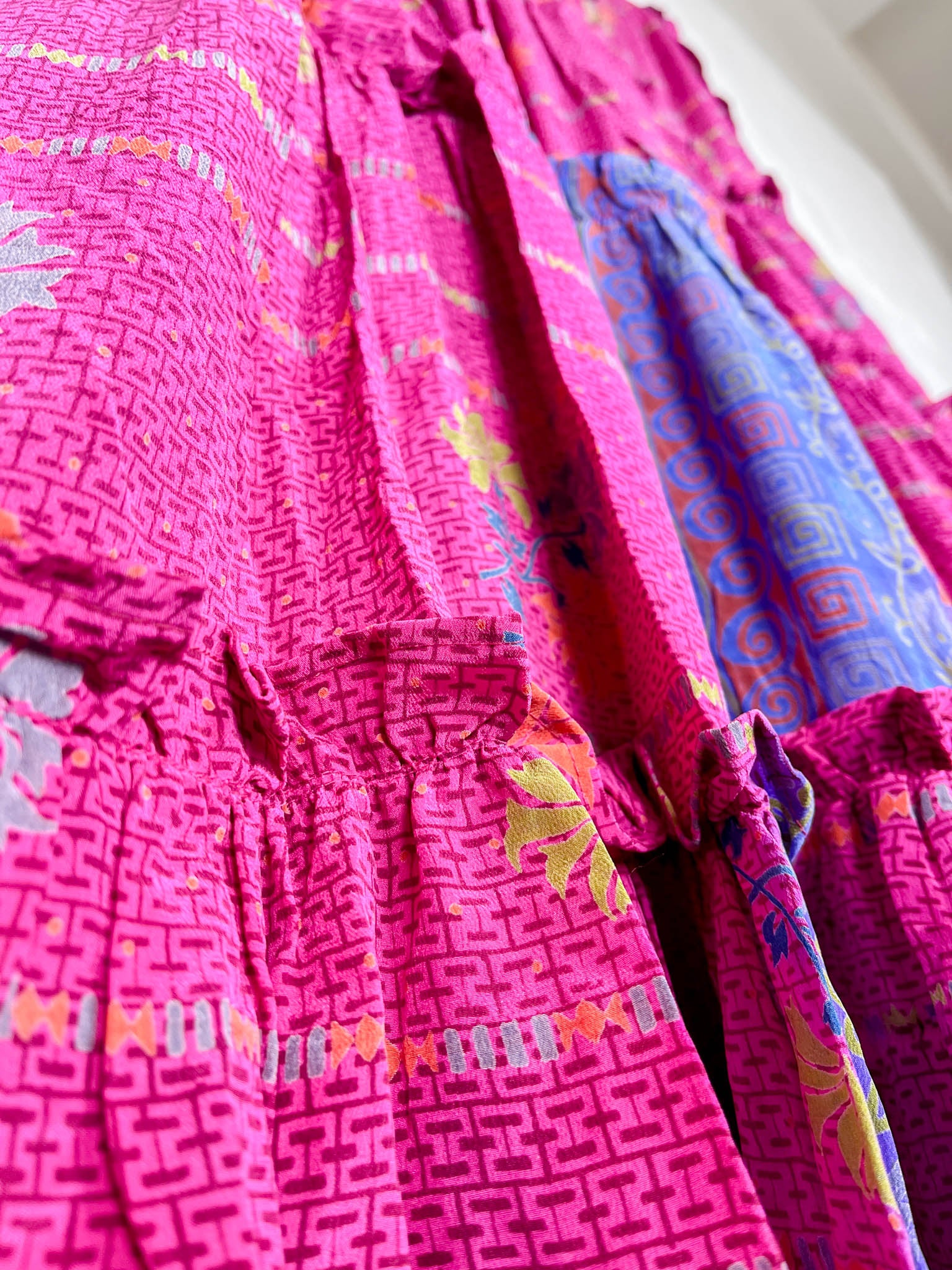 Handcrafted from Vintage Crepe Silk, every stitch and the flowy ruffle tells a story of craftsmanship, emotions and heritage!