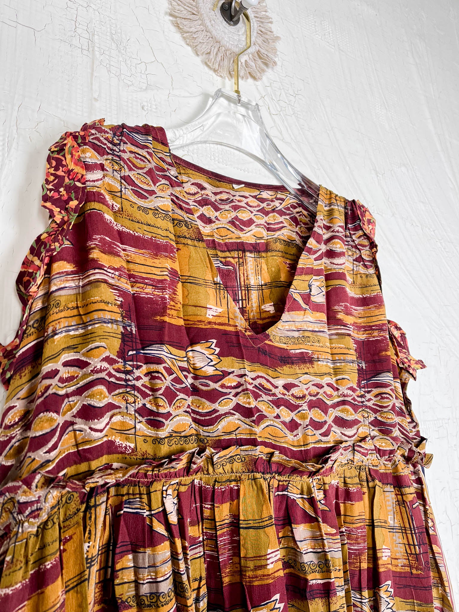 Handcrafted from Vintage Crepe Silk, every stitch and the flowy ruffle tells a story of craftsmanship, emotions and heritage!