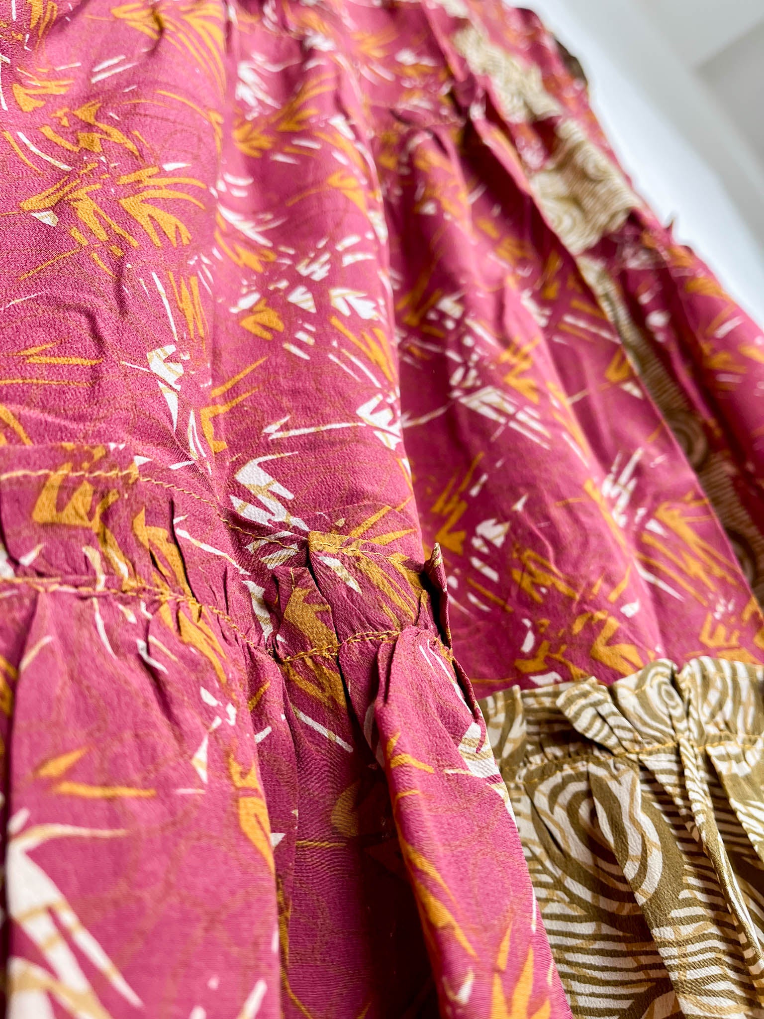 Handcrafted from Vintage Crepe Silk, every stitch and the flowy ruffle tells a story of craftsmanship, emotions and heritage!