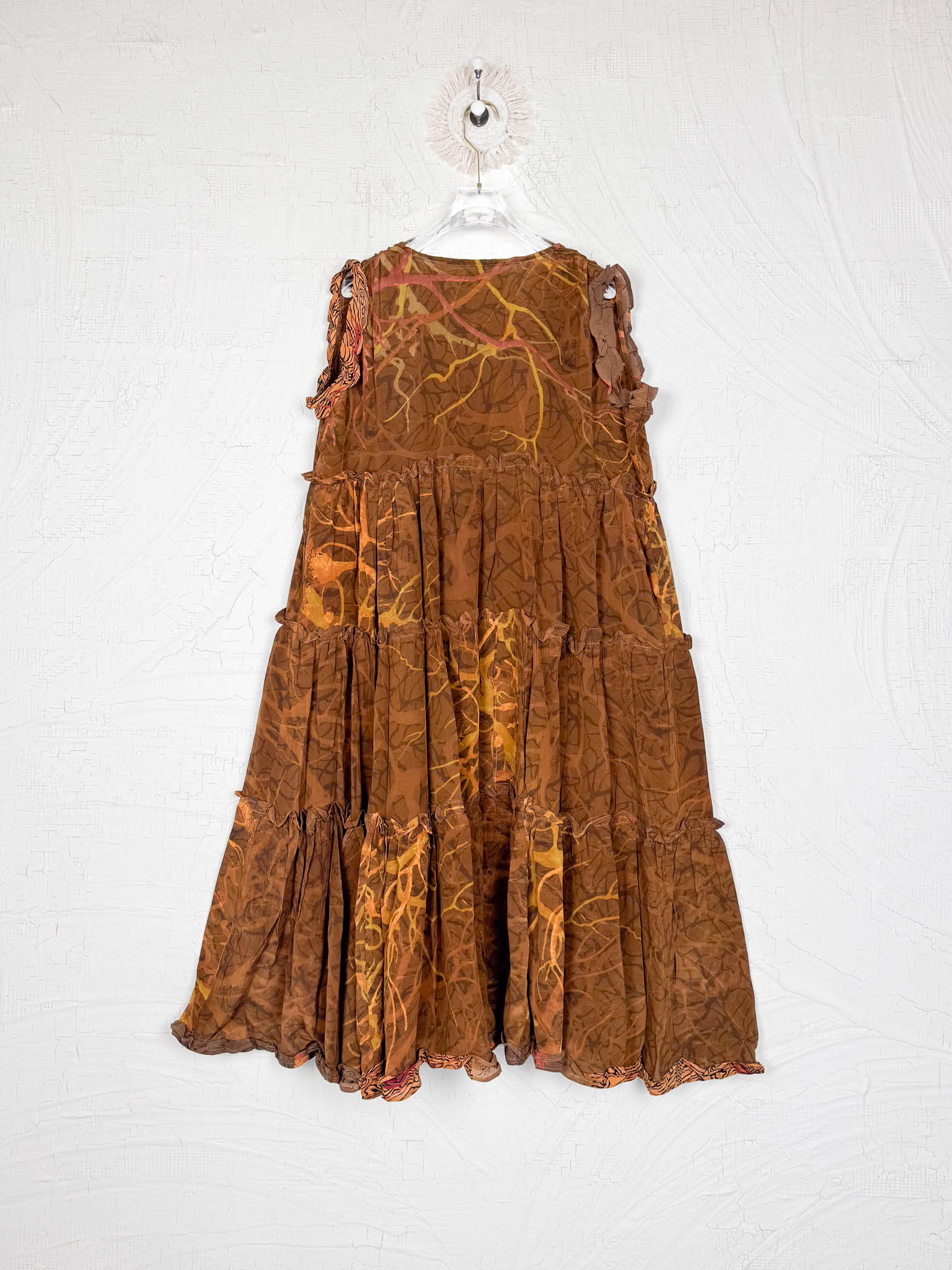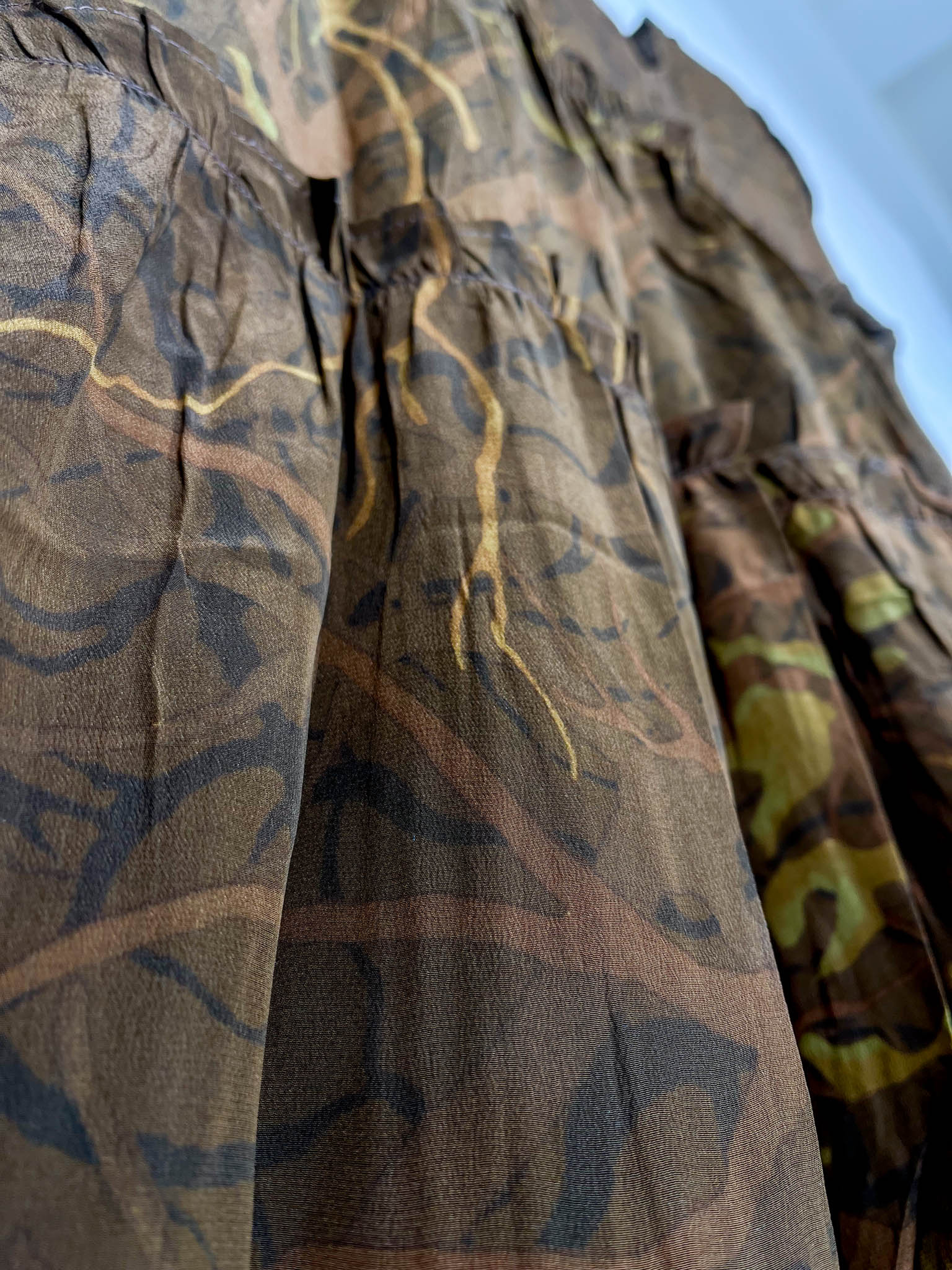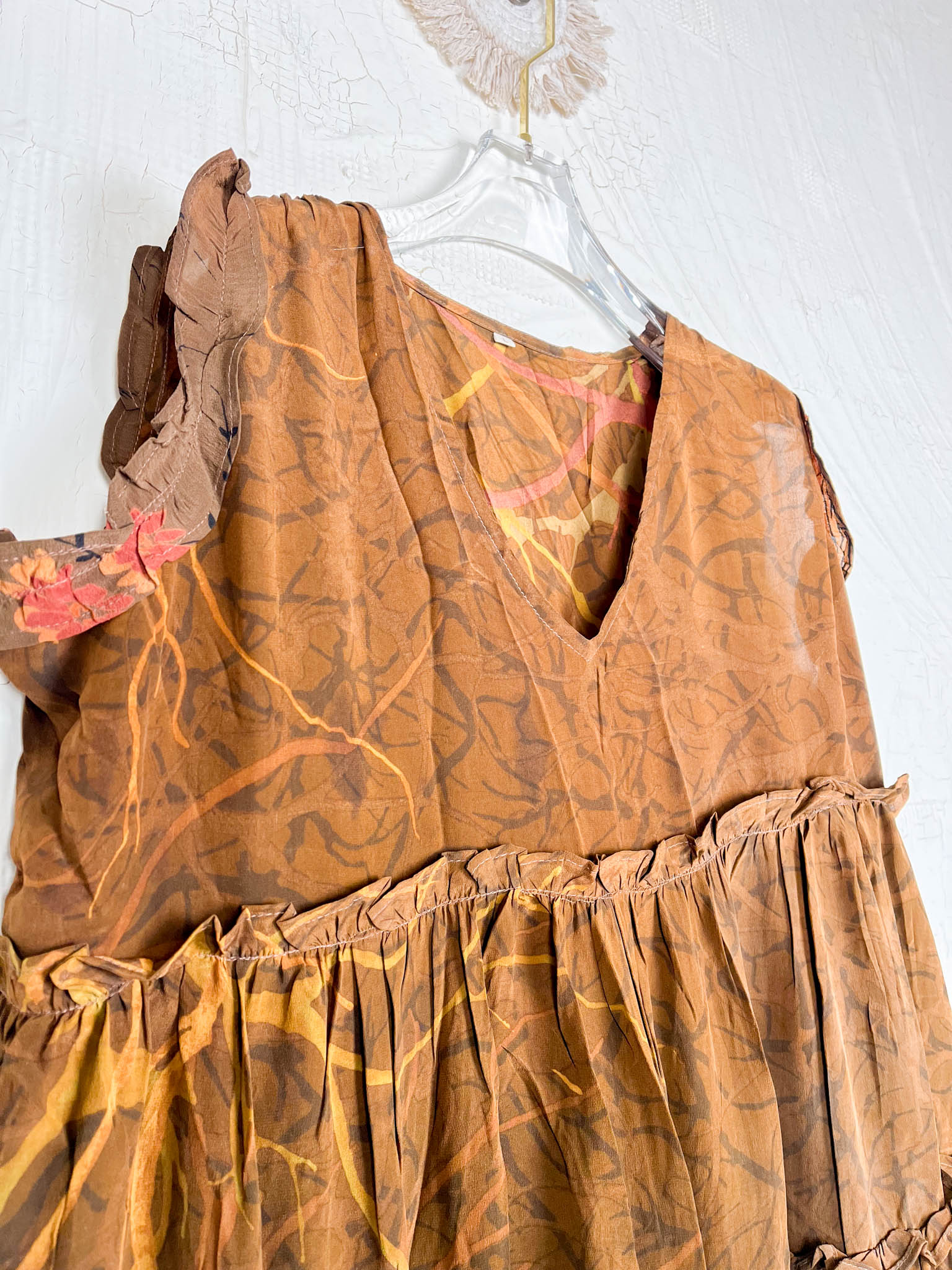 Handcrafted from Vintage Crepe Silk, every stitch and the flowy ruffle tells a story of craftsmanship, emotions and heritage!