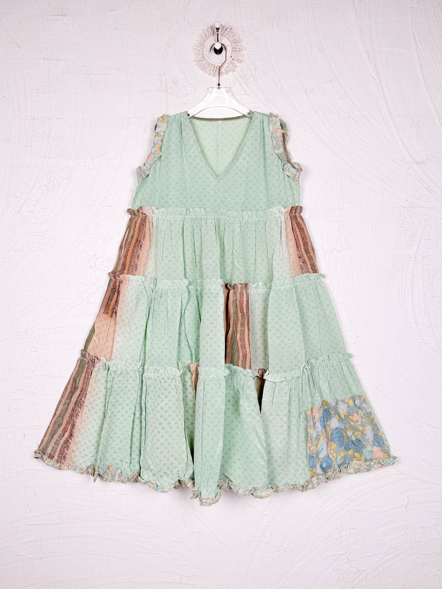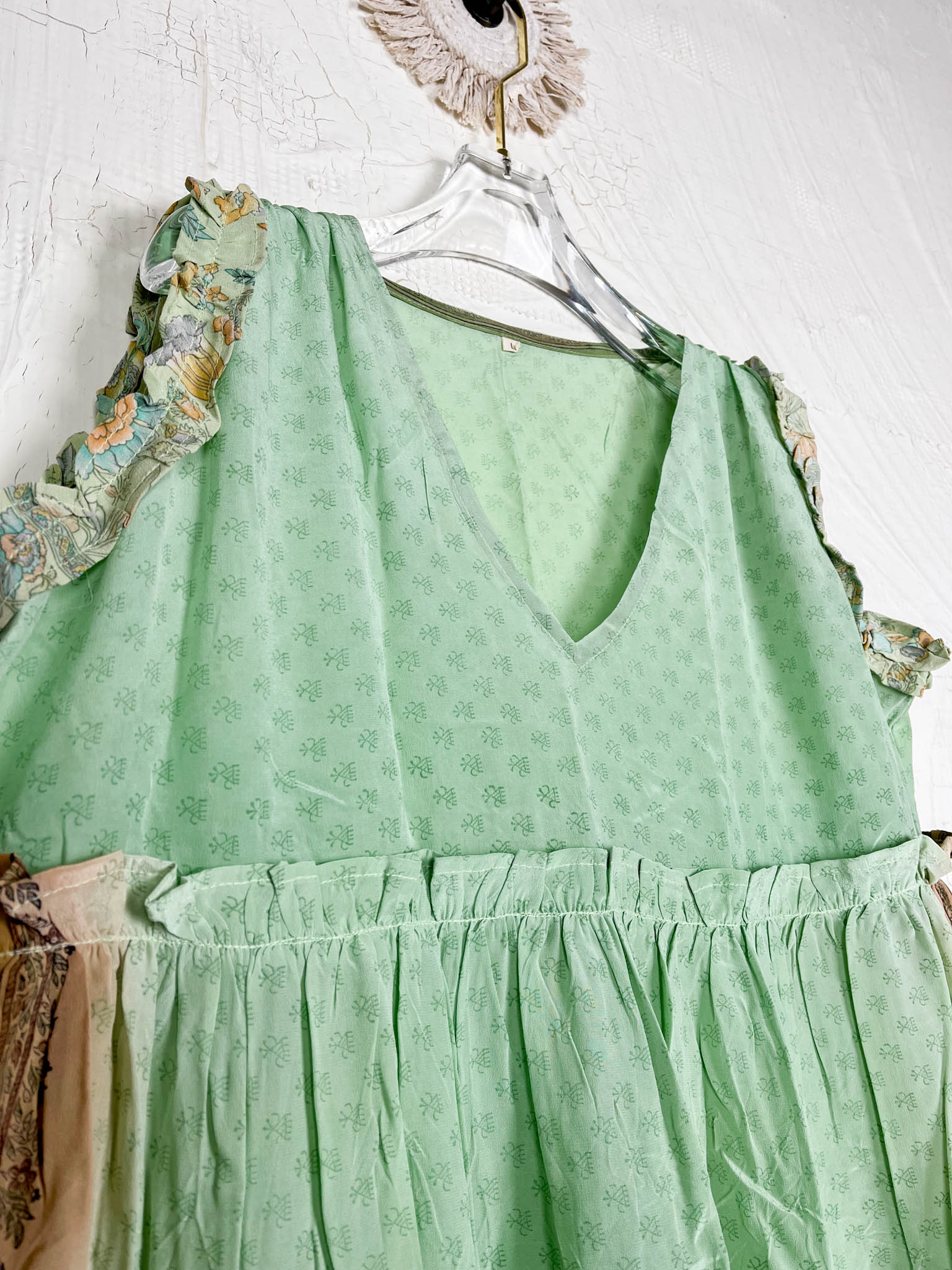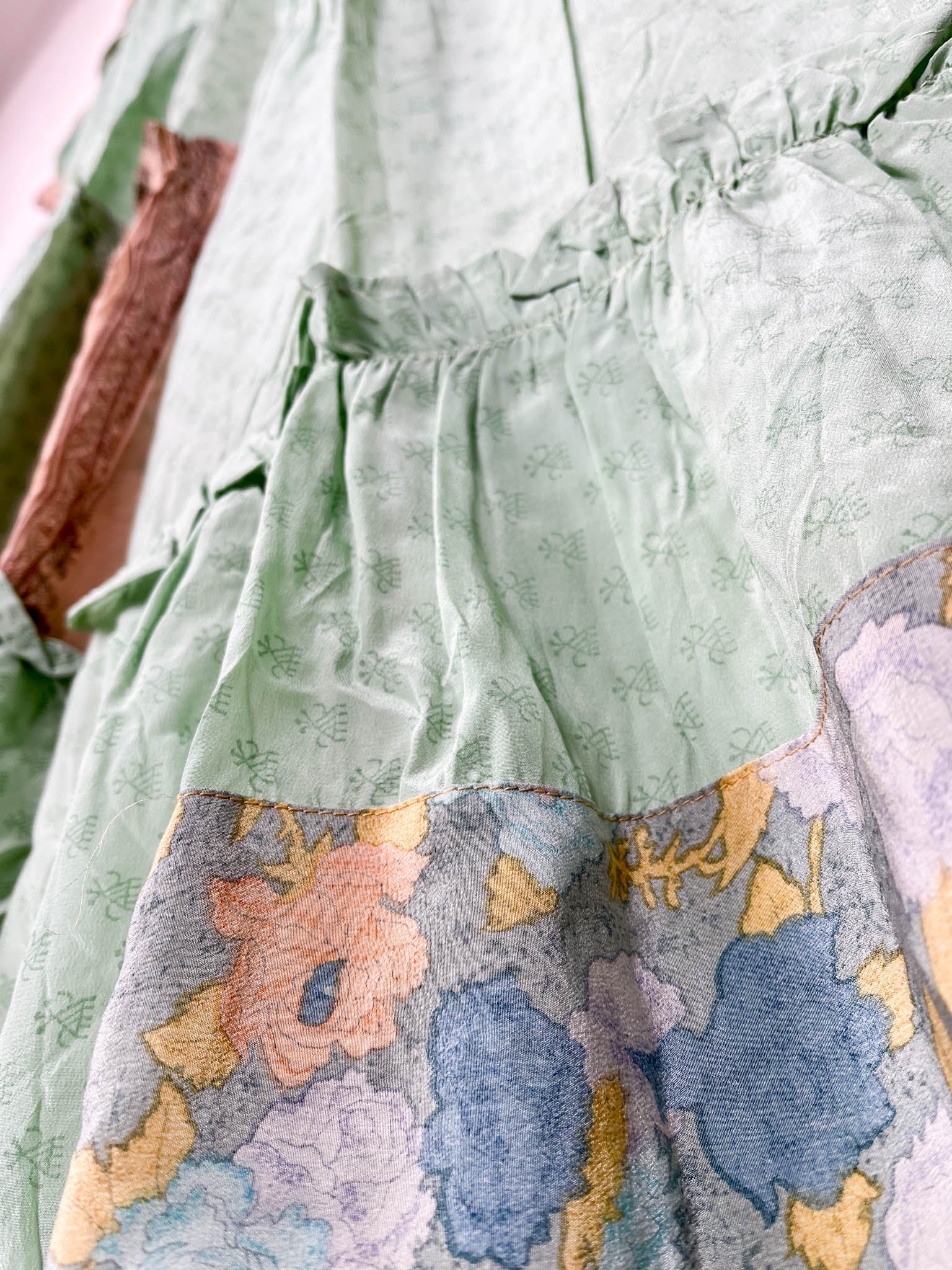 Handcrafted from Vintage Crepe Silk, every stitch and the flowy ruffle tells a story of craftsmanship, emotions and heritage!