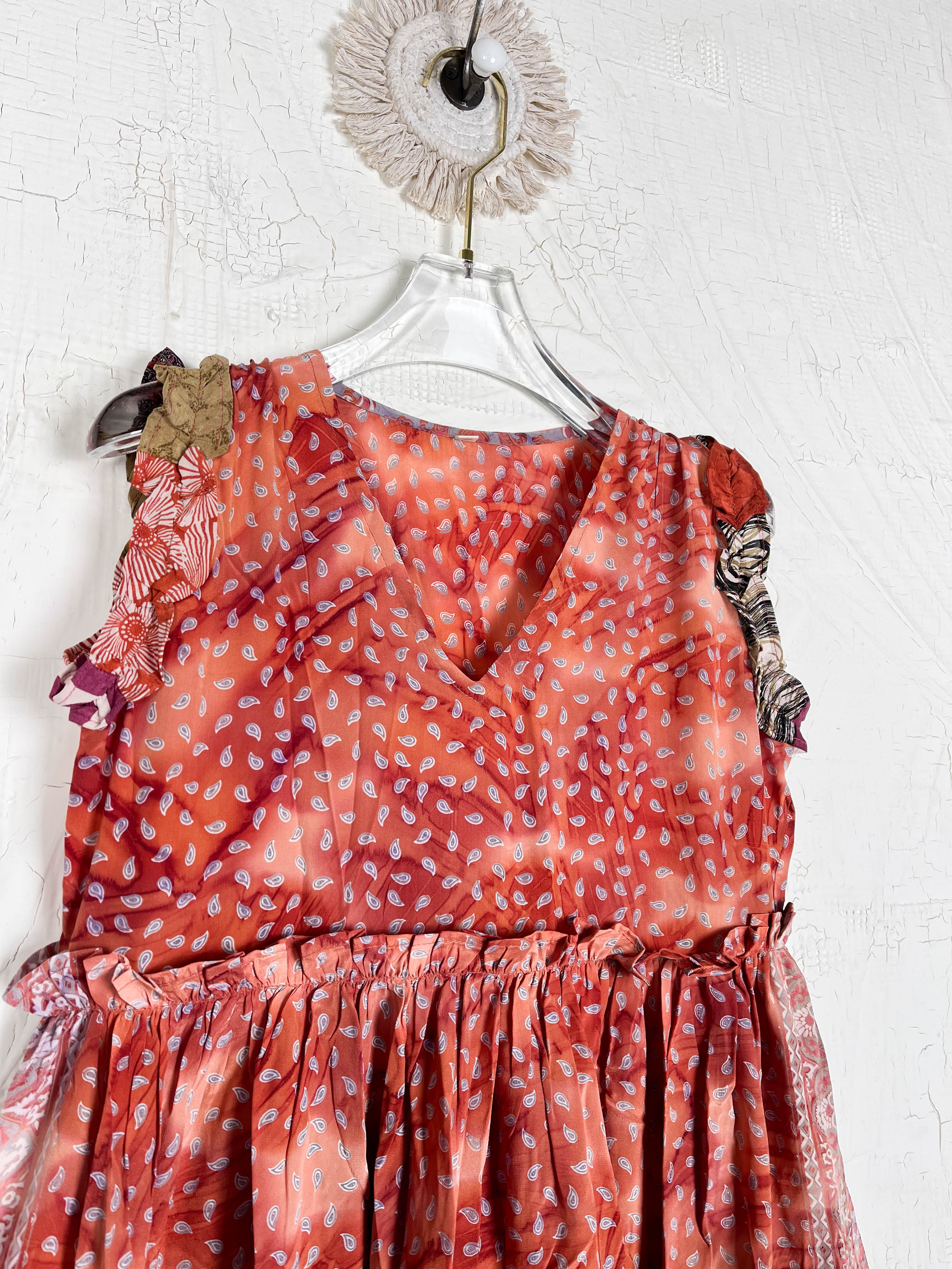 Handcrafted from Vintage Crepe Silk, every stitch and the flowy ruffle tells a story of craftsmanship, emotions and heritage!