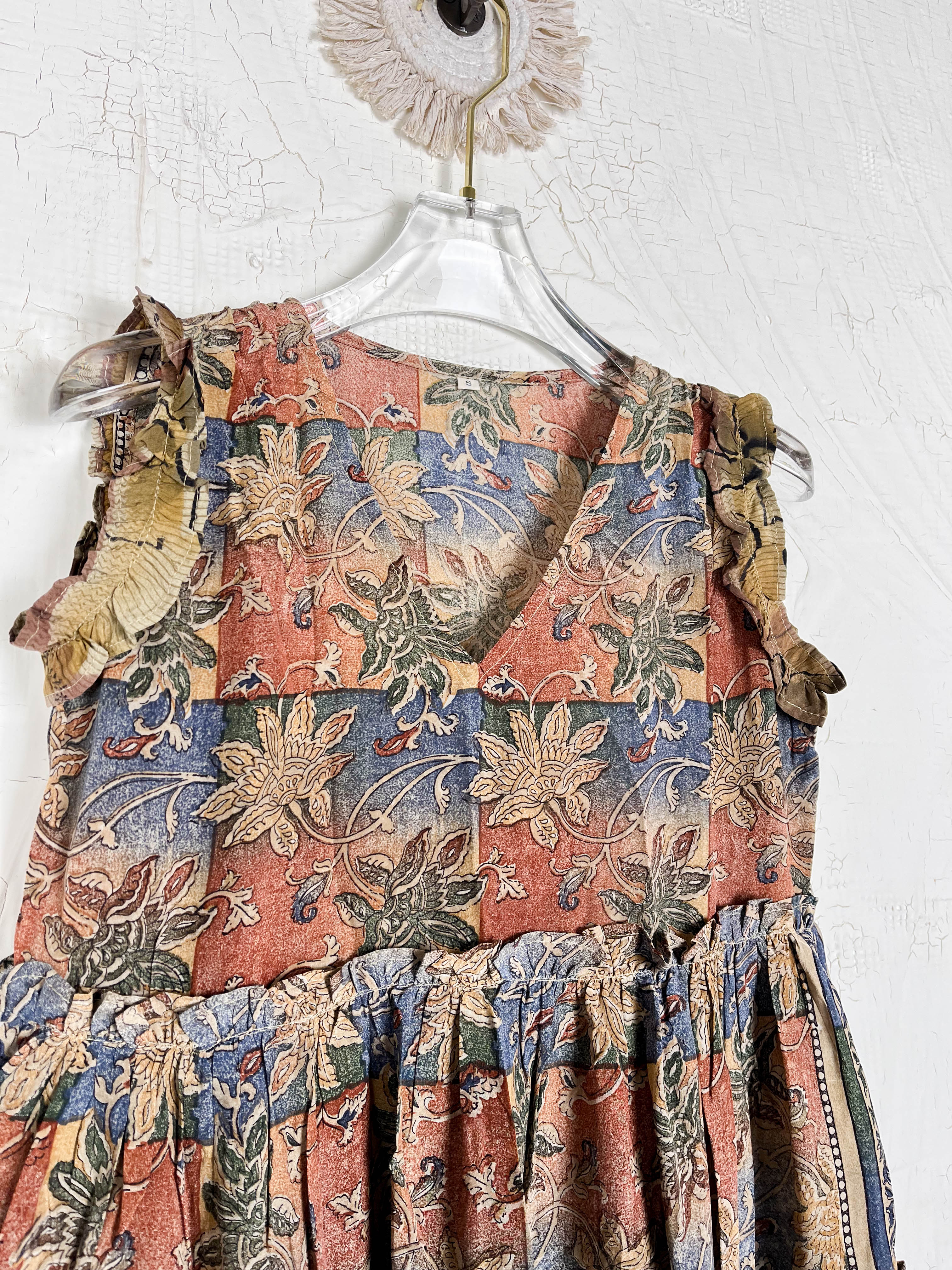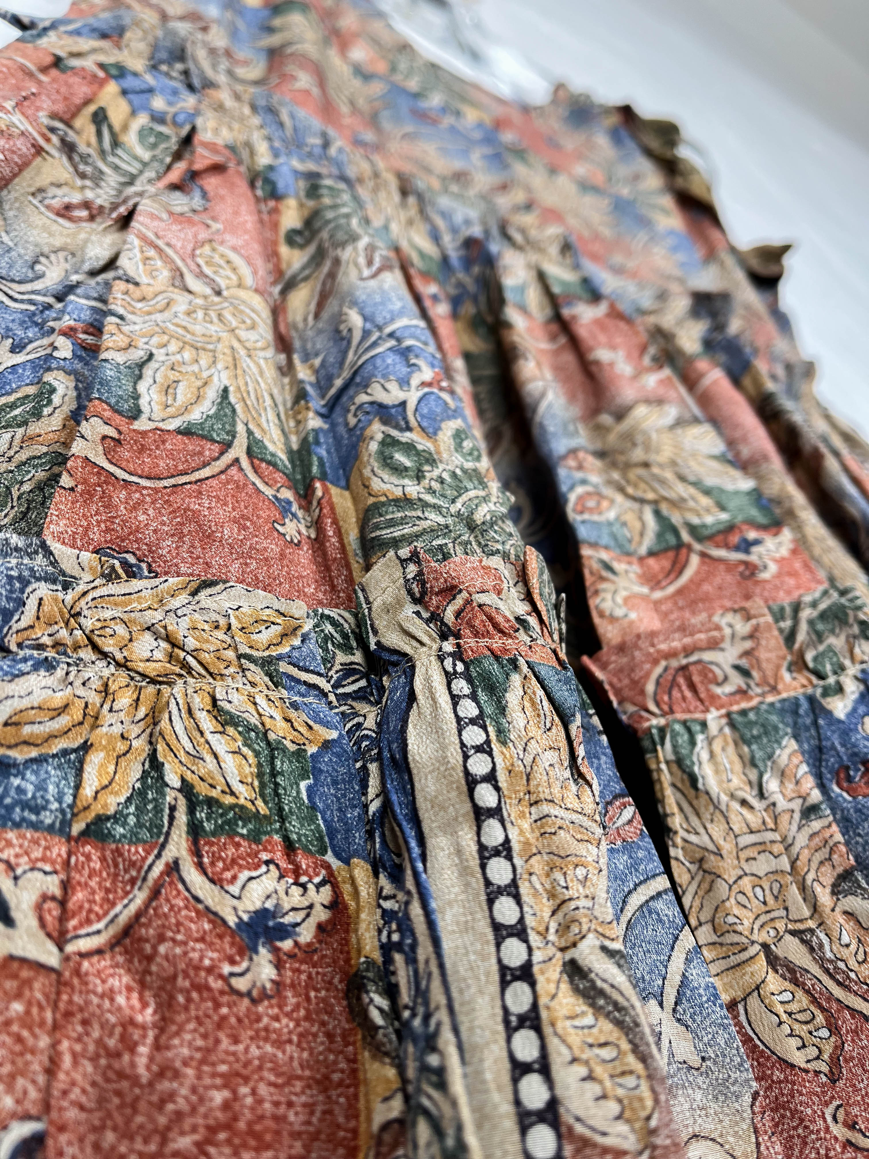 Handcrafted from Vintage Crepe Silk, every stitch and the flowy ruffle tells a story of craftsmanship, emotions and heritage!