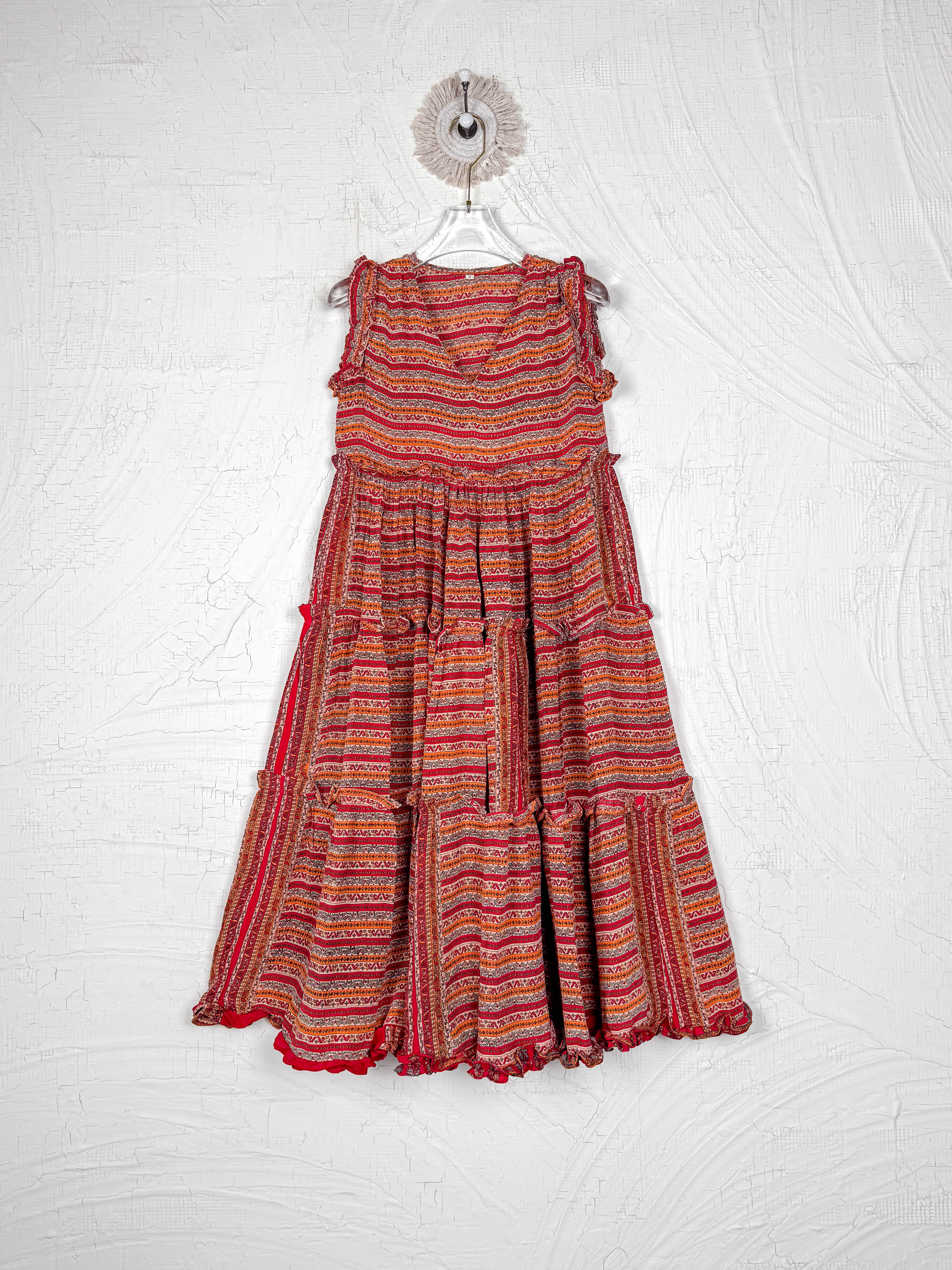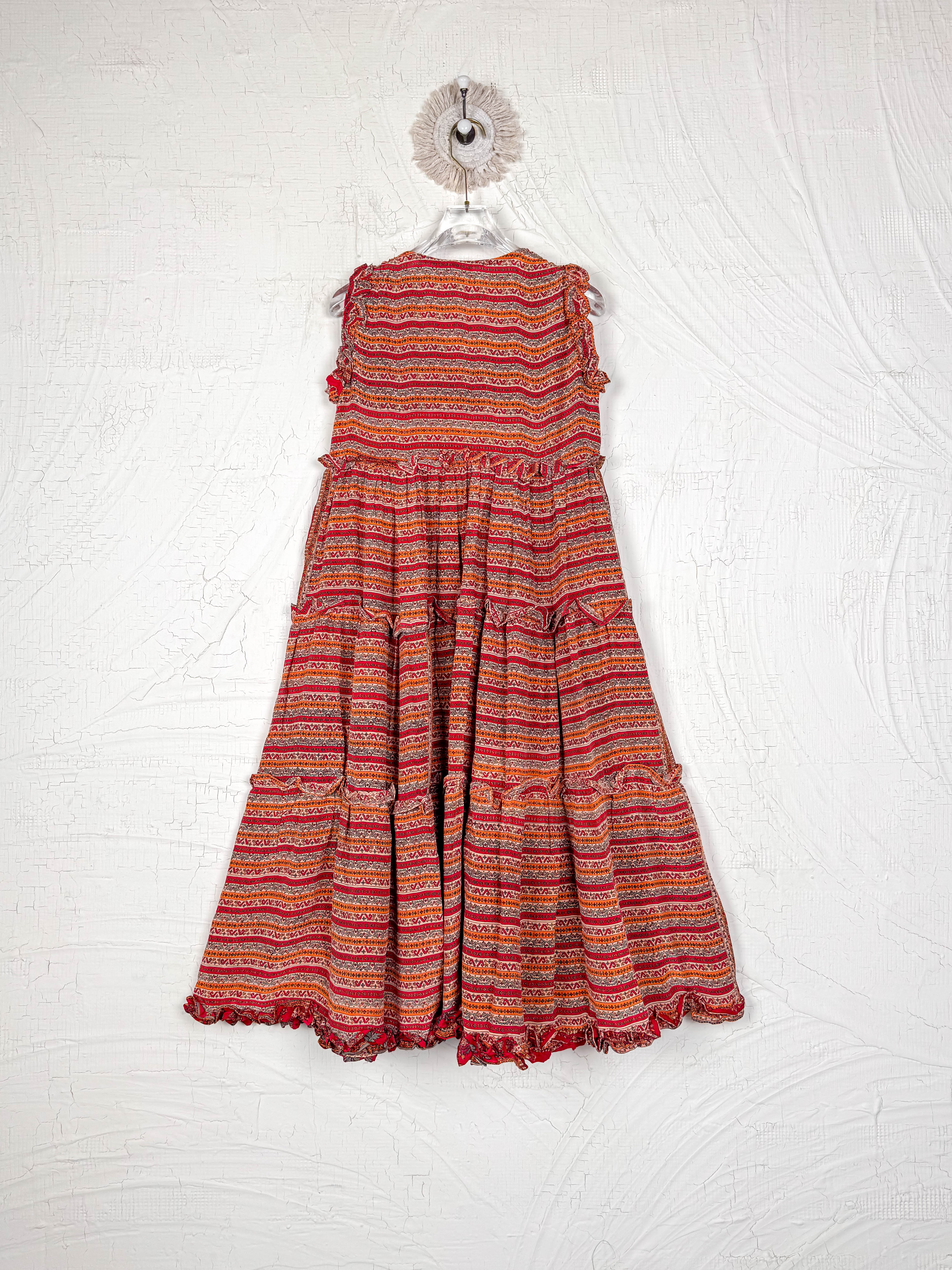 Handcrafted from Vintage Crepe Silk, every stitch and the flowy ruffle tells a story of craftsmanship, emotions and heritage!