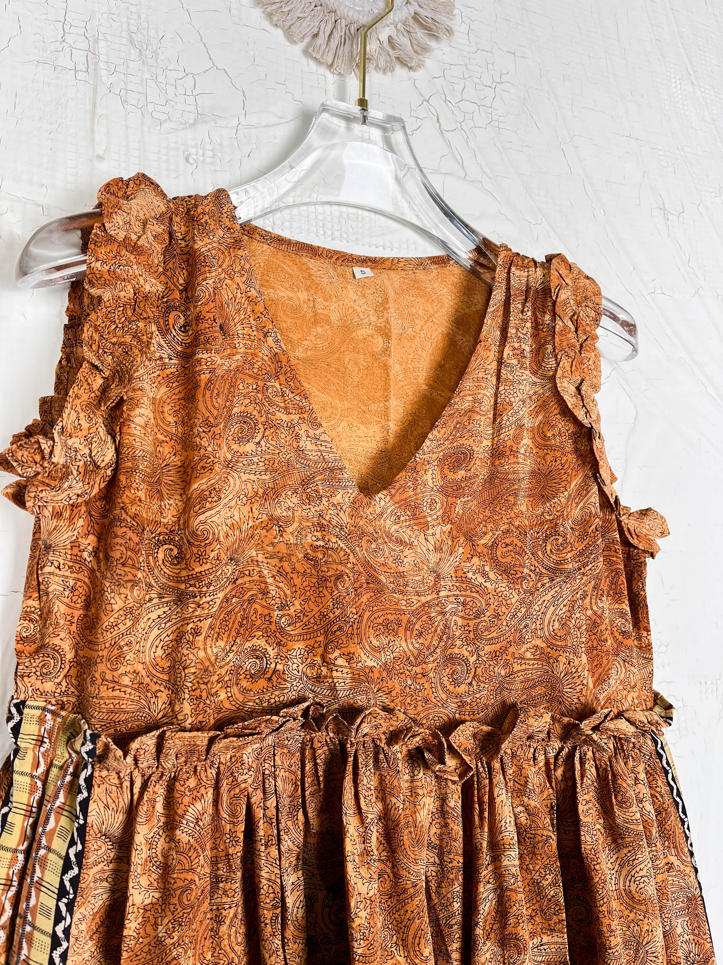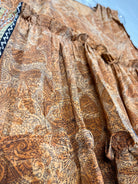 Handcrafted from Vintage Crepe Silk, every stitch and the flowy ruffle tells a story of craftsmanship, emotions and heritage!