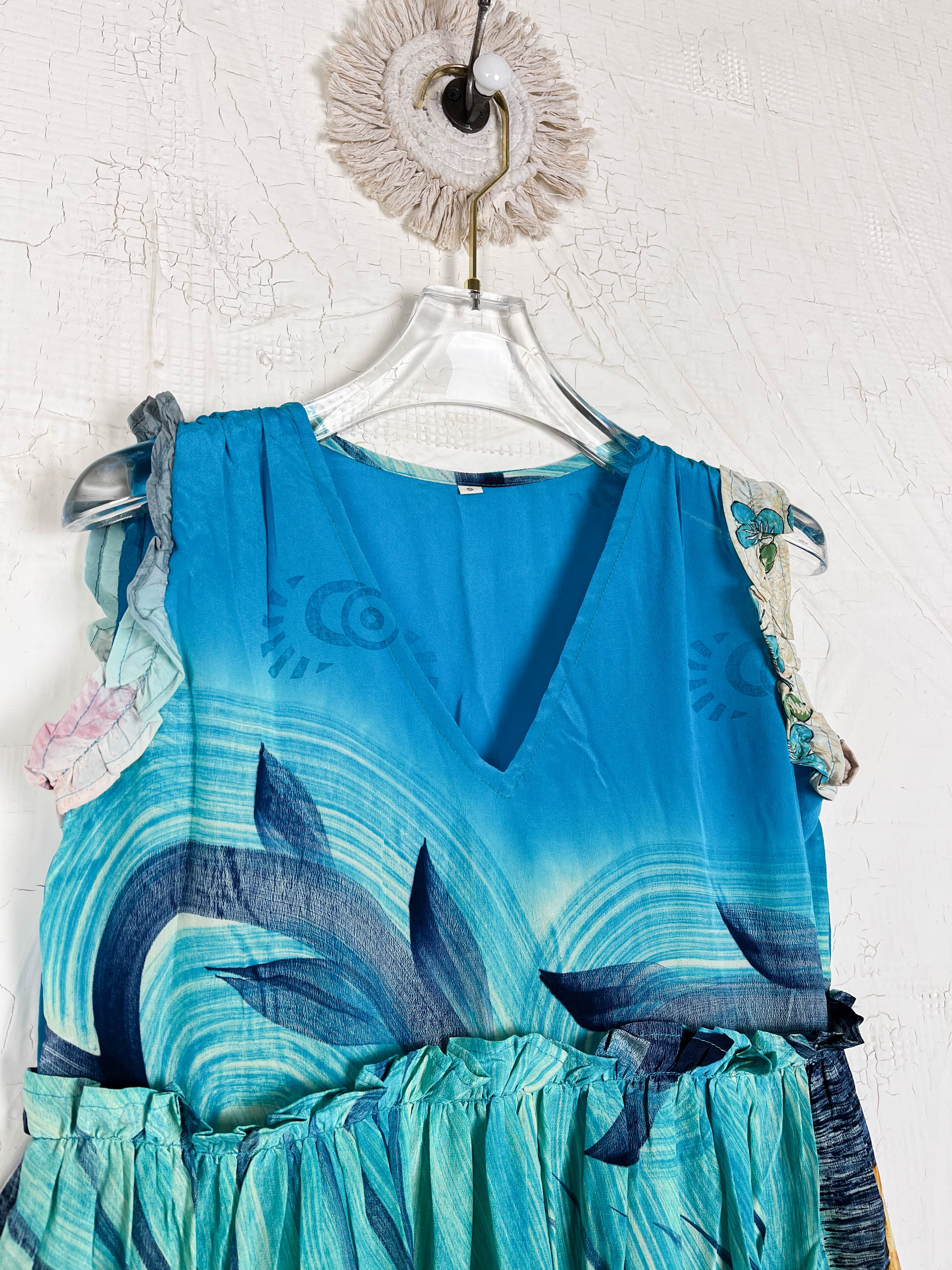 Designed for the woman who marches to her own beat, this piece features a deep, soulful V-neck and a cascade of ruffles that catch the light—and the air—as you move. It doesn’t just sit on your frame; it flows with your rhythm.