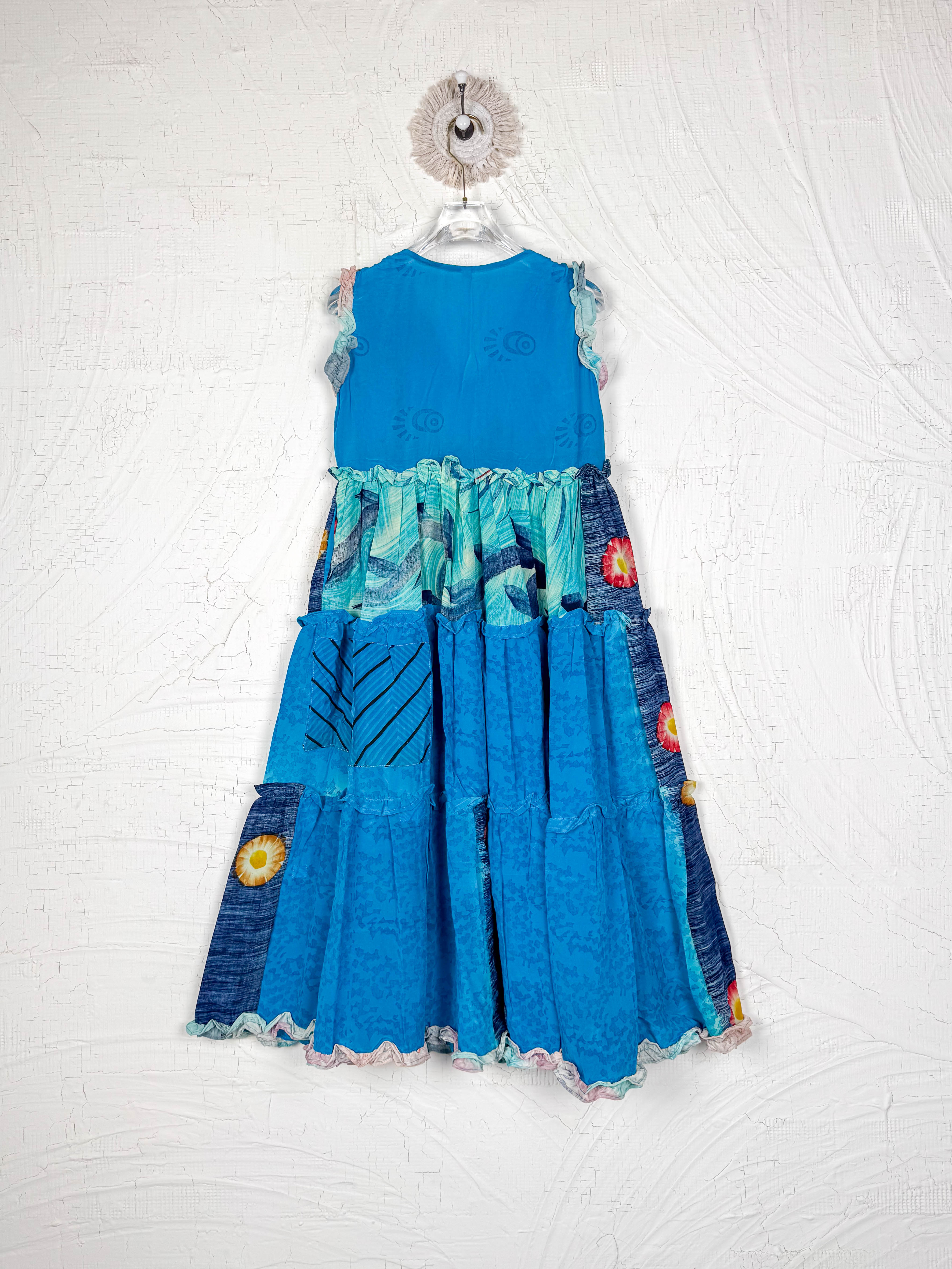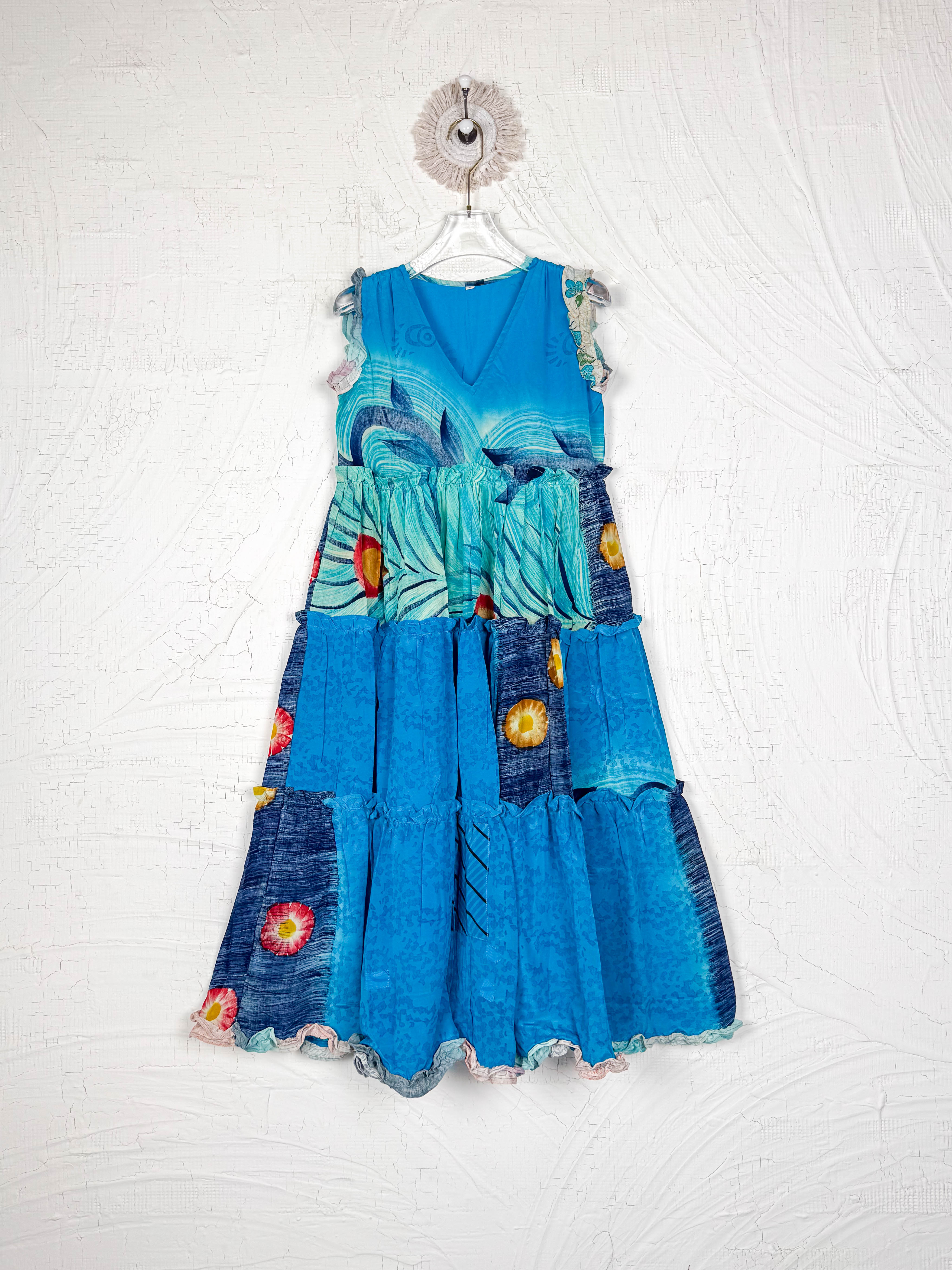Silk Ruffle Dress Blue Floral