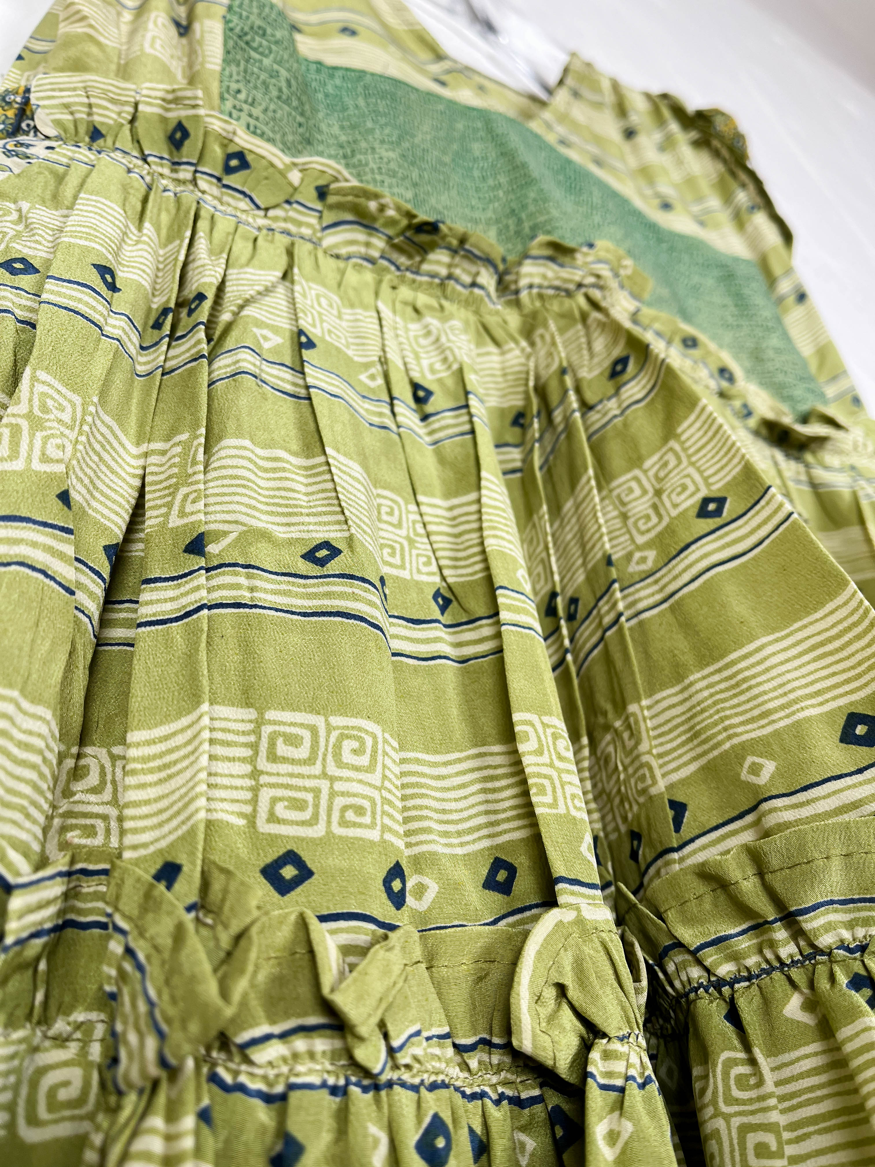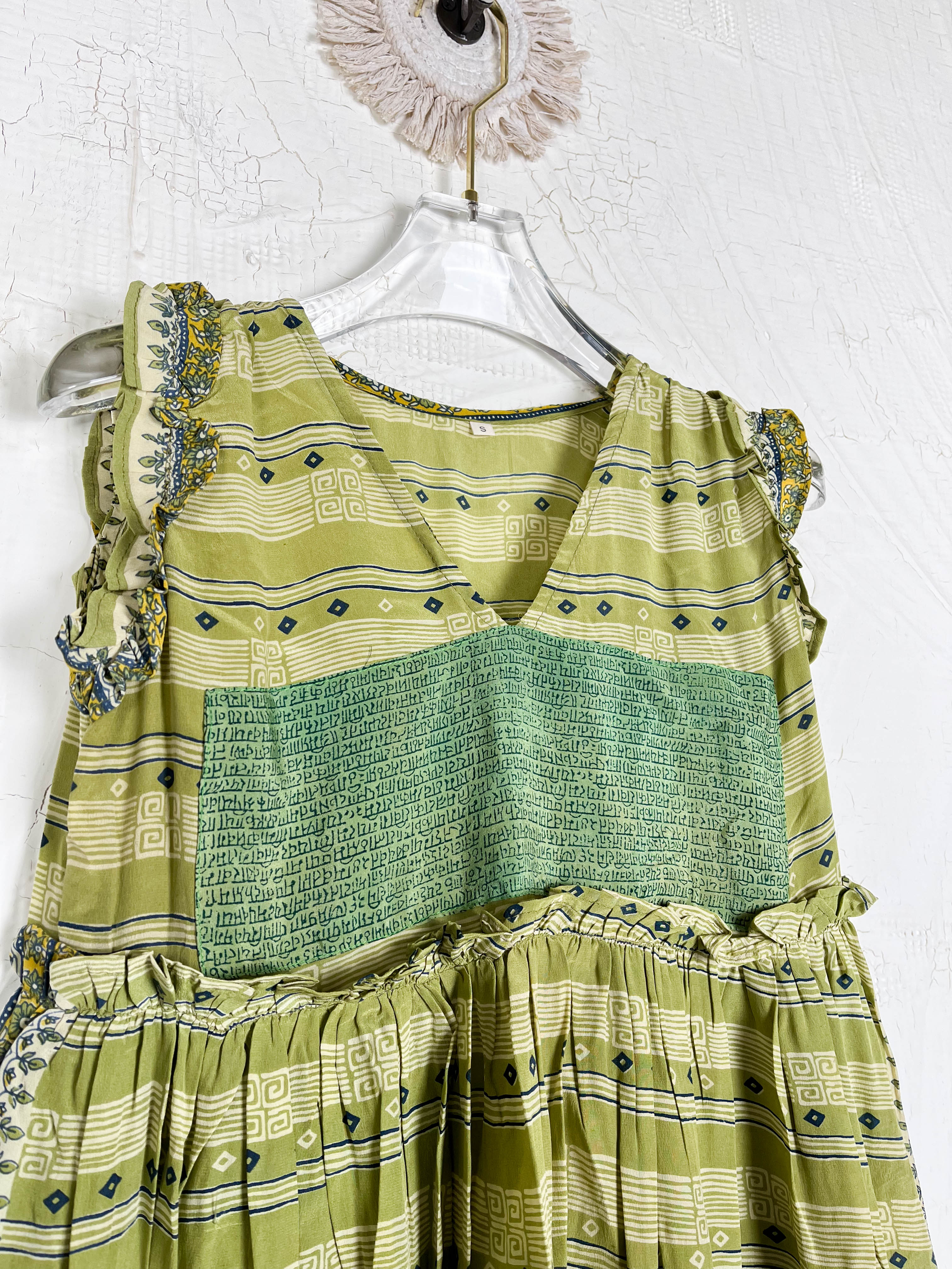 Handcrafted from Vintage Crepe Silk, every stitch and the flowy ruffle tells a story of craftsmanship, emotions and heritage!